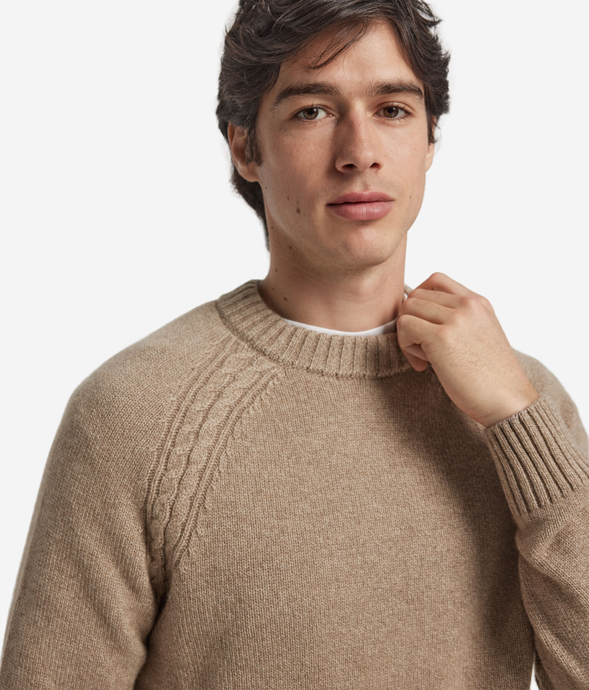 Girocollo con trecce in Ultrasoft Undyed cashmere
