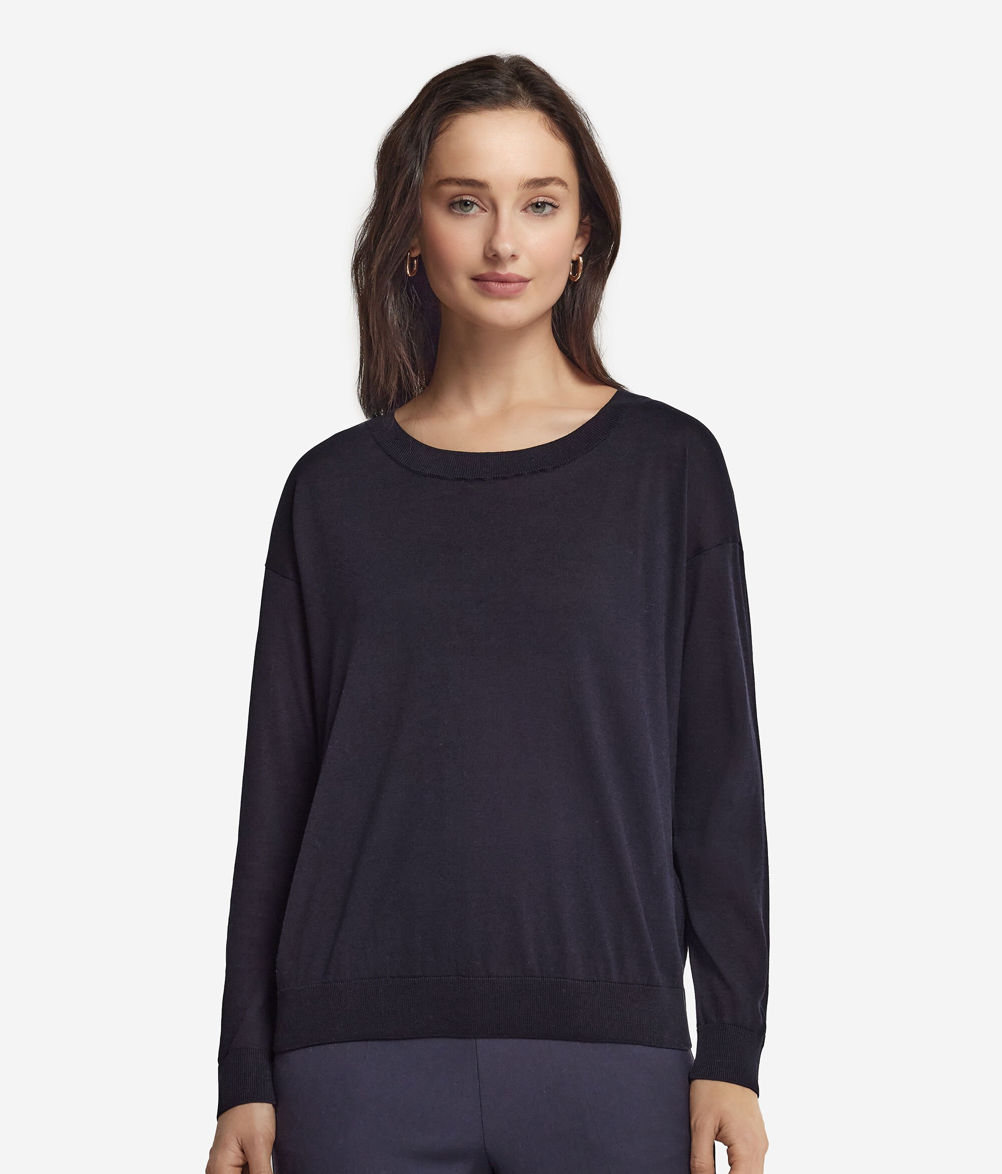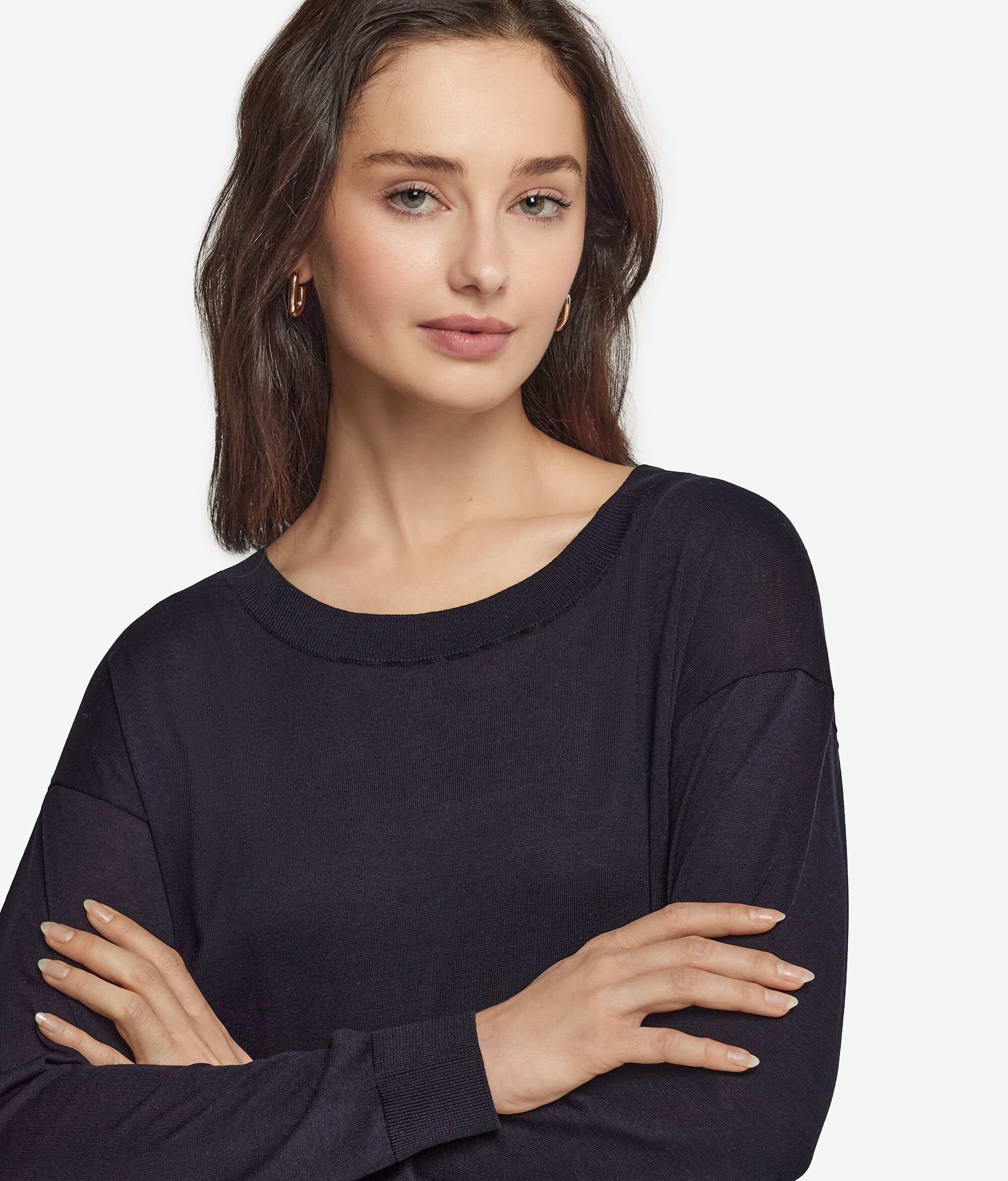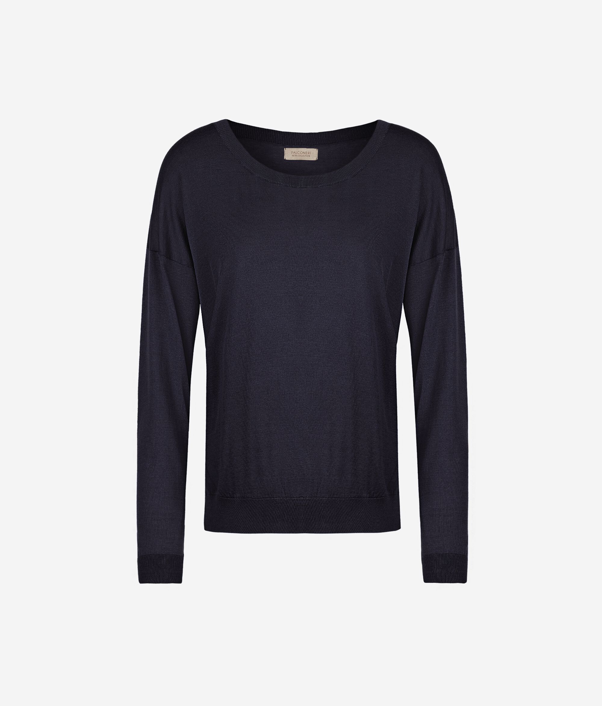 Il tessuto pregiato di questa maglia in cotone seta con ampio girocollo impreziosisce le forme morbide di questo capo e conferisce alla texture una mano fluida e piacevole all'indosso. La versatilità d'uso rende la maglia in seta cotone un capo unico ed indispensabile, perfetto su qualsiasi abbinamento e in ogni occasione.