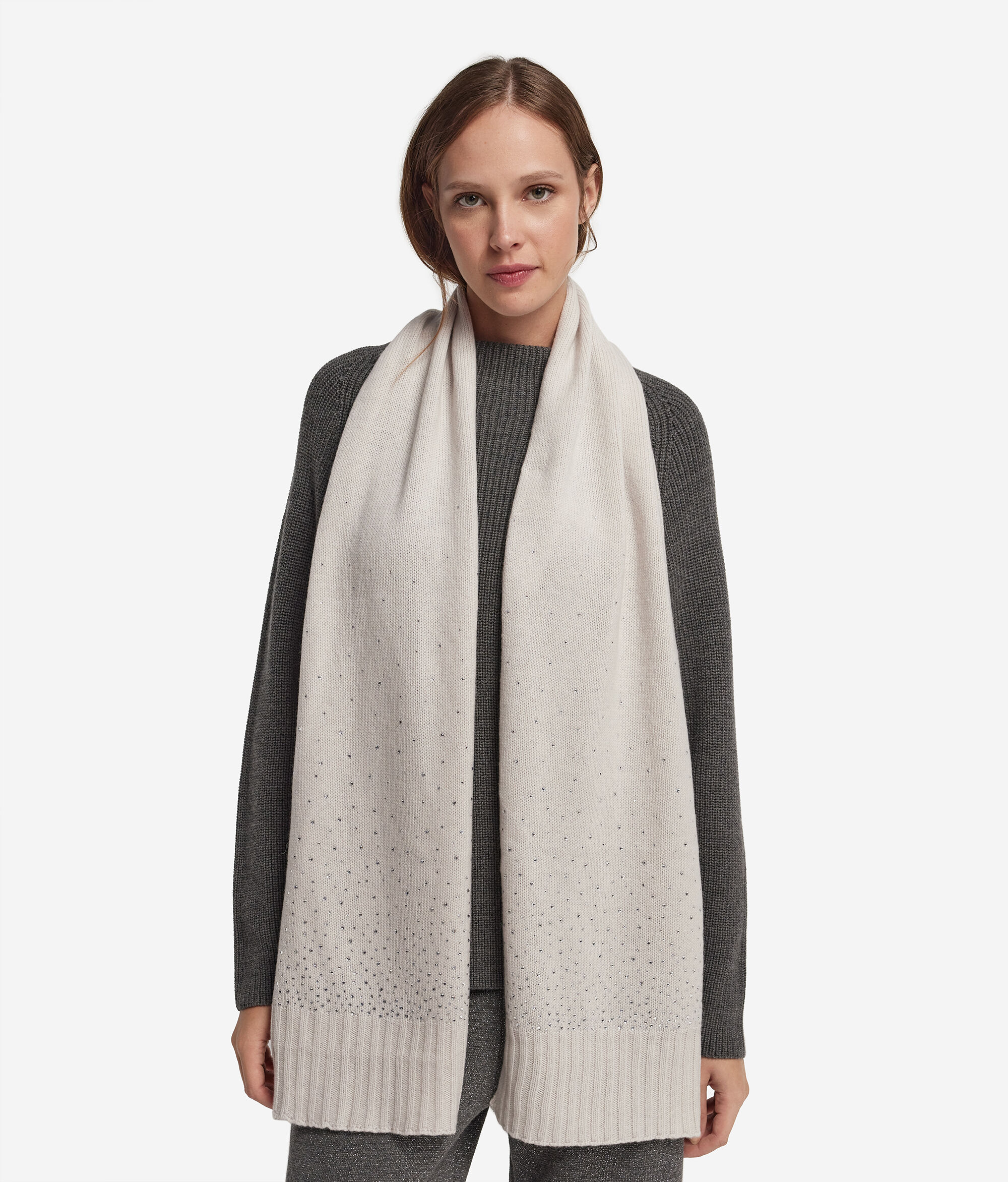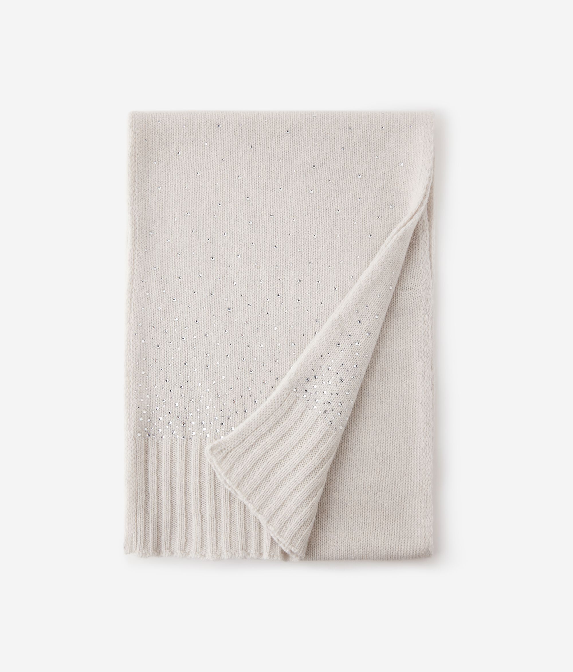 Lussuosa e avvolgente, questa sciarpa in Cashmere Ultrasoft è l'accessorio ideale per conferire calore e protezione durante i mesi più freschi. Alle estremità, un elegante dettaglio di strass luminosi in degradè cattura la luce, creando un effetto brillante che aggiunge un tocco di raffinatezza unica.