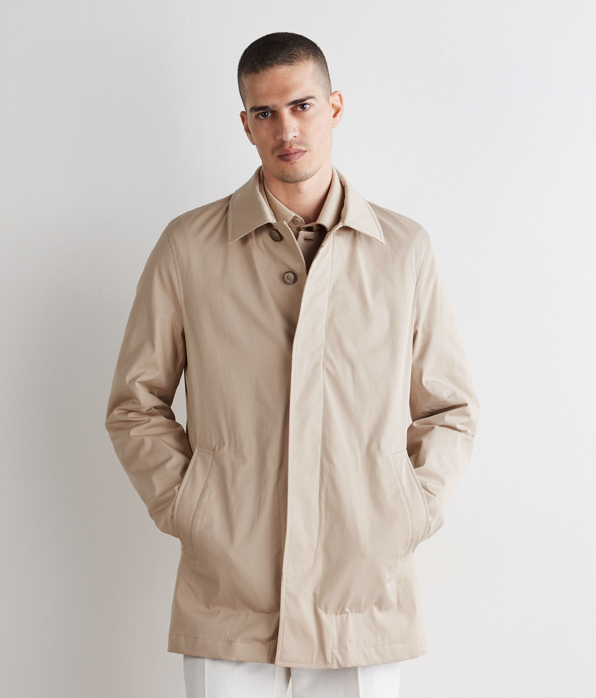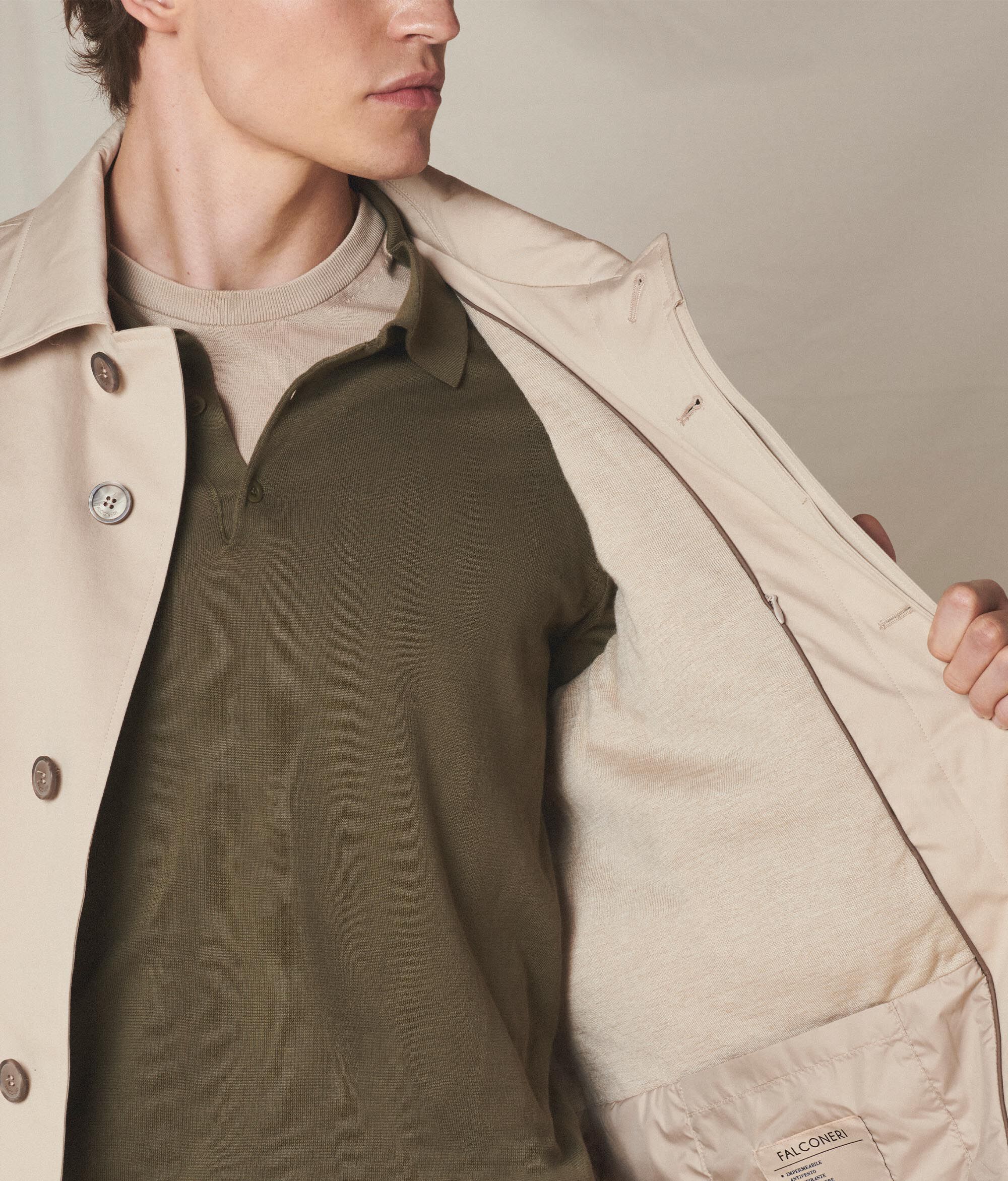Elementi funzionali e materiali di pregio danno vita a questo trench tecnico in cotone water repellent con interno in Cashmere Ultrafine. La chiusura con bottoni nascosti e il collo a camicia definiscono un’estetica ricercata e senza tempo, mentre le tasche a filetto e la manica interna in tessuto tecnico arricchiscono il design del capo donando versatilità e protezione.