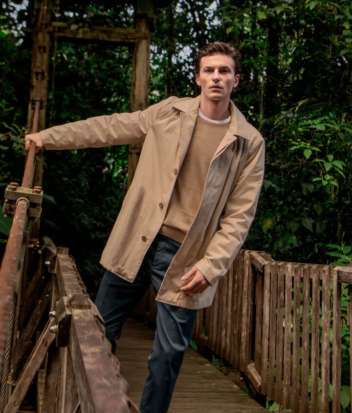 Trench tecnico in tessuto di cotone e cashmere698,00 €Seleziona il coloreBeige cordaColore selezionato: Beige corda