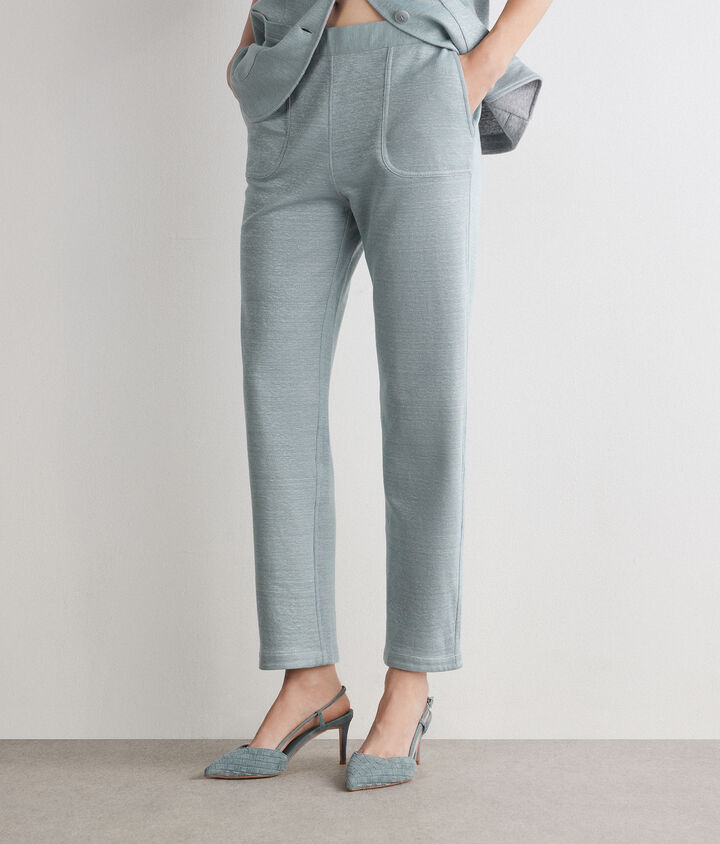 Novità Pantalone bicolore reversibile in lino e cotone218,00 €Seleziona il coloreAcquamarina/Grigio melangeGrano/CordaColore selezionato: Acquamarina/Grigio melange