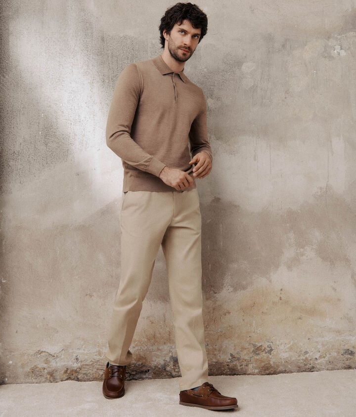 カシミヤ素材の長袖ポロシャツ
