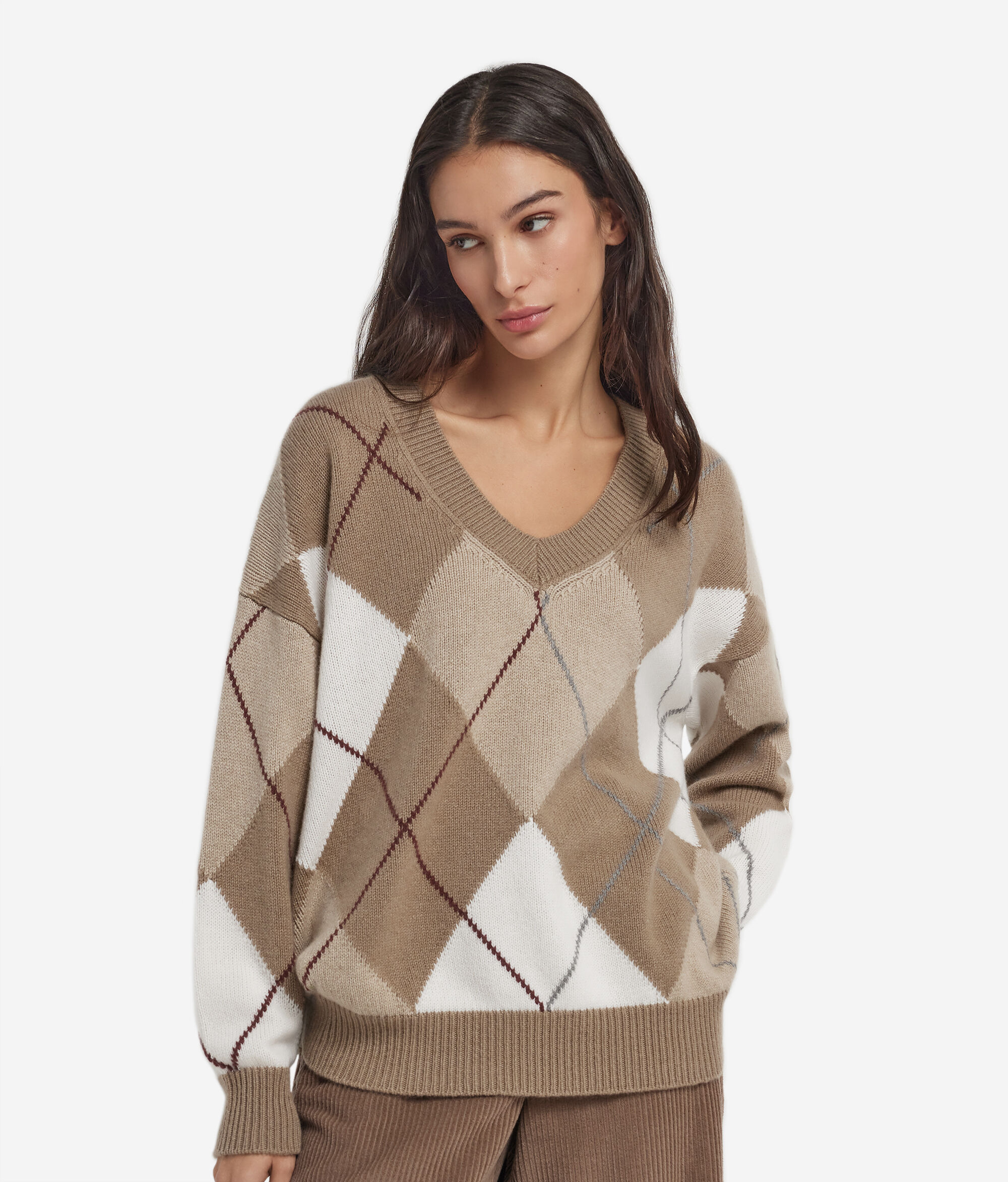 ウルトラソフトカシミヤ アーガイル Vネック セーター