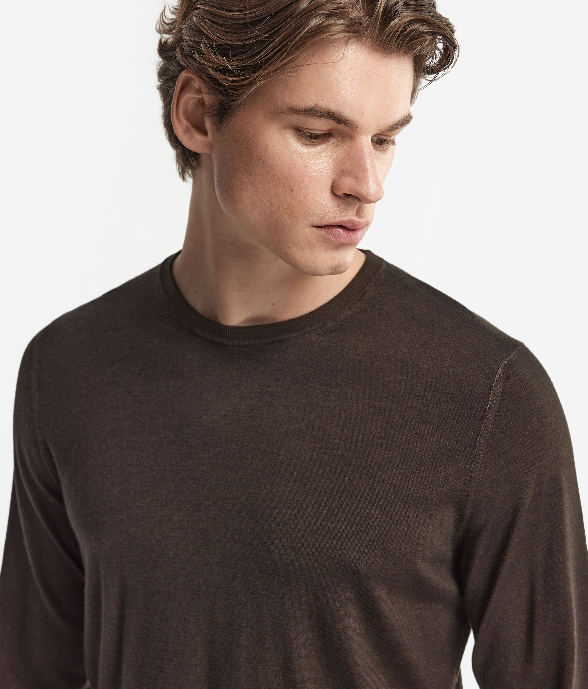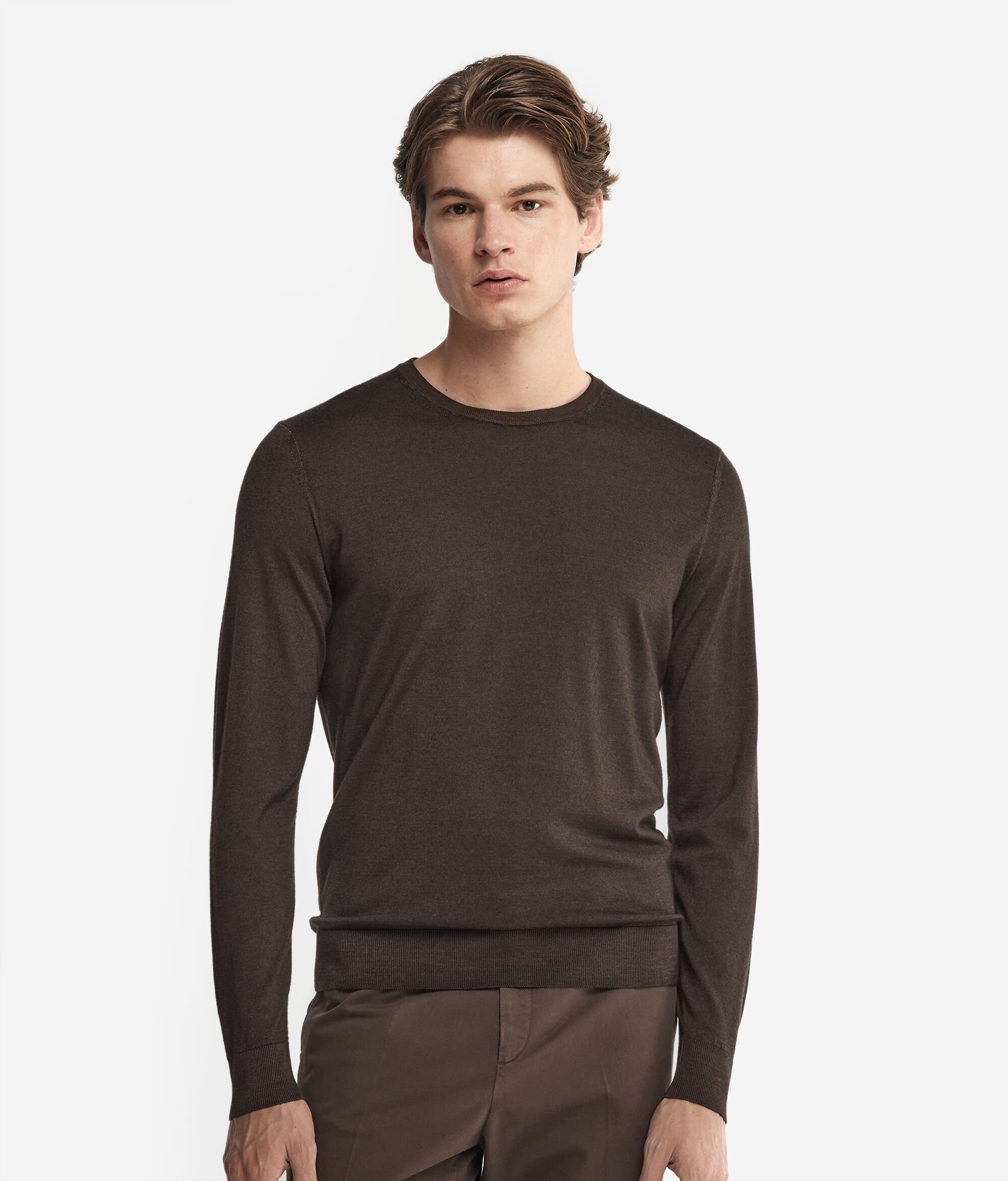 ウルトラファインカシミヤ 2.50製クルーネックセーター。タイムレスなデザインで汎用性の高い、男性のワードローブに欠かせない1枚。