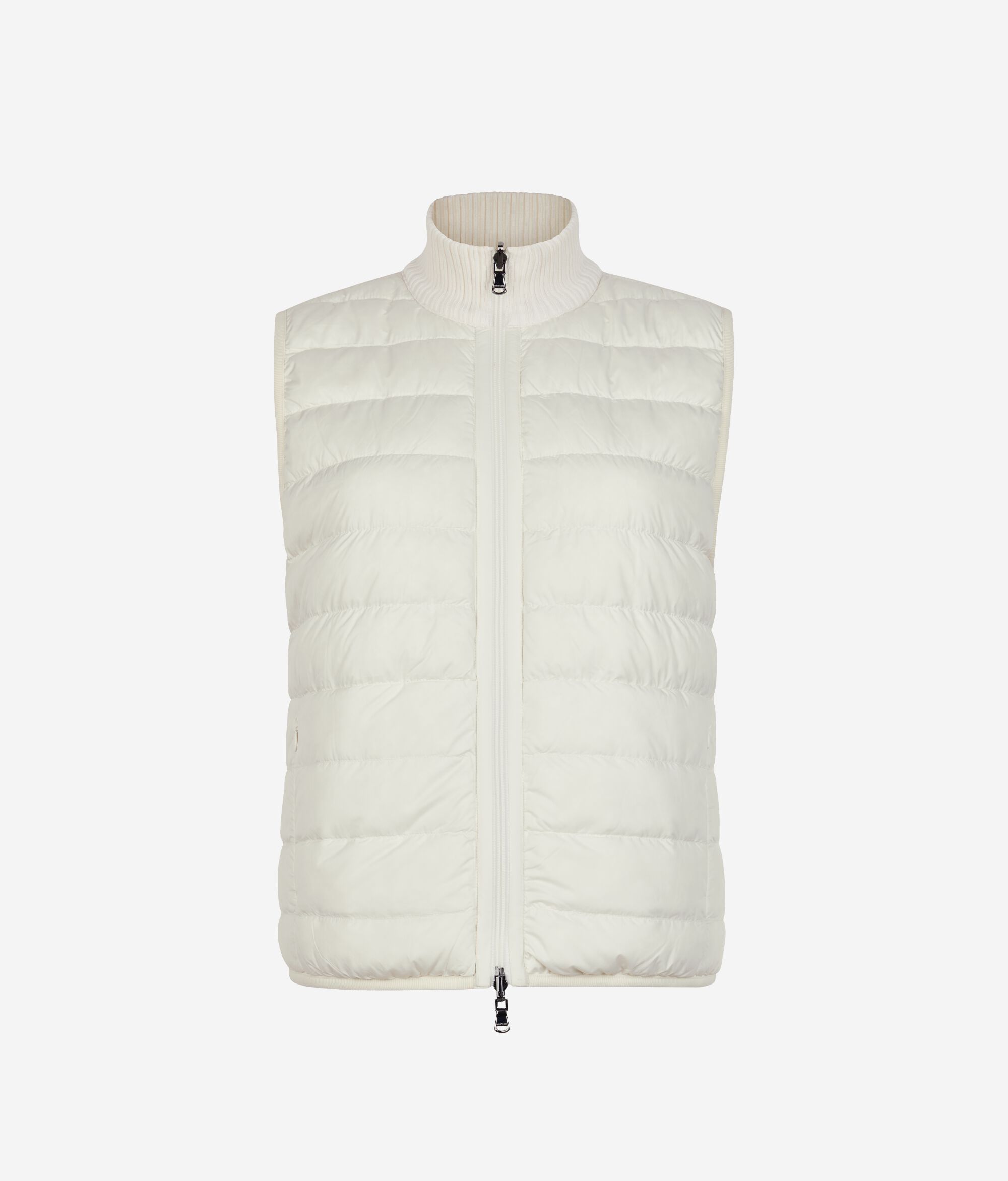 • ハイネックの襟には、ウルトラファインカシミヤのリブ編みのニット地を使用