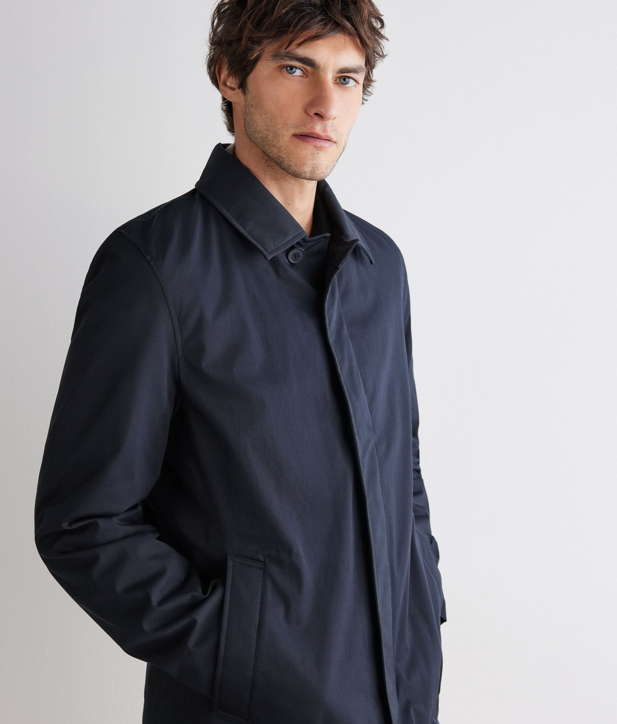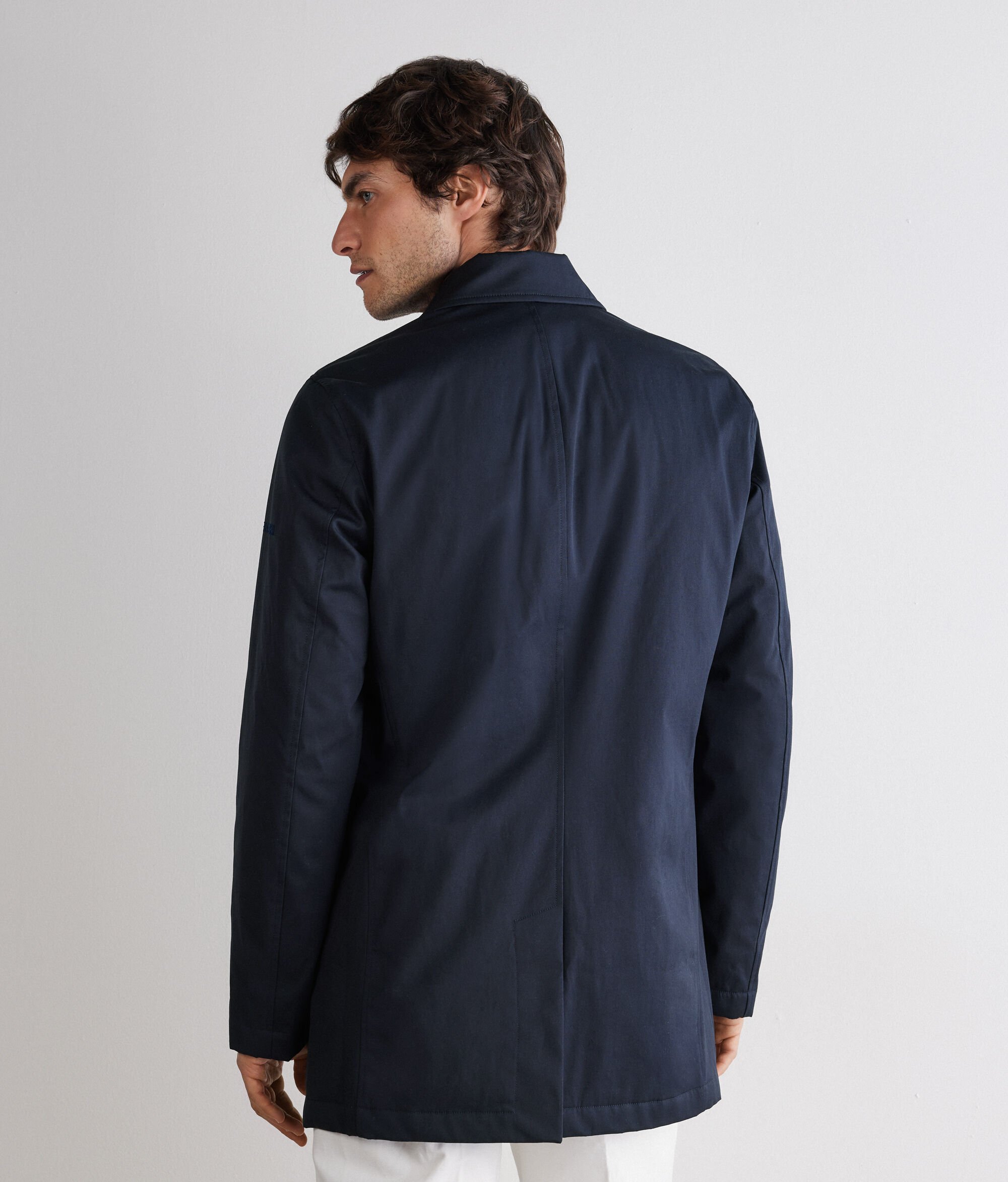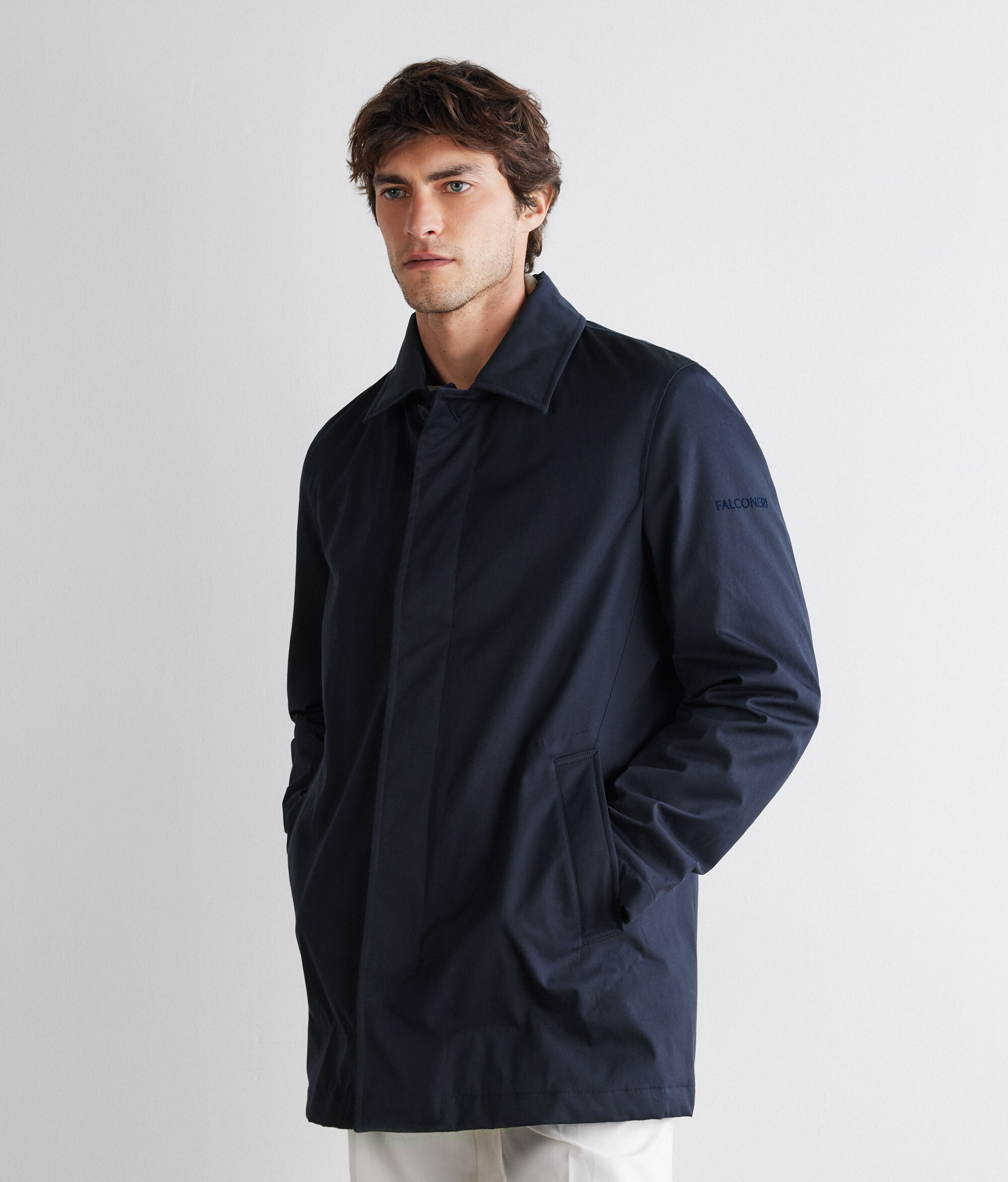機能性と素材にこだわってデザインされたテクニカルなトレンチコート。撥水性のあるコットン生地で作られ、内側にはウルトラファインカシミヤを使用しています。ボタンが表から見えないように配された開閉部のデザインとシャツカラーにより、洗練された装いを演出するタイムレスなアウターとして活躍。ウェルトポケット付き。袖の内側にはテクニカルファブリックを使用しており、雨などからしっかり体を守るため、幅広いシーンでお使いいただけます。