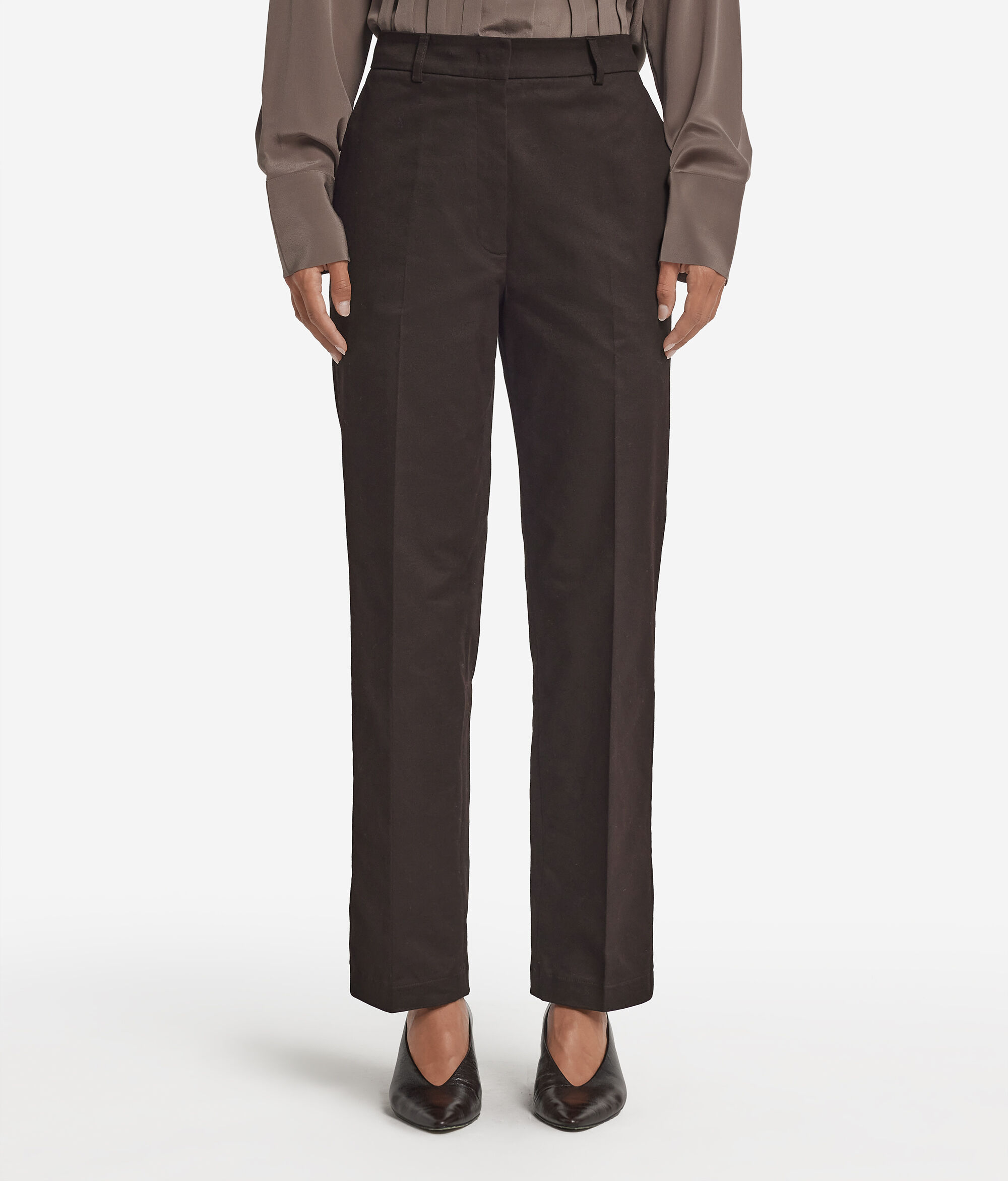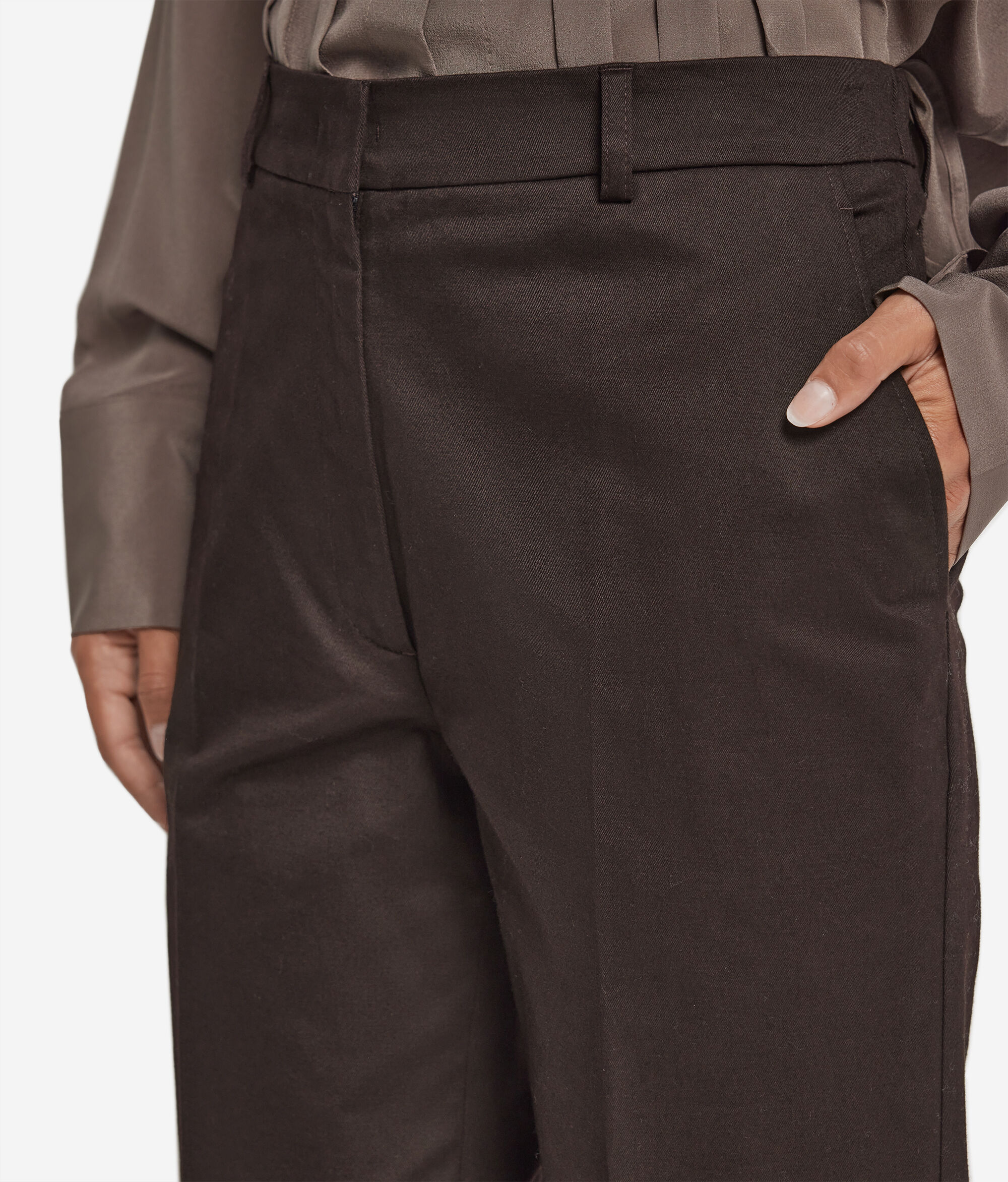 比類ない肌触りを持つコットンとカシミヤの生地を使用し、正確なシルエットに仕立てたシガレットパンツ。実用性を考え、サイドにさりげなくポケットが配されています。現代的なエレガンスを醸すデザインで、デイリーにも使いやすいレギュラーフィット・足首丈のモデル。ビジネスシーンから、よりカジュアルな装いで過ごすオフの時間まで、活躍の場を選ばない一枚です。