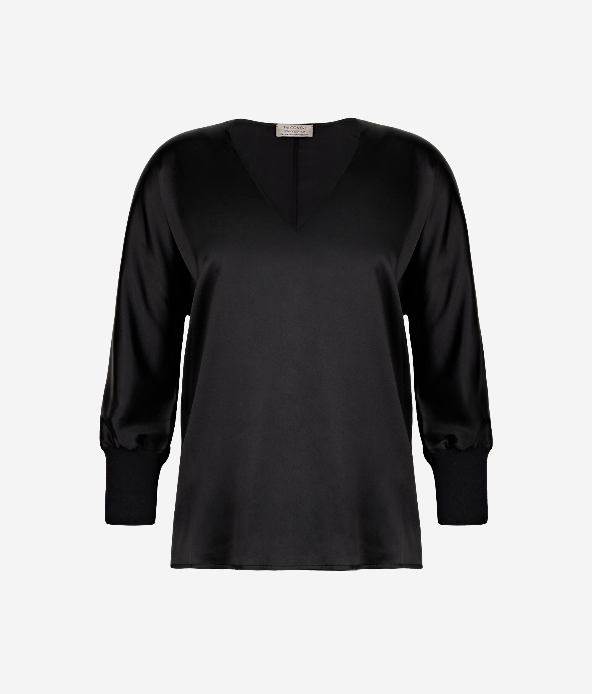 スタイリッシュなディテールが引き立つ洗練されたルックを求める方のためにFalconeriがデザインしたブラウス。全体にシルクサテンを使用しており、生地の柔らかなラインを強調するデザインに仕上げています。ゆったりとなめらかなフィット感のため着心地が良く、コットンのニット地を使用した袖口やVネックなどサルトリア風のディテールにより、より一層パンチのきいたスタイルとなっています。