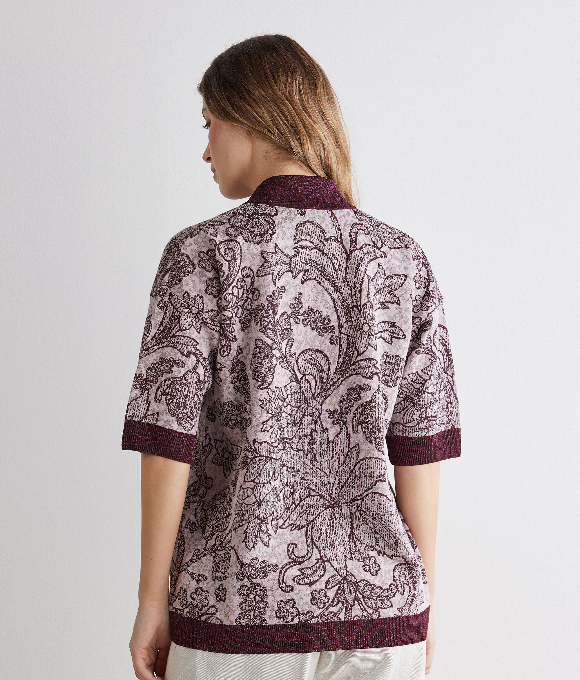• ラメ糸を織り込んだ、ビスコースとコットンのジャカード編みニット