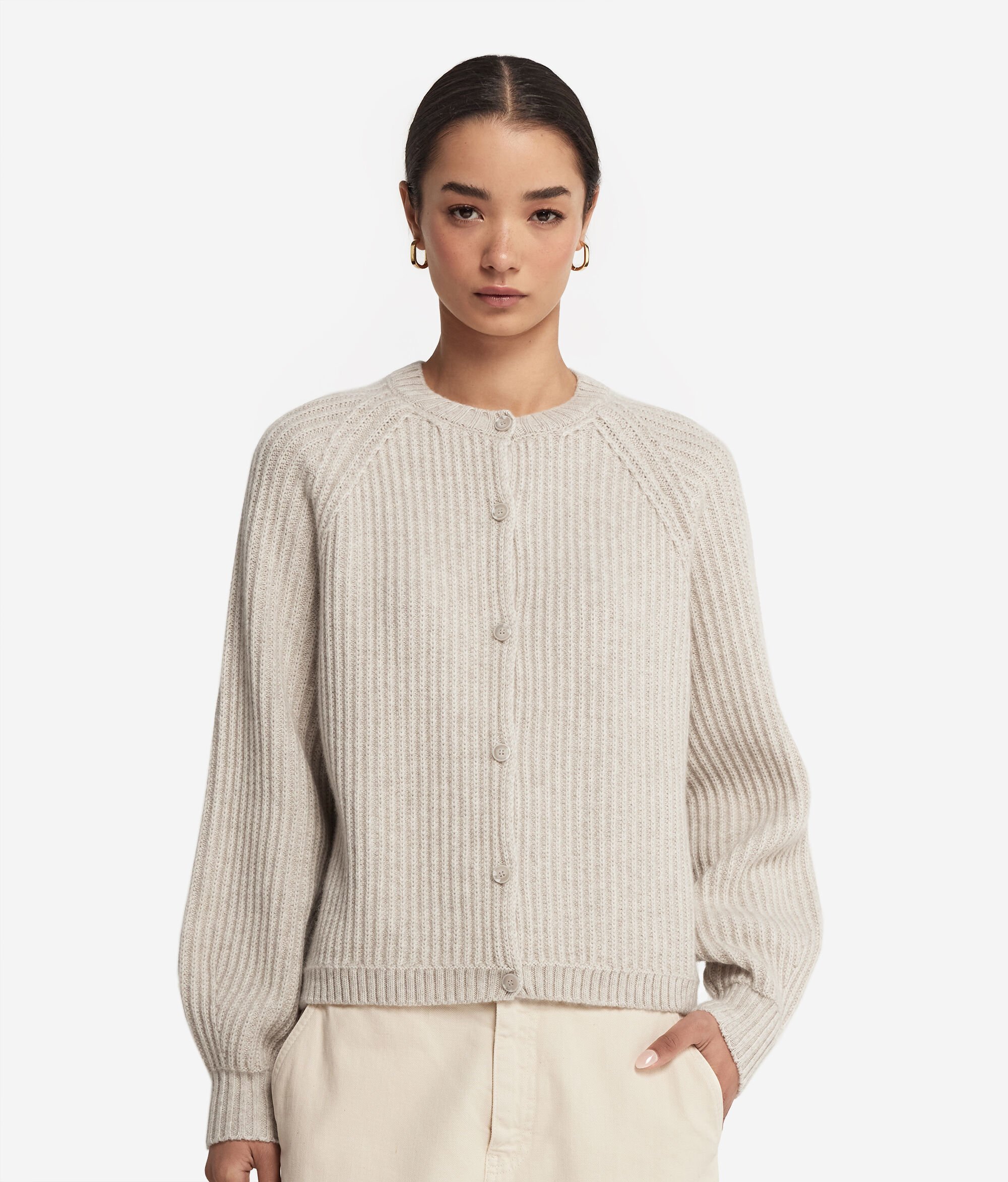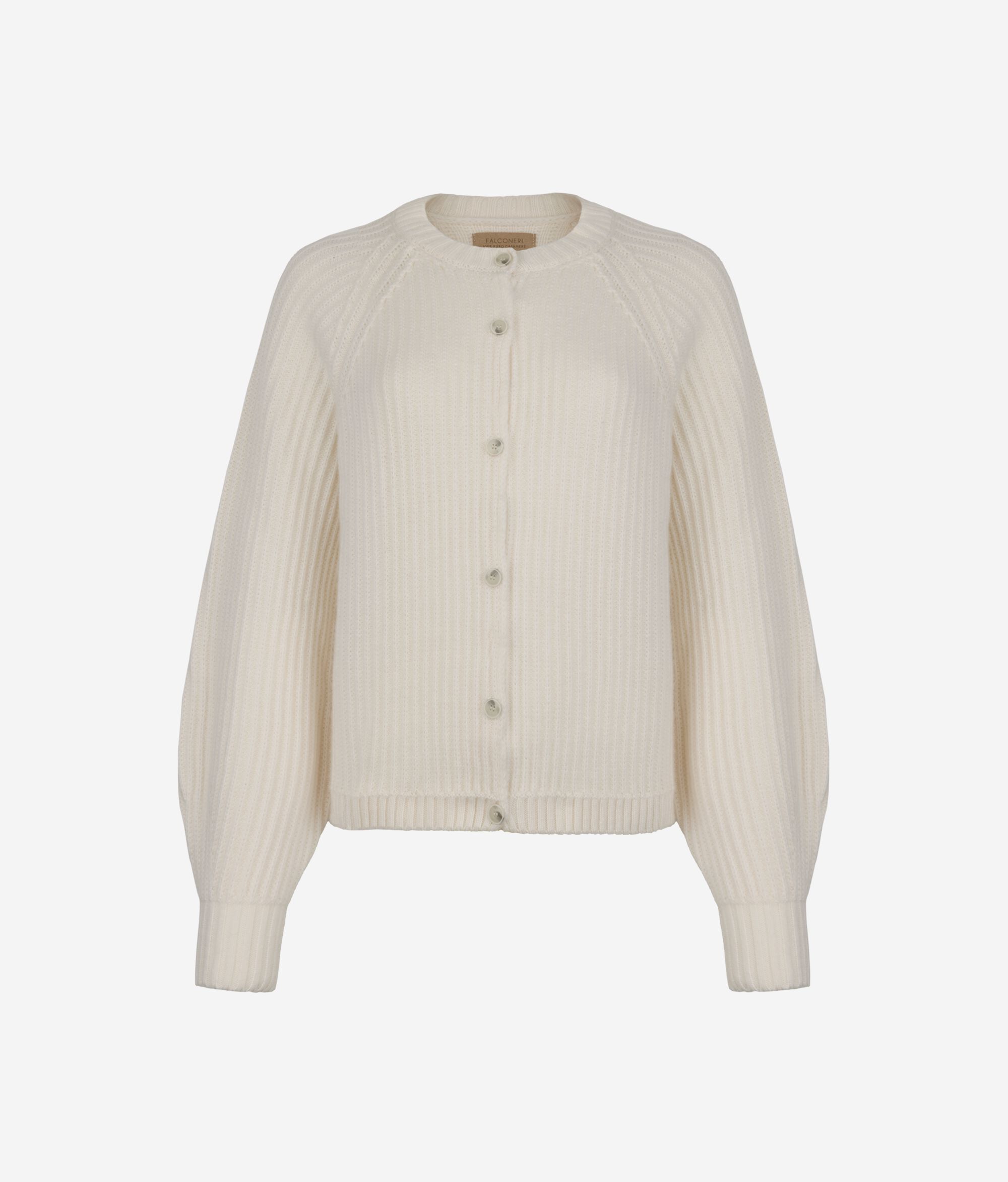 柔らかさと個性をデリケートにミックスしたカーディガン。ウルトラソフトカシミヤの高級感と職人技が光る複雑な細工を組み合わせたアイテムです。 袖はラグランのバルーンスリーブで、装いに動きをもたらす個性的なシルエットとボリューム感を作り出しました。リブ編地でさらにデザインに豊かさをプラスし、質感と洗練性を与えています。柔らかなフィット感でモダンで洗練された風合いを演出し、快適なカジュアルエレガンスのタッチを添えました。あらゆる着こなしをランクアップさせるのに理想的なアイテムです。