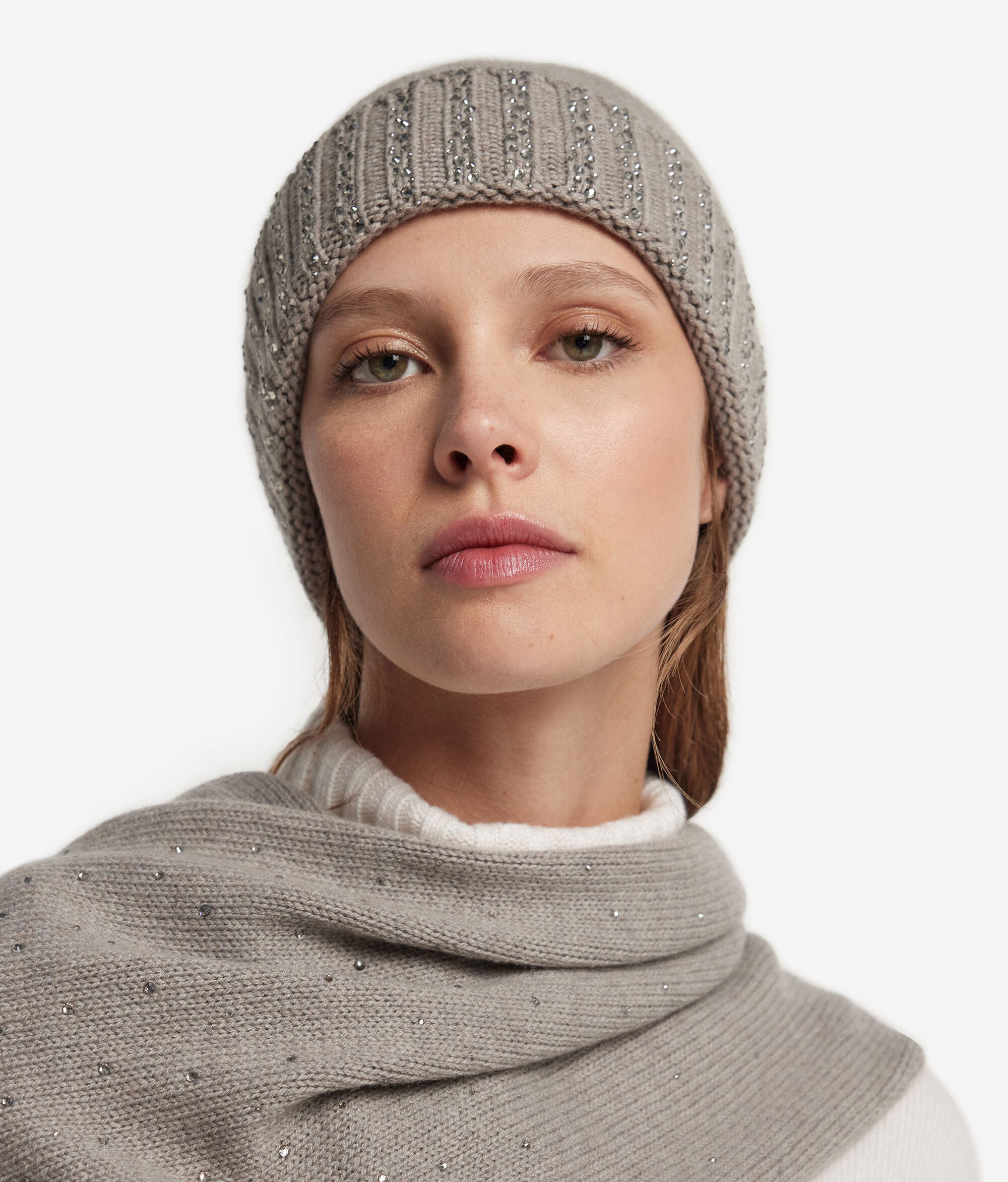 Doux comme une caresse, ce bonnet chaud et léger est confectionné dans un prestigieux cachemire ultra-doux. Un bord côtelé lui appose une touche raffinée, tandis que des strass sertis créent un jeu de lumières délicat, capturant le regard de façon discrète. L'accessoire idéal pour ajouter une touche de style chic et sophistiquée à vos tenues.