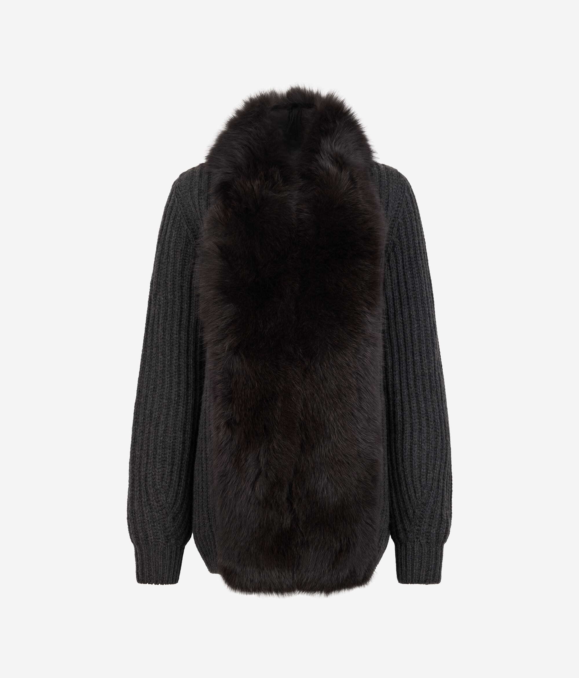 Manteau côtelé en cachemire et fourrure