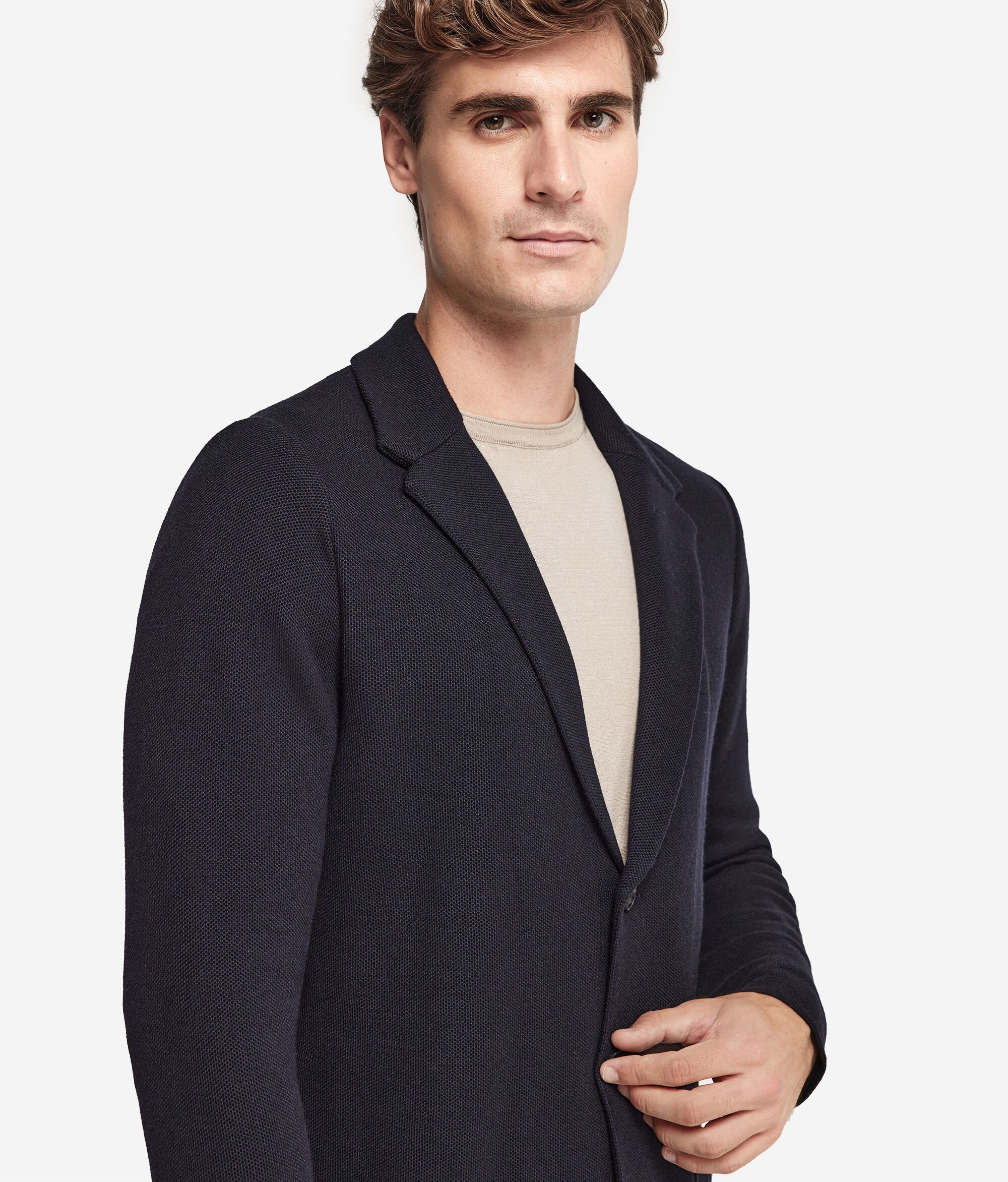 Découvrez l'élégance et la douceur de cette veste en maille de laine piquée, caractérisée par une trame bicolore délicate. Ses lignes classiques et raffinées arborent des revers classiques, un boutonnage centré à trois boutons et deux poches plaquées. Allié à des matières de prestige, l'équilibre entre style classique et modernité donne naissance à une pièce élégante et confortable, qui sublimera toutes vos tenues avec une touche luxueuse discrète et intemporelle.