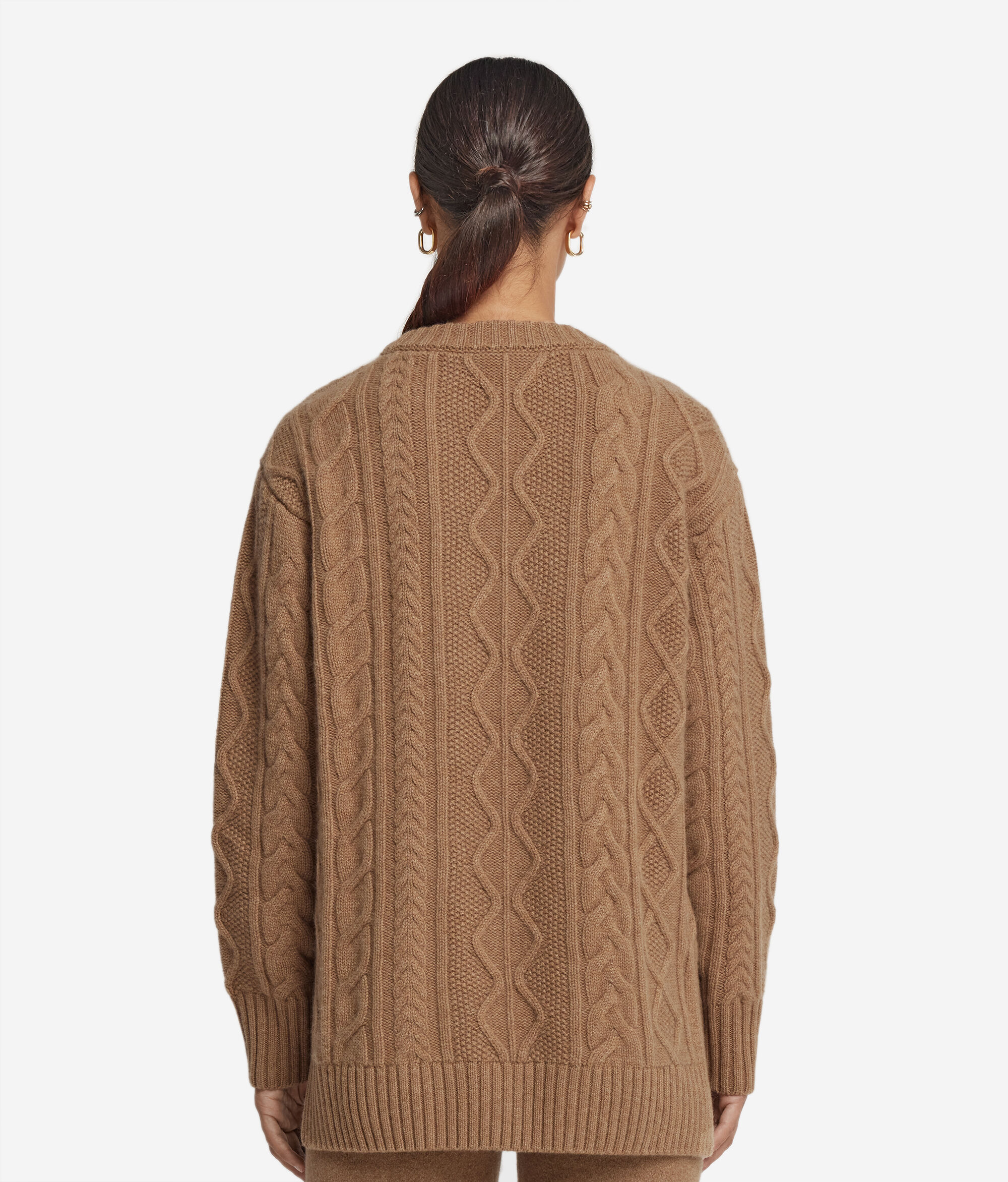 Created in fine Ultrasoft Cashmere, this round-neck jumper is the perfect combination of sophistication and softness. Its sophisticated cable pattern design adds a rich dimension to the touch and a ribbed finish on neckline, cuffs and hem. The dropped shoulders and loose wearability create a relaxed and modern air, making this garment ideal for facing those cooler days in style.