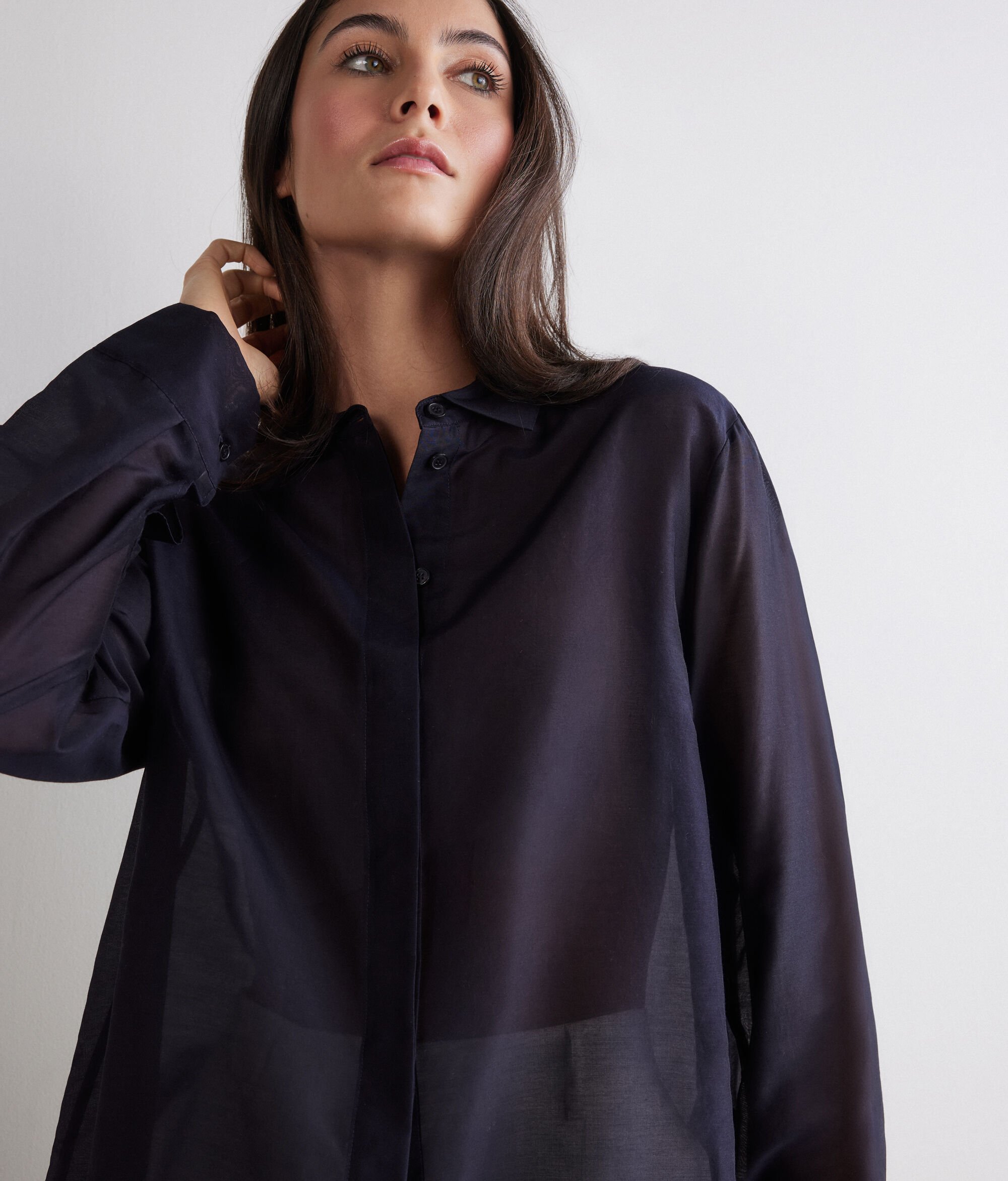 •Long-sleeved muslin shirt with collar and cuffs