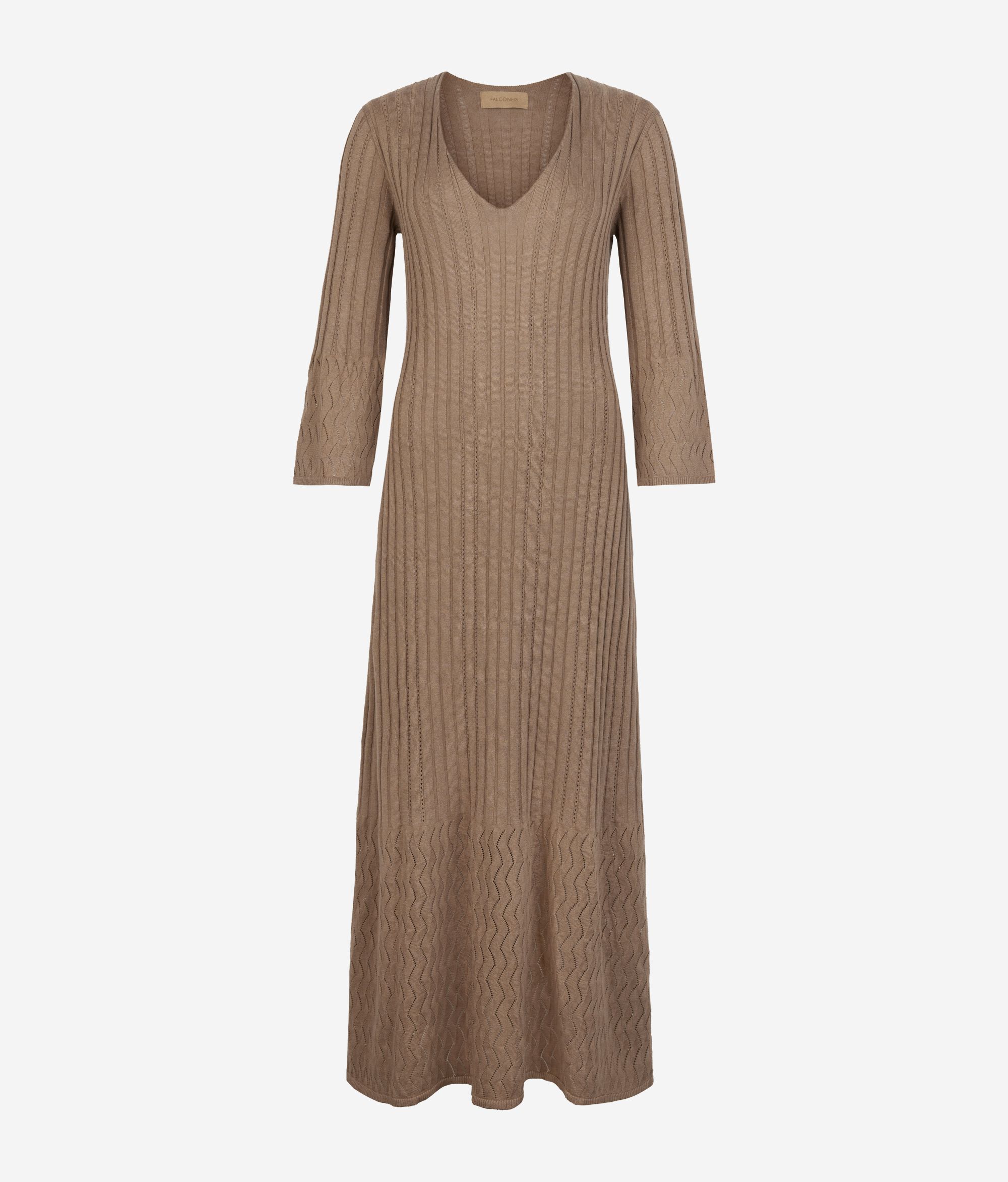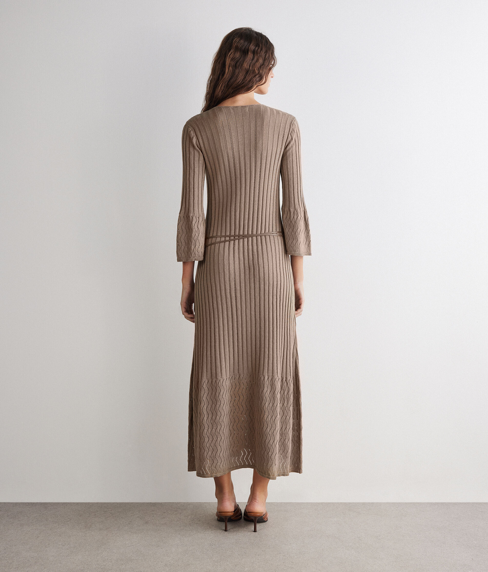 Abito a coste in cotone e lino (51% cotone, 49% lino). Le maniche a calla e il fondo presentano una lavorazione a punto onda che dona carattere al capo dalla vestibilità slim.