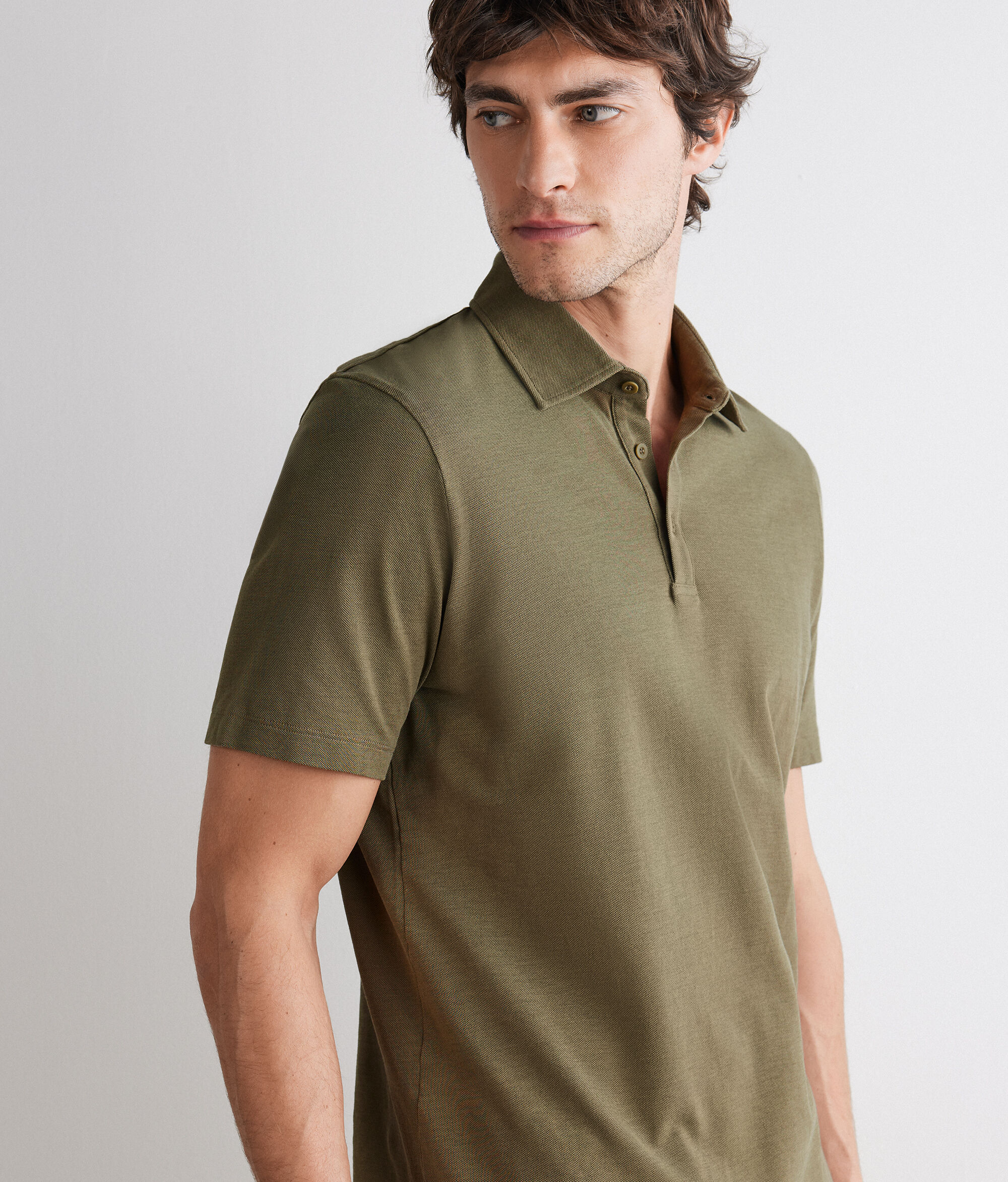 This polo shirt is made of cotton and silk jersey piqué (83% cotton, 17% silk). The garment features side slits and a suede-effect microfibre logo label.