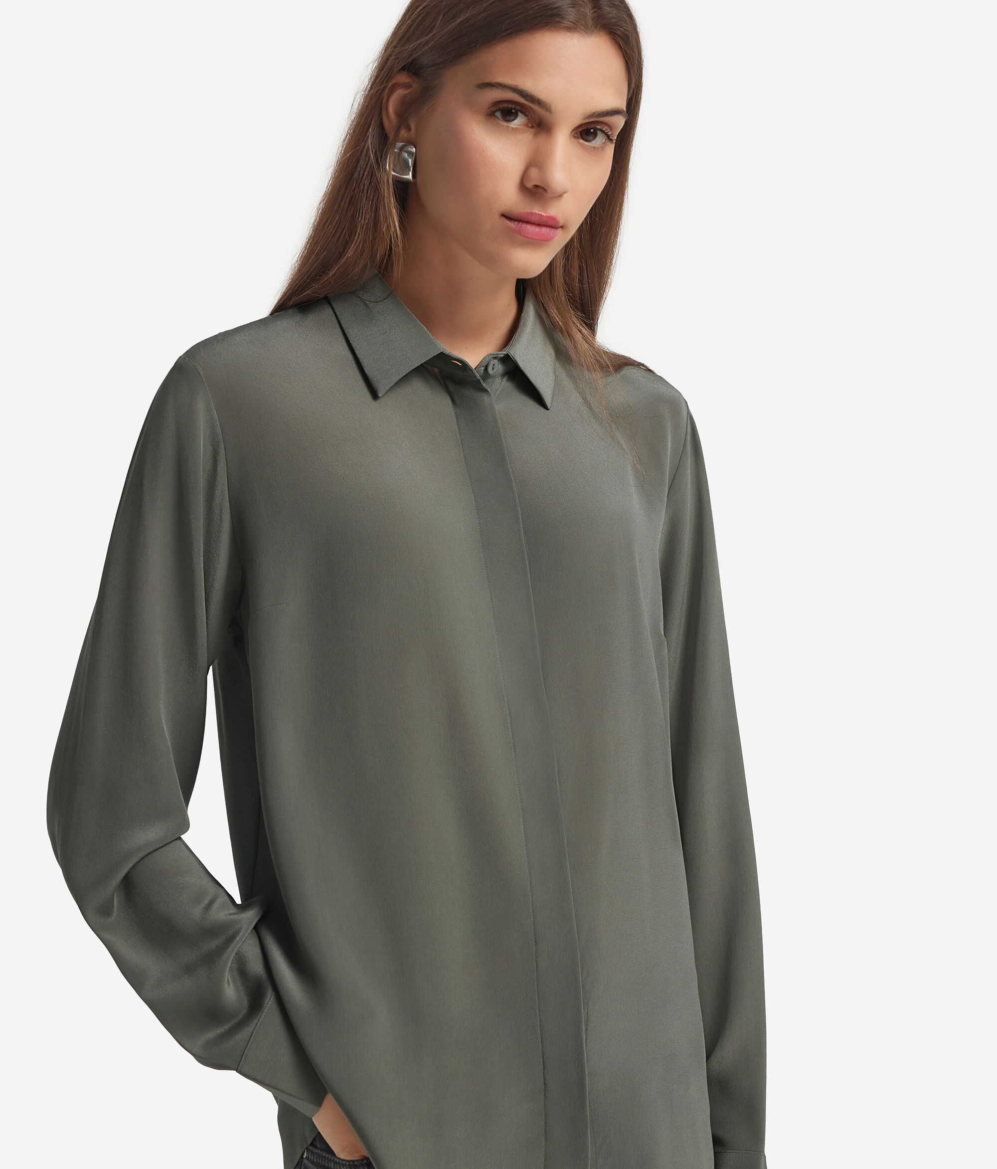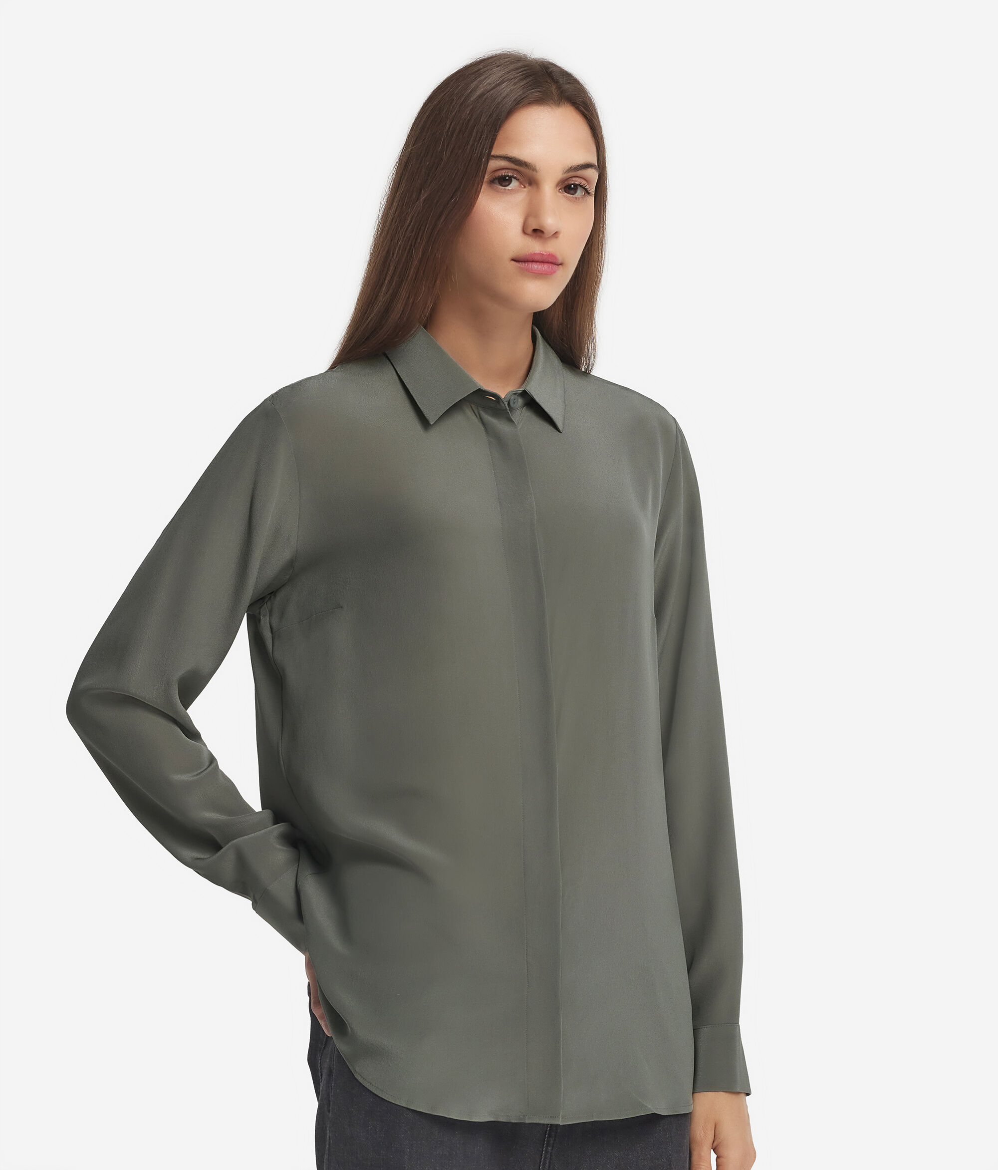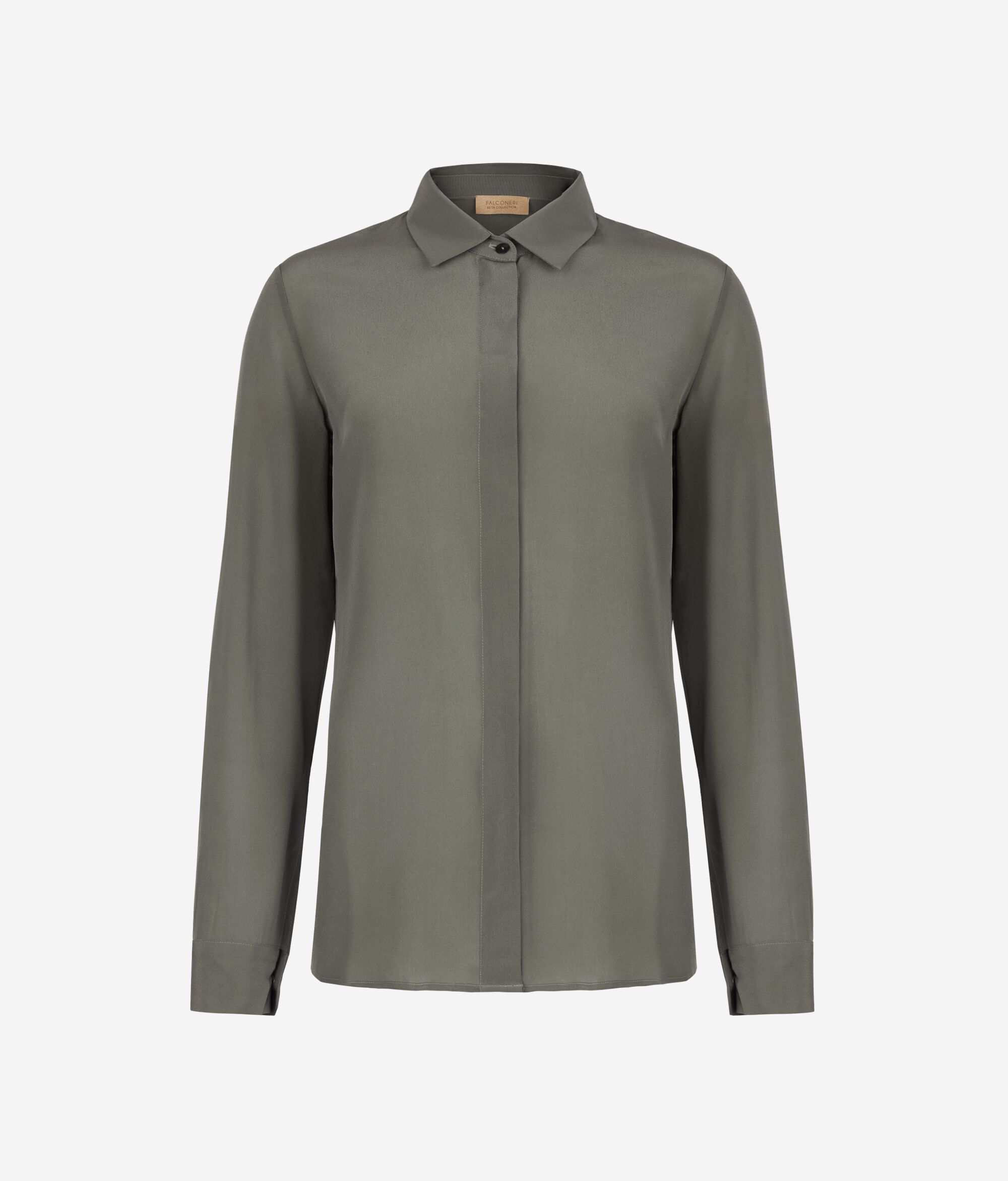 Discover the timeless elegance of this shirt crafted in crêpe de chine. With its clean and simple lines, the design is embellished with a classic collar and button fastening. Simple though distinctly sophisticated, it is a must-have piece in the wardrobe of those who love quality and style without compromise.