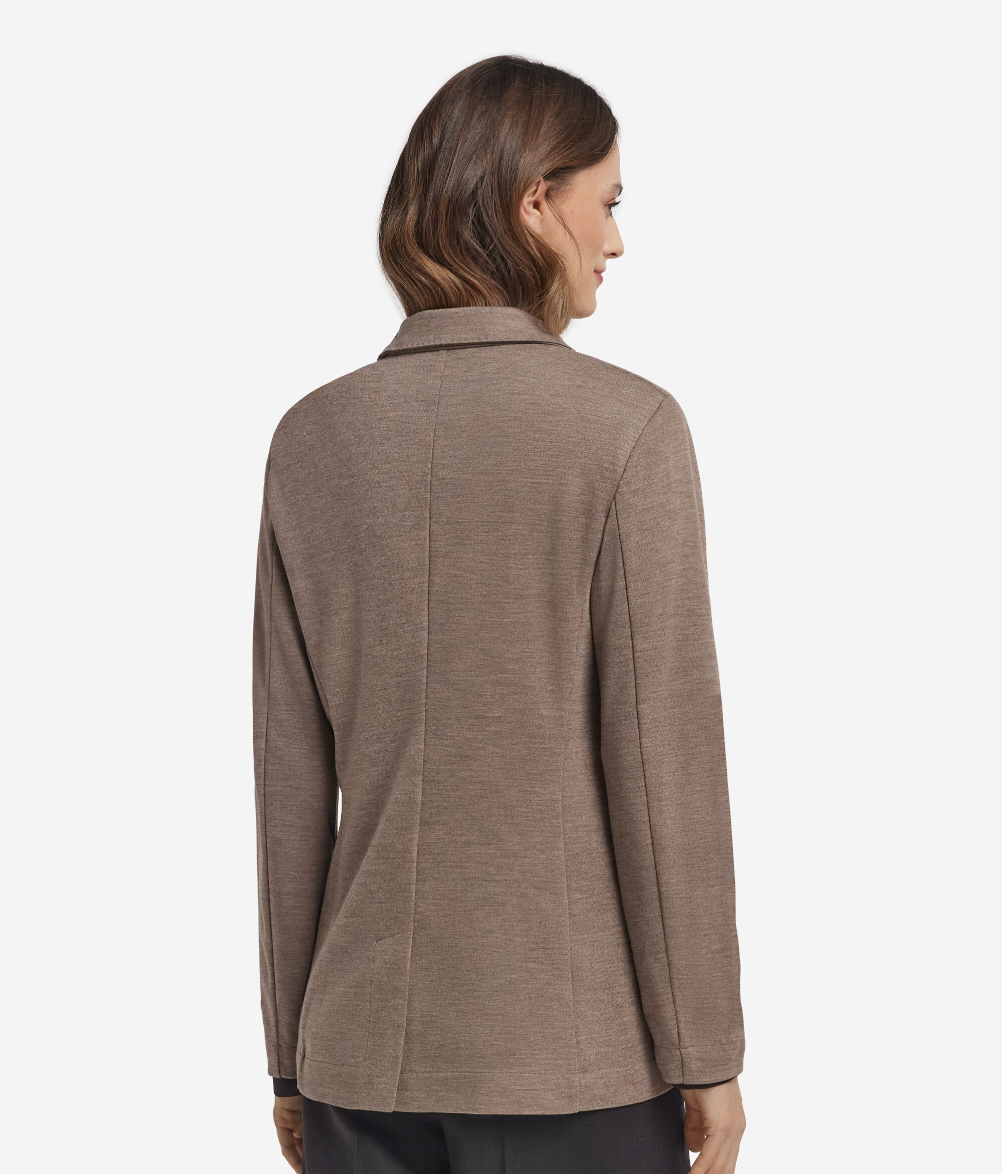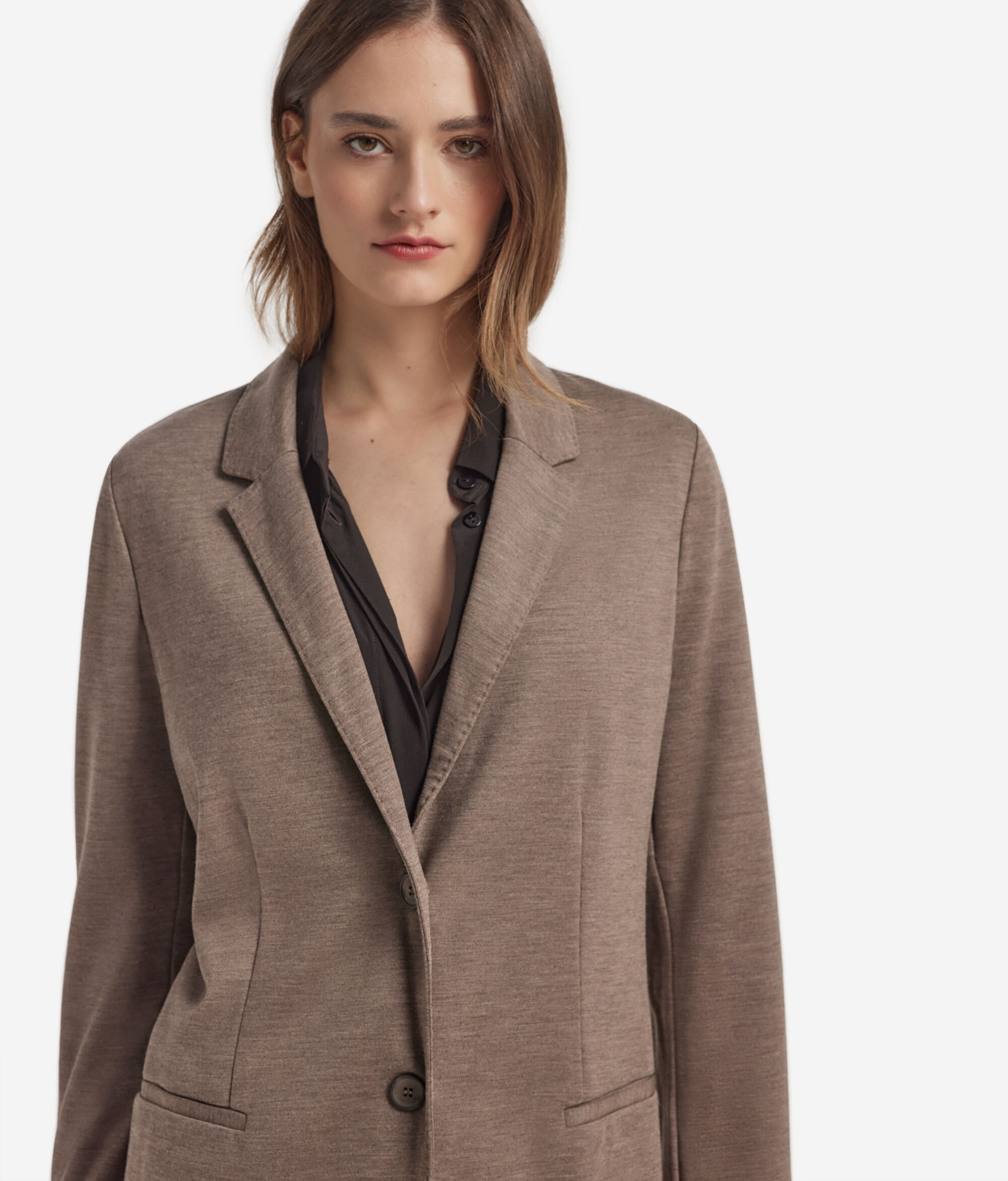 The enveloping texture of the wool enhances the timeless style of this jacket with a touch of elegance and refinement. The clean-cut lapels and simple button fastening define its design, complemented by welt pockets that emphasise its practicality. The regular shoulder and hip length ensure a balanced and versatile fit, making this garment sophisticated yet bold in character.