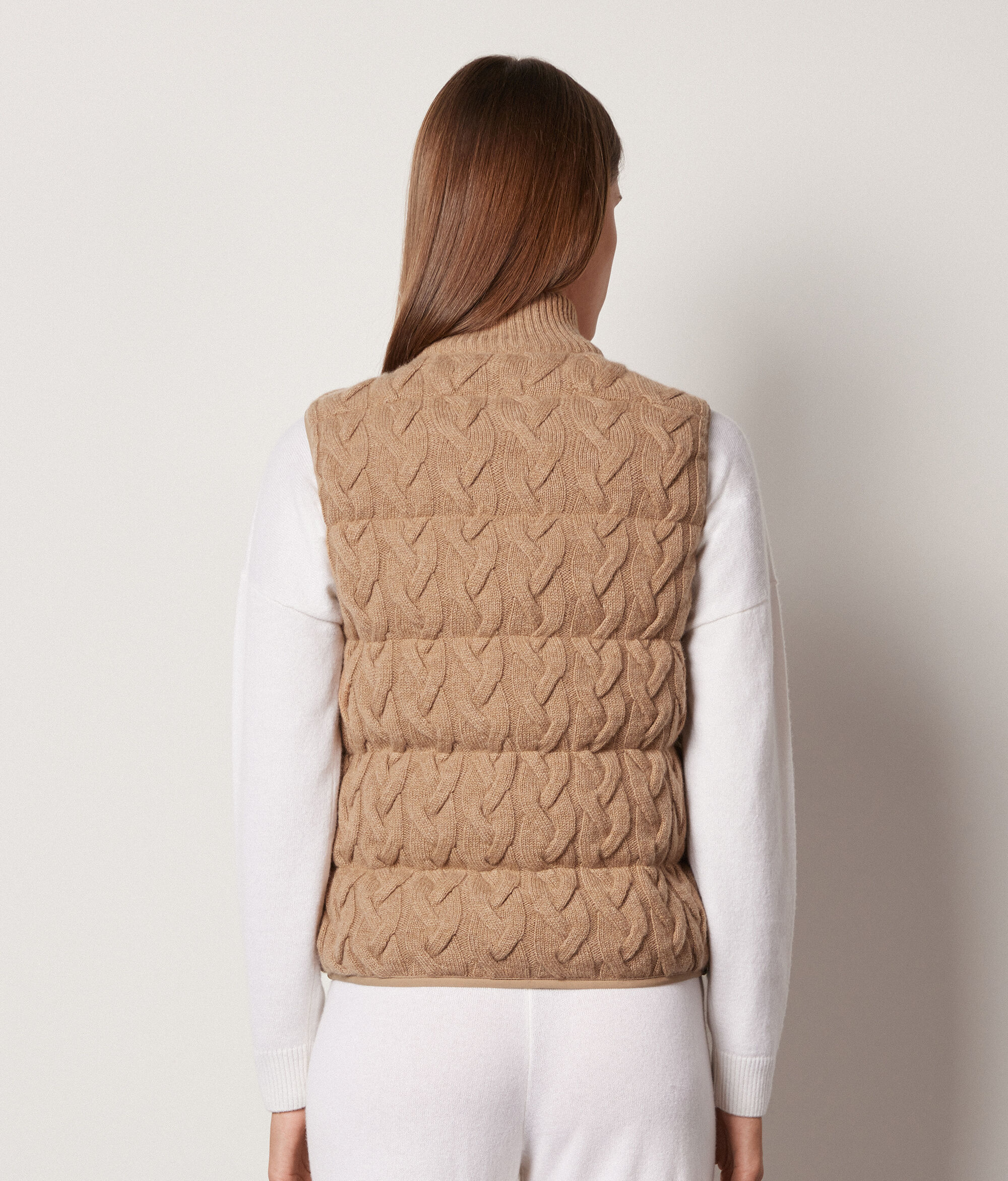 Dwustronny bezrękawnik puchowy z warkoczami