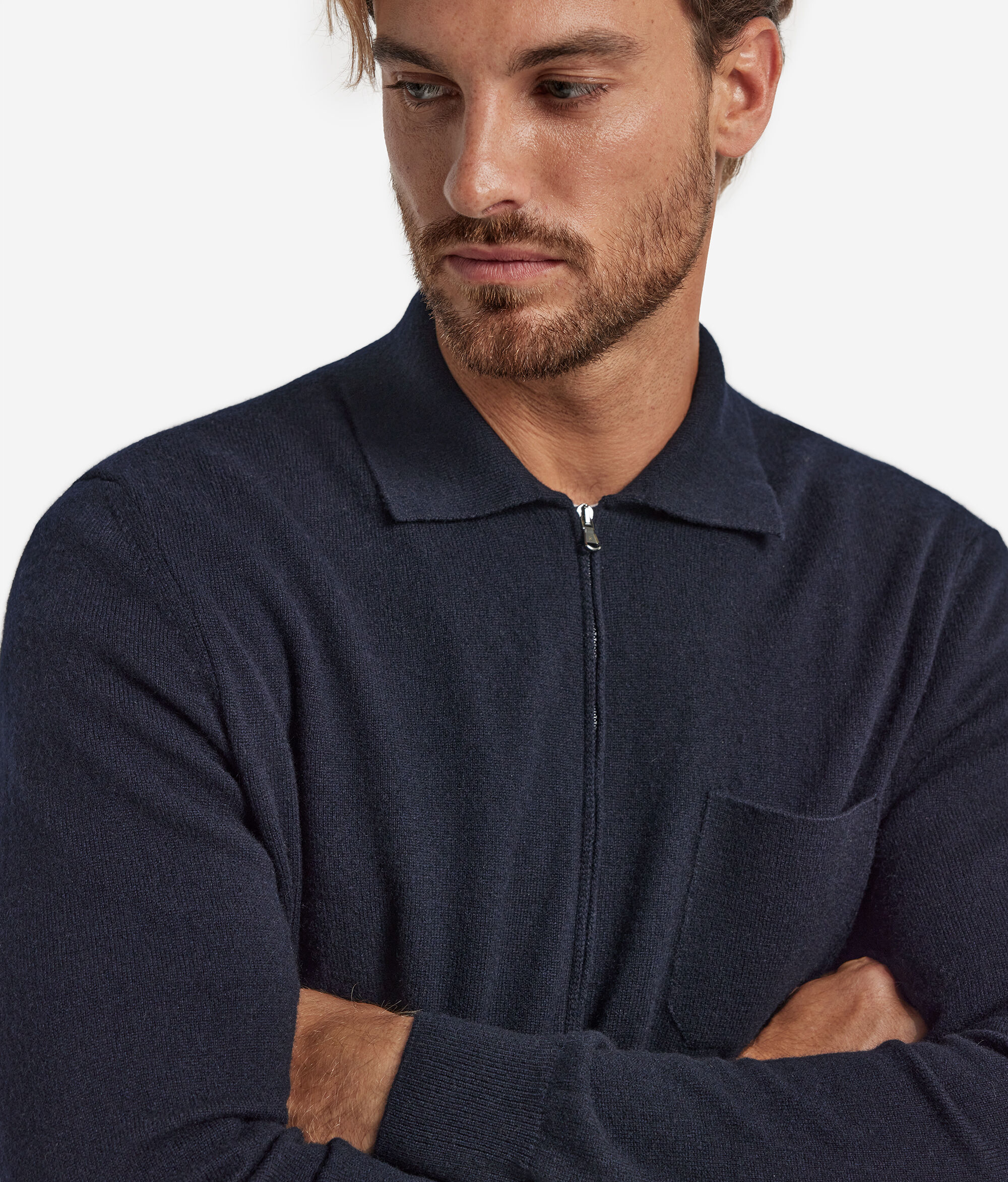 Uniwersalny, ciepły i miękki kardigan z kaszmiru Ultrasoft łączący w sobie wyrafinowaną fakturę i nowoczesny design. Gładki splot podkreśla miękkość przędzy, a klasyczny kołnierzyk nadaje eleganskiego wyglądu. Kardigan zapinany jest na zamek błyskawiczny odpinany z góry i z dołu. Kieszeń na piersi dodaje funkcjonalności i nieformalnego charakteru, a czyste linie i regularny krój idealnie dopełniają ten ponadczasowy element garderoby.