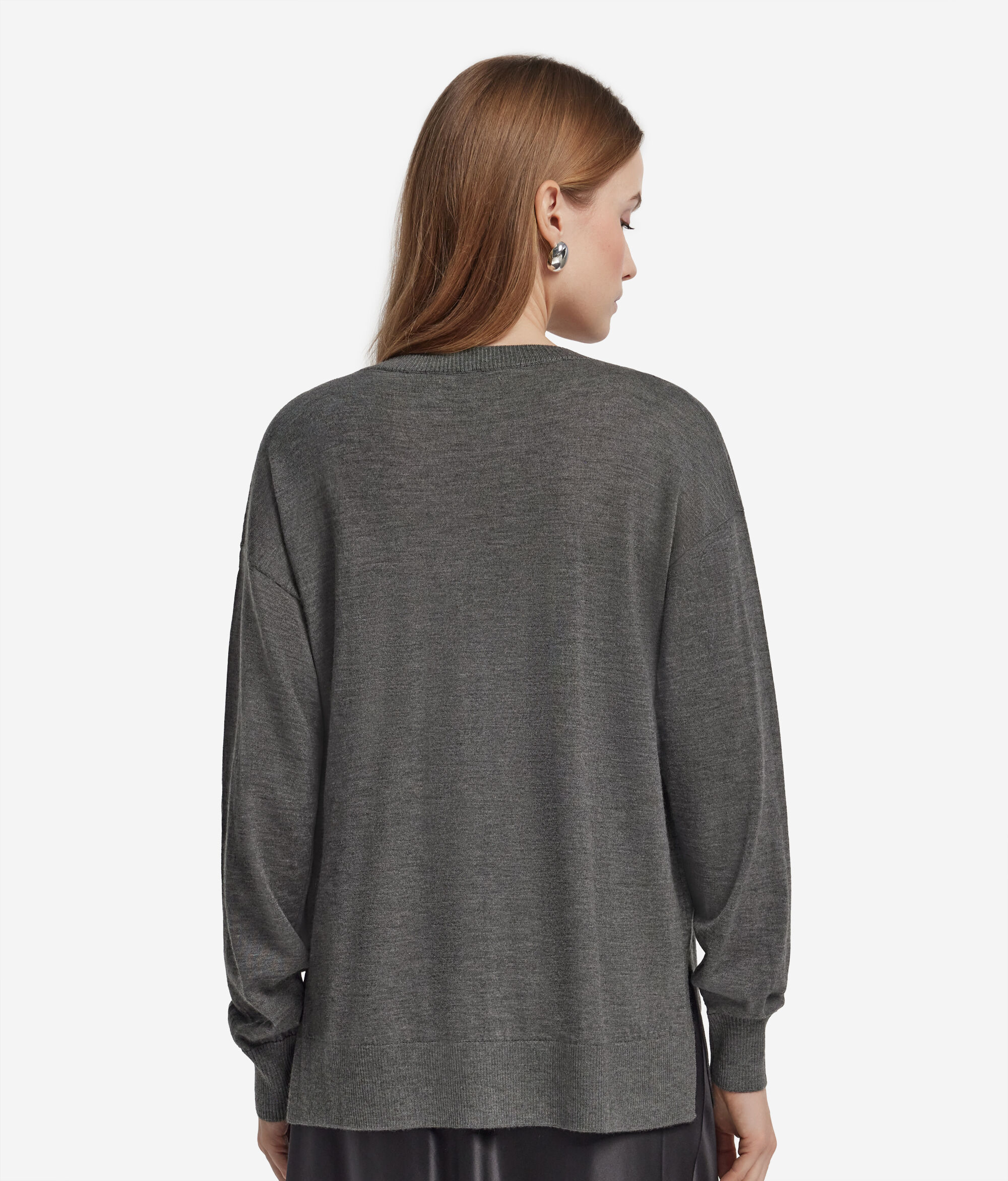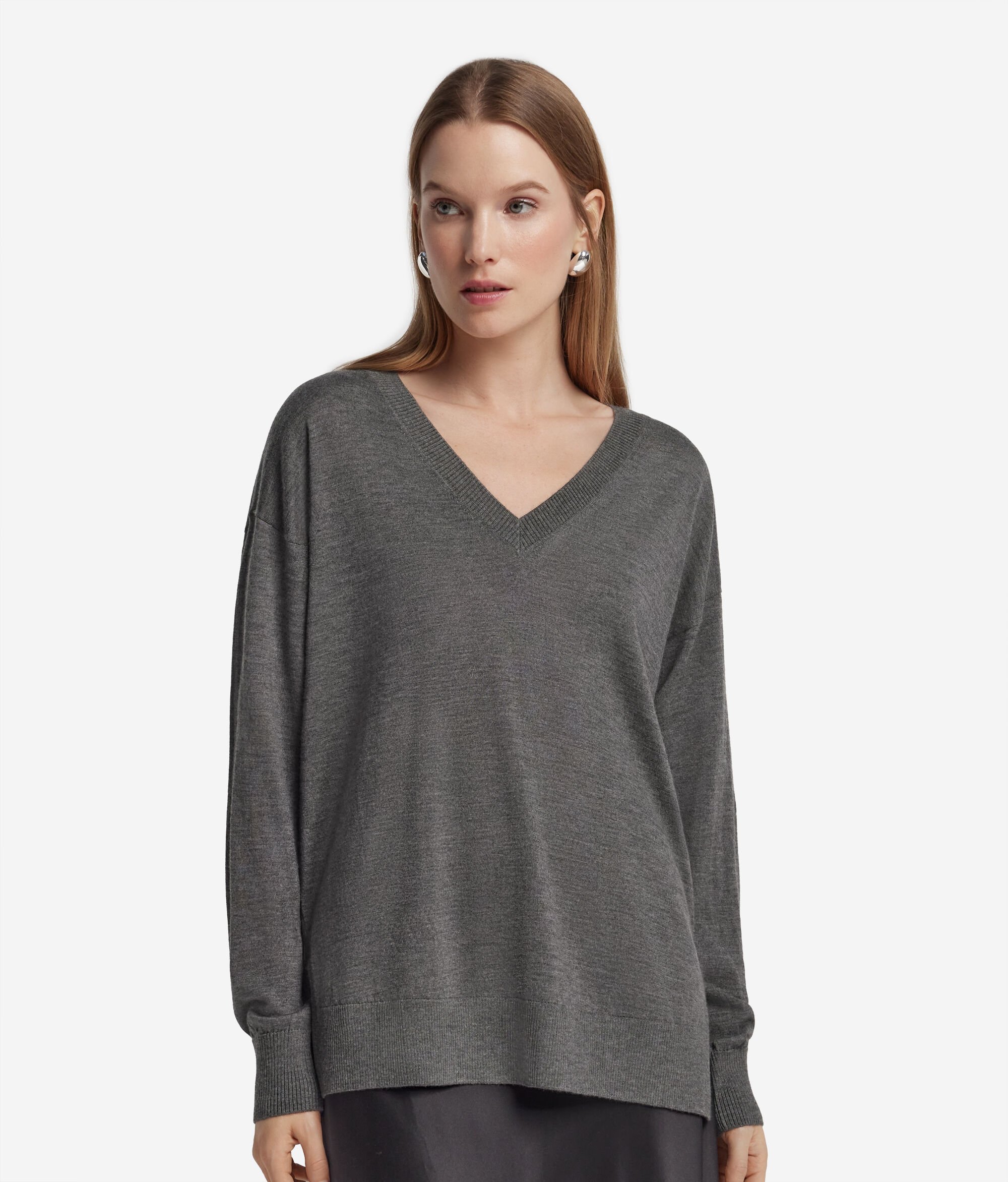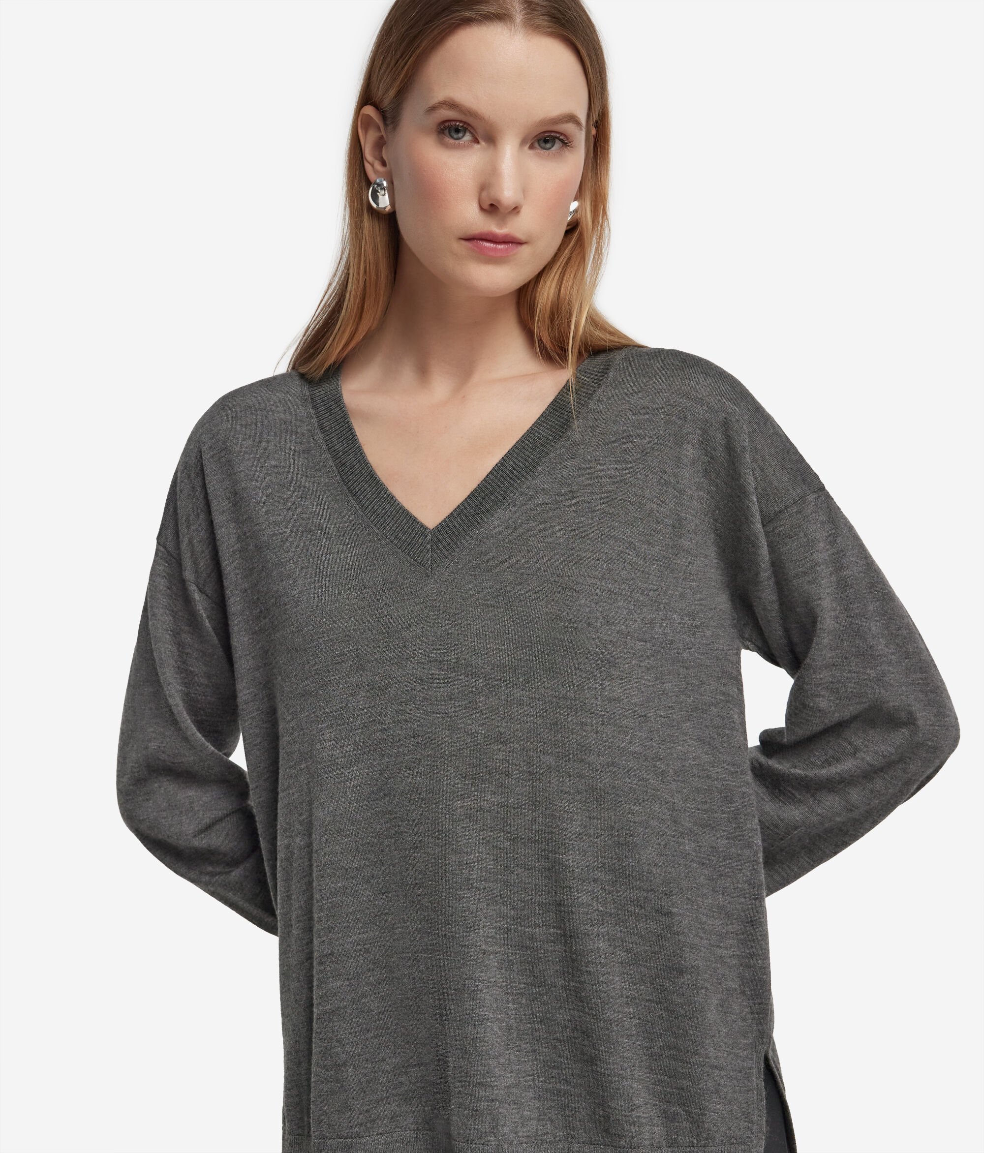 Kaszmirowy sweter z dekoltem w serek i rozcięciami
