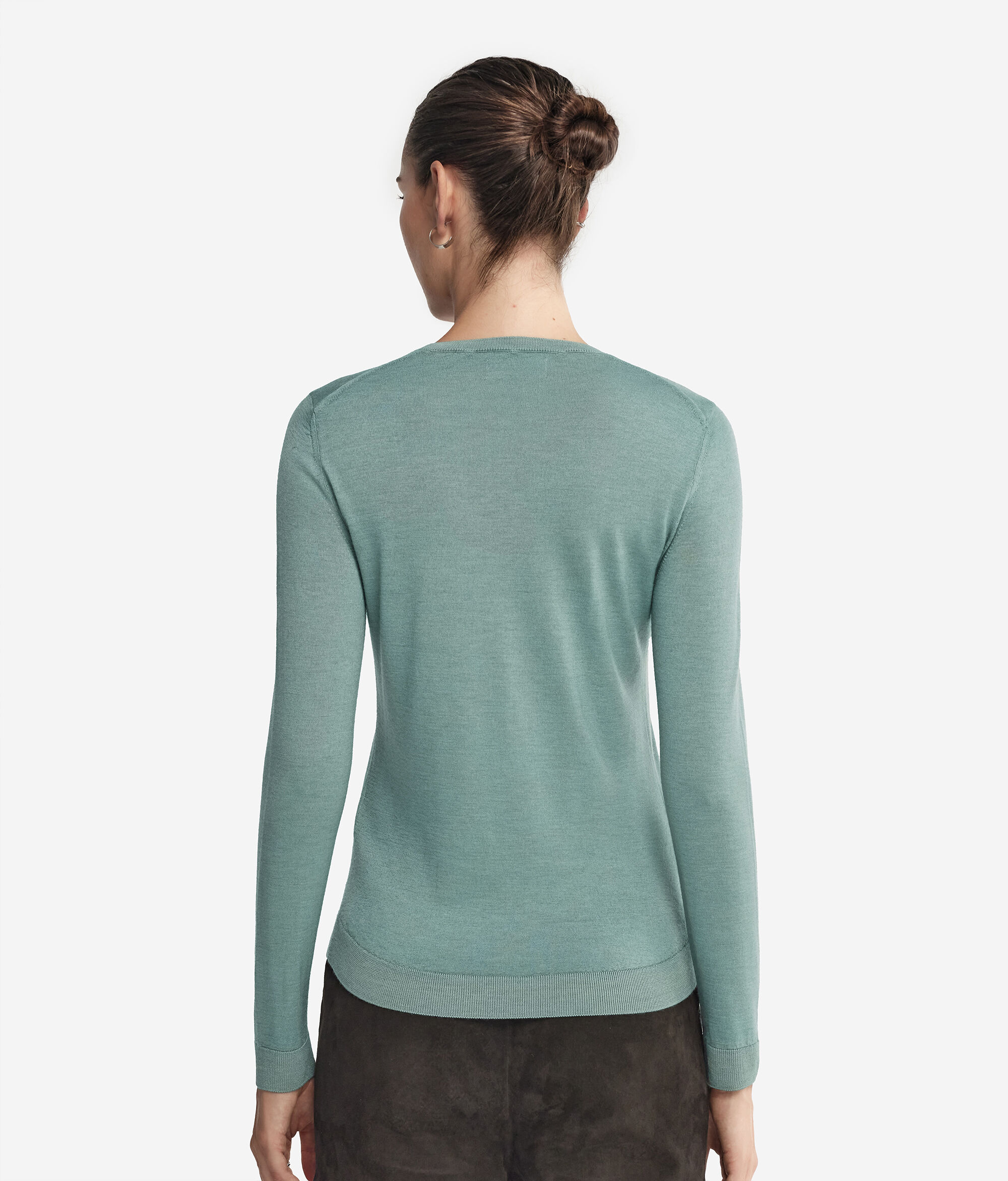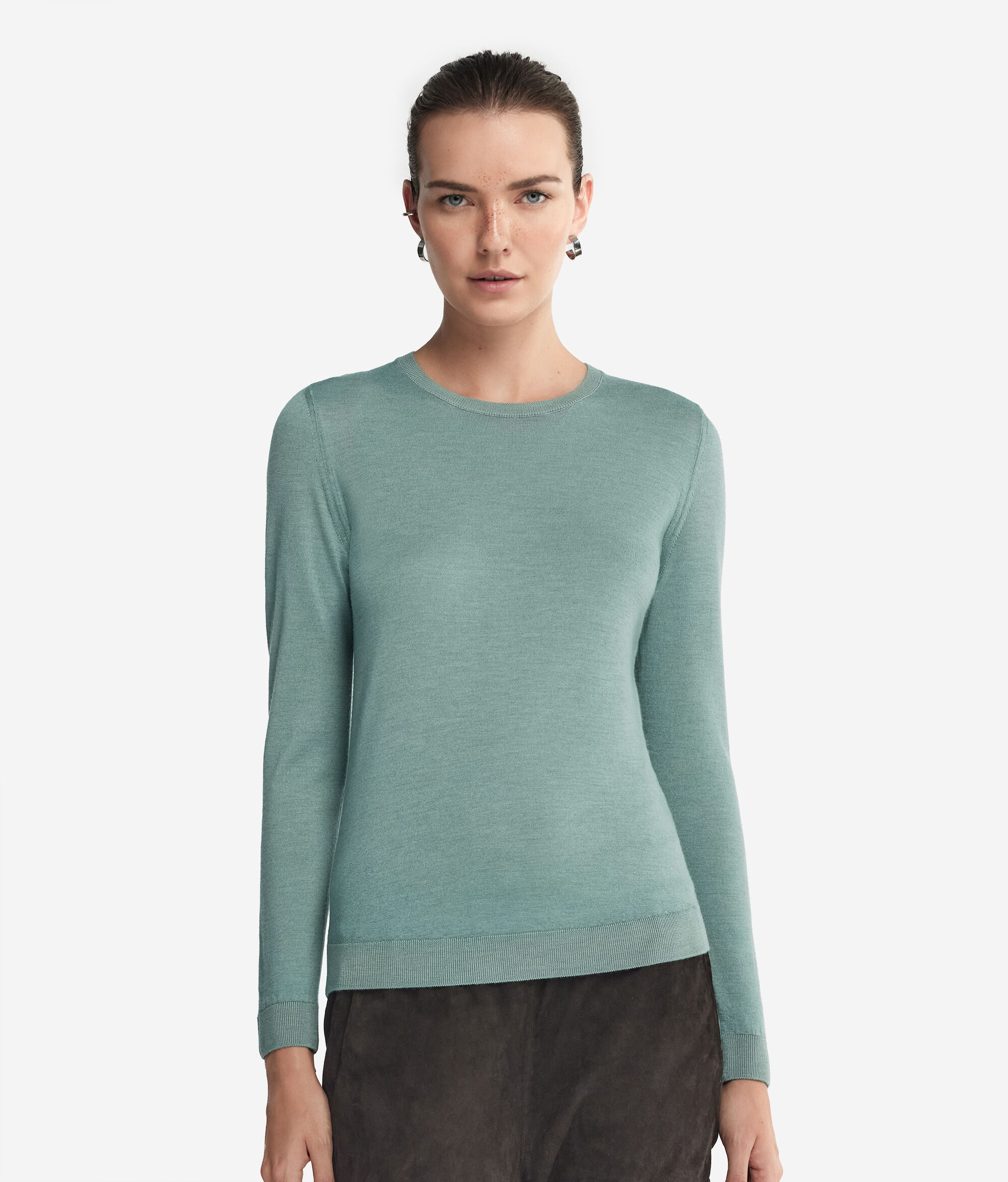 Klasyczny sweter z okrągłym dekoltem wykonany z kaszmiru Ultrafine. Fason posiada lekko zaokrąglony dół. Jego regularny krój zapewnia wygodne dopasowanie i nieskazitelny styl.