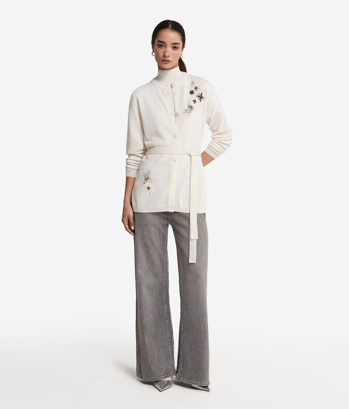 Kardigan z Dekoltem w Serek z Kaszmiru Ultrasoft