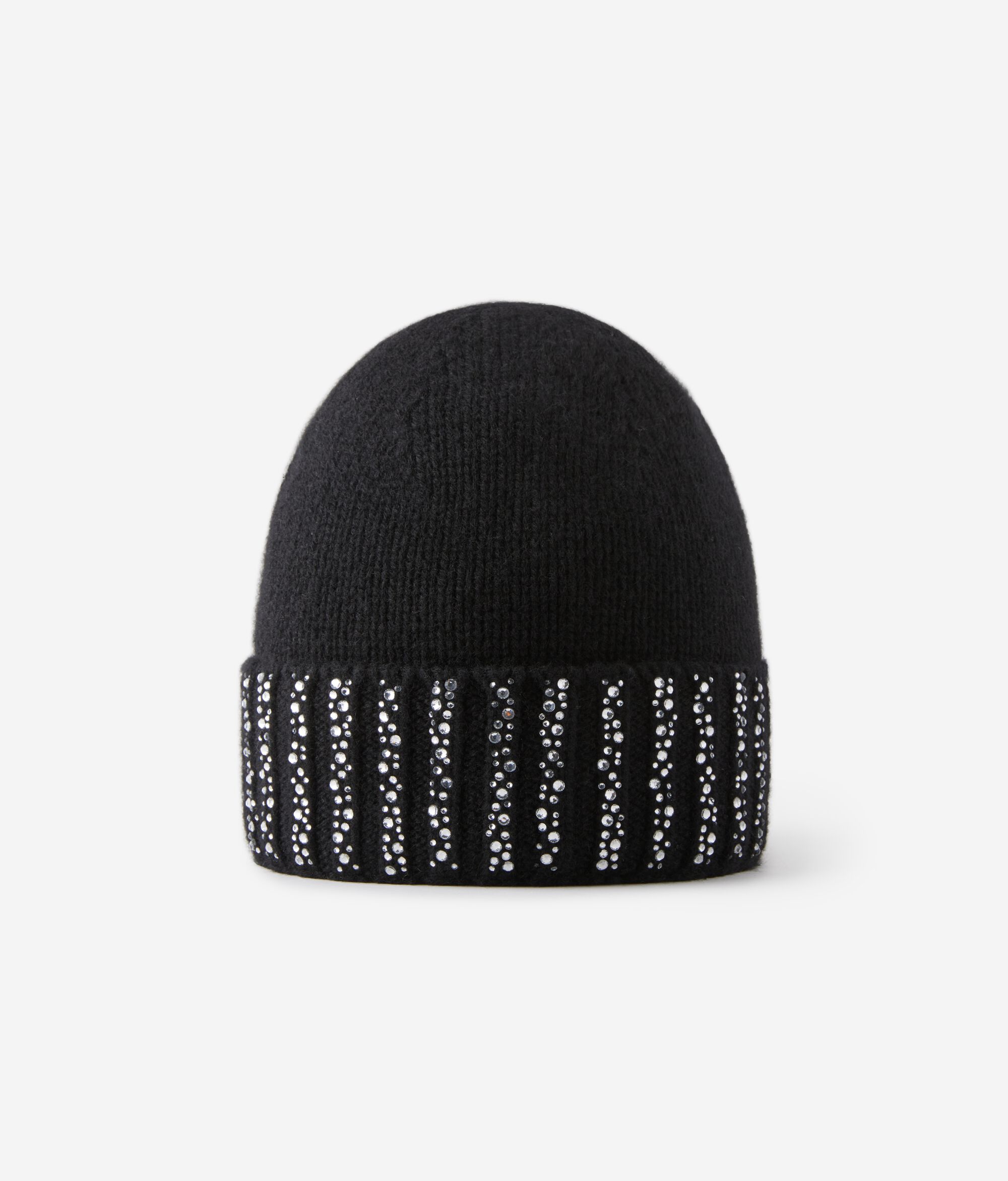 Il pregio del Cashmere Ultrasoft caratterizza questo cappello che avvolge la testa in un abbraccio caldo e leggero. Il bordo in costina aggiunge un tocco di raffinatezza, mentre gli strass incastonati creano un delicato gioco di luci, catturando l'attenzione senza risultare eccessivi. Un vero elemento di stile, ideale per completare i tuoi look in modo chic e sofisticato.