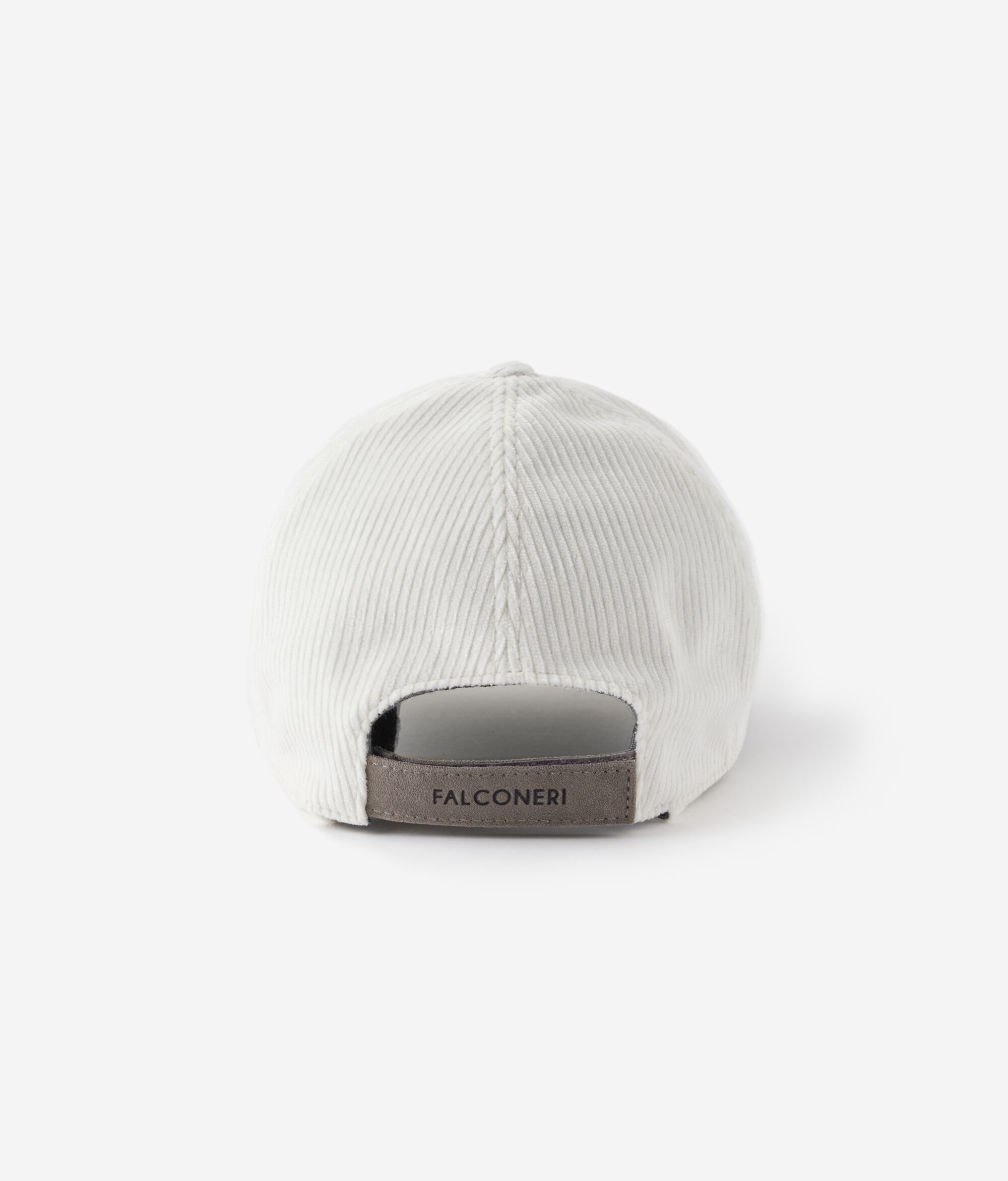 • Fascetta regolabile posteriore in microfibra e velcro e logo Falconeri
