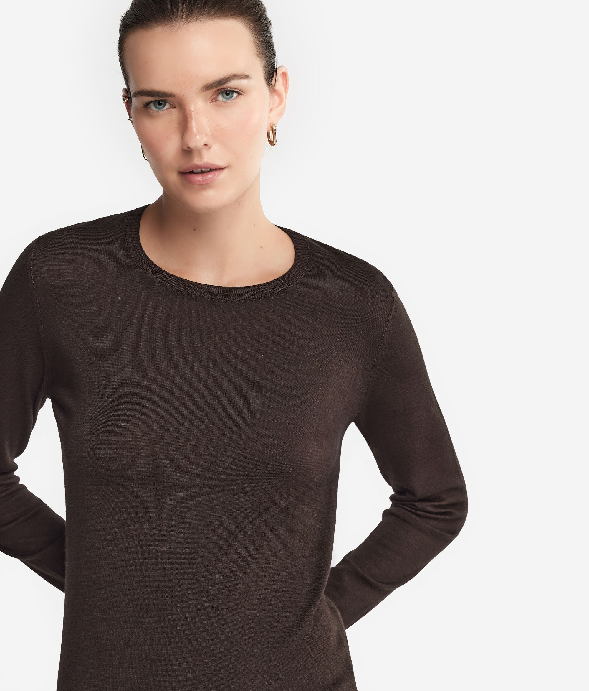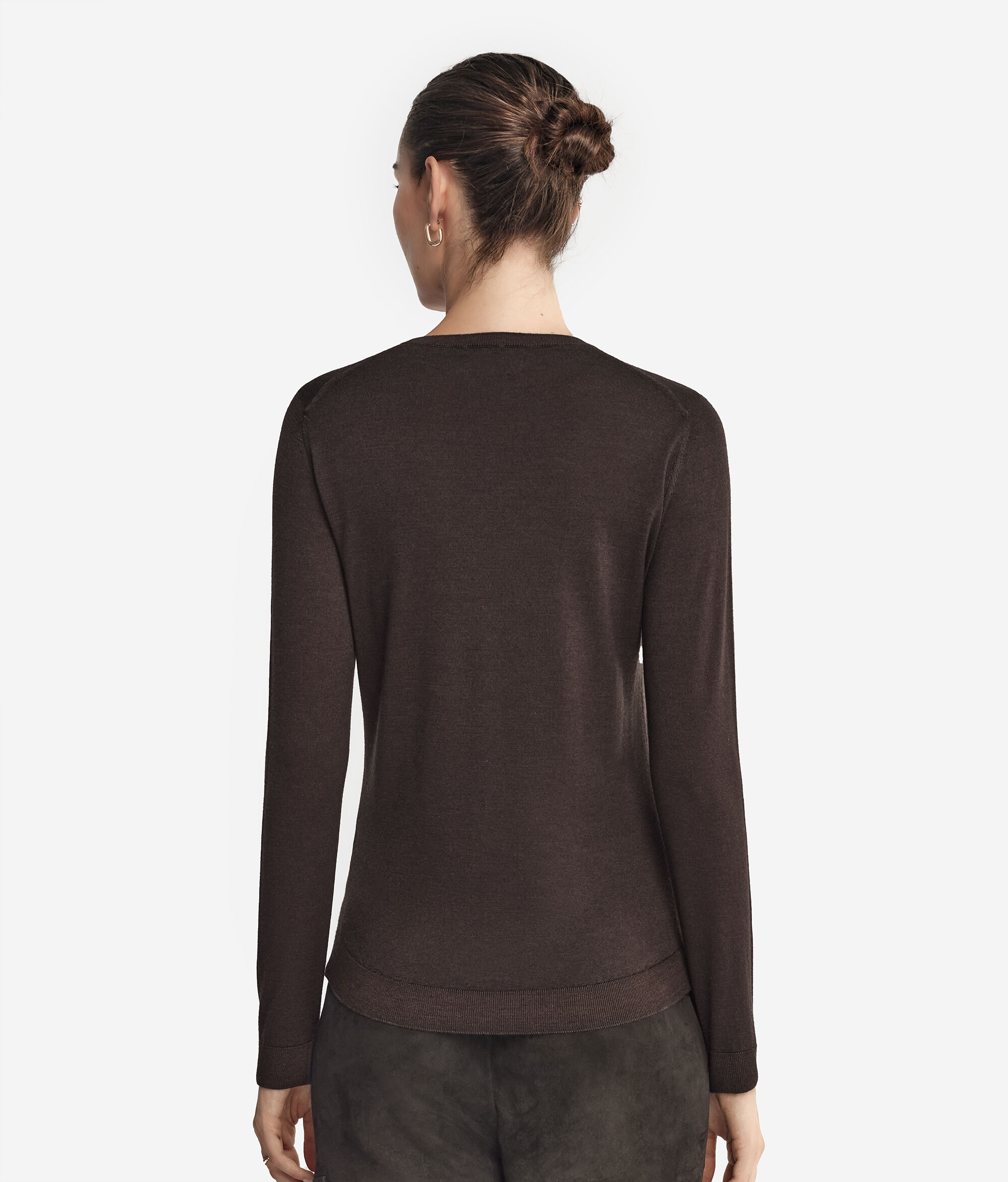 Classica ed essenziale, questa maglia girocollo è realizzata in Cashmere Ultrafine. Il design si differenzia grazie ad un fondo leggermente arrotondato. La vestibilità regolare è pensata per adattarsi comodamente alle forme, assicurando un look impeccabile.