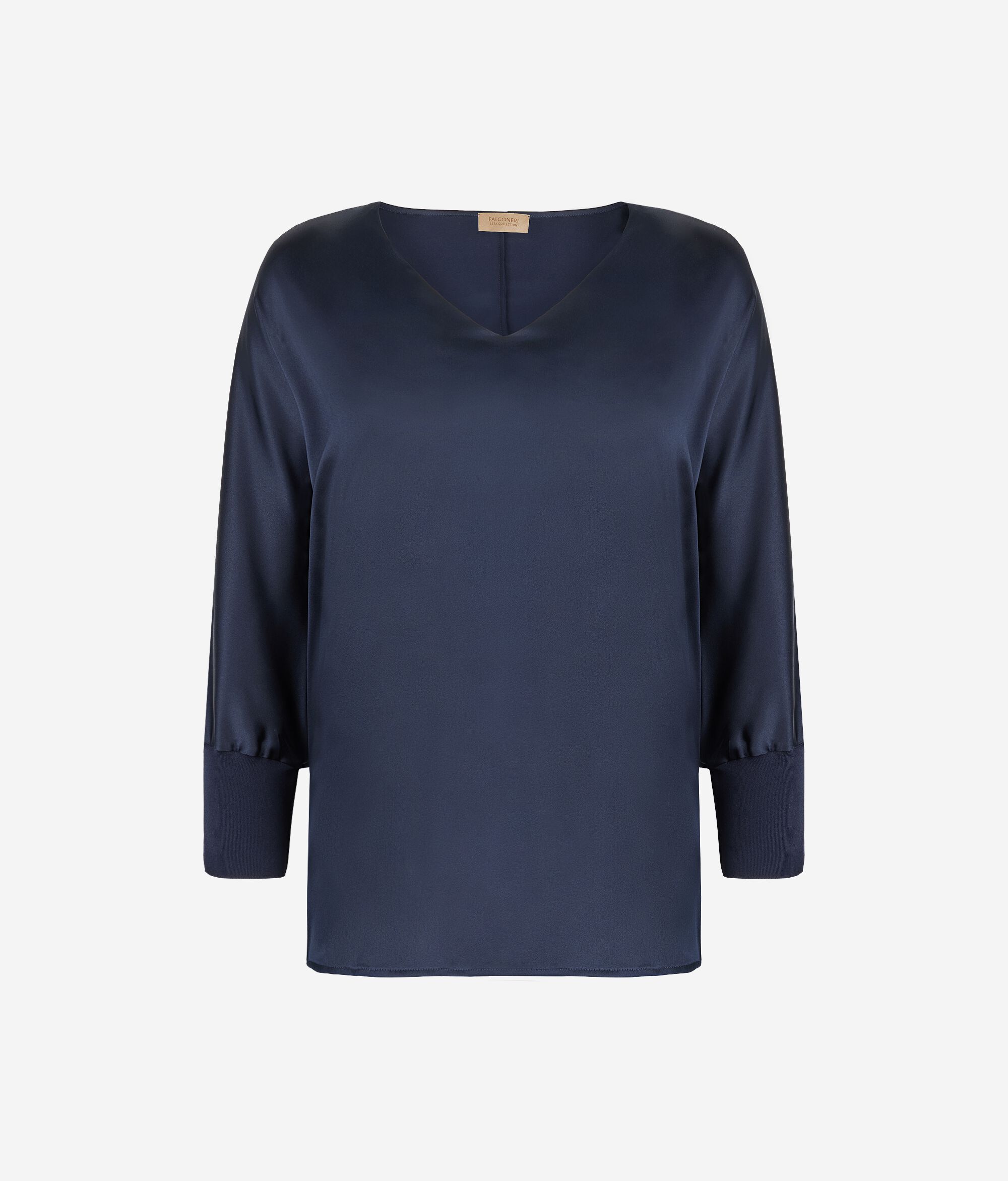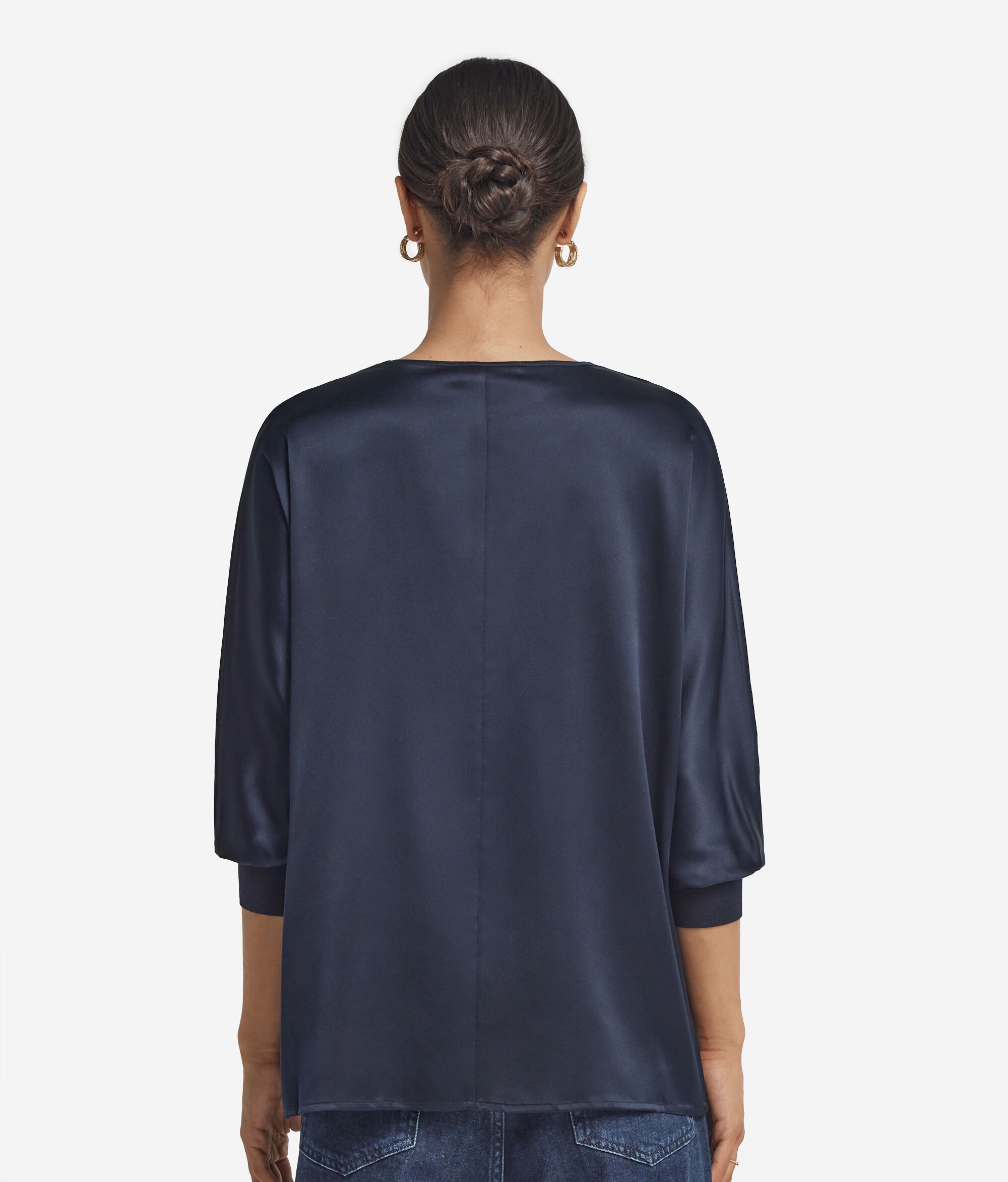 La blusa con scollo a V in seta è perfetta per creare look sofisticati capaci di valorizzare i dettagli con stile. Il modello è realizzato in raso di seta ed è sapientemente disegnato per enfatizzare le morbide linee del tessuto. I dettagli sartoriali come i polsi in maglia di cotone e la forma dello scollo rendono più grintoso lo stile della blusa in seta con scollo a V.