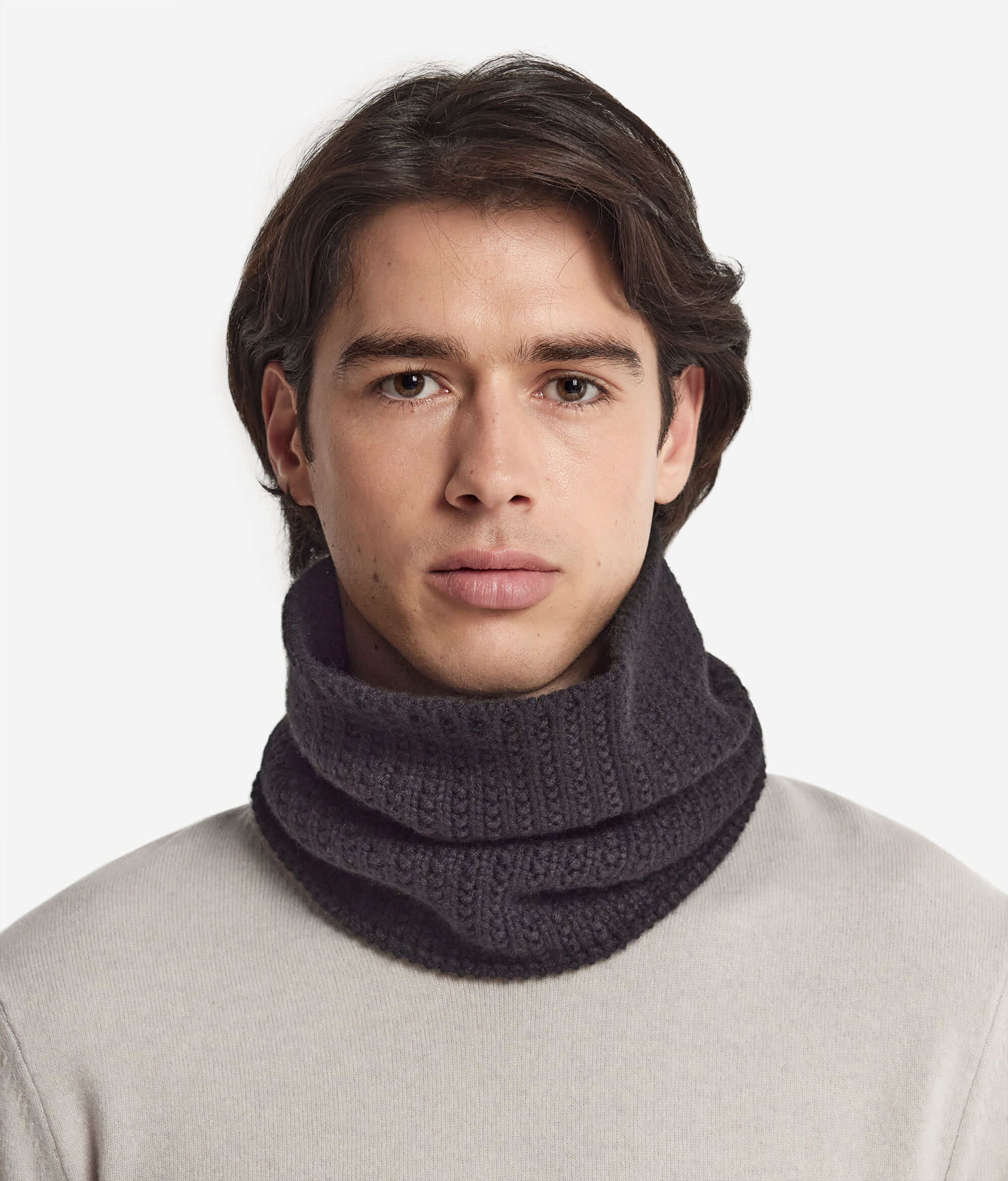 Realizzato in pregiato cashmere questo scaldacollo si caratterizza per la sua linea semplice ed essenziale. La morbida texture è resa unica da una fantasia a coste, che lo rende un accessorio passe-partout per dare al look un tocco di raffinata eleganza.