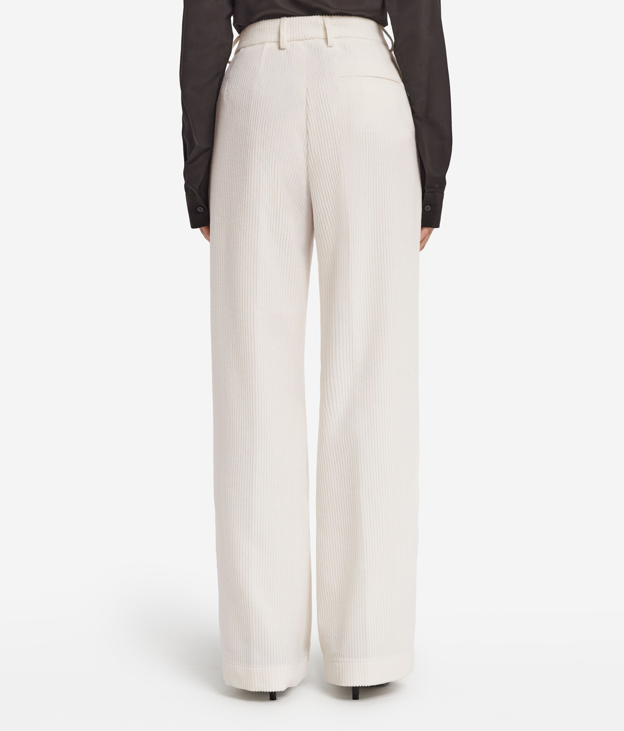 Un’eleganza che scivola con naturalezza. In velluto di lana e cashmere, questo pantalone unisce morbidezza e luminosità in una texture preziosa. Le tasche all’americana e la chiusura con zip e bottone richiamano la cura sartoriale, mentre la vestibilità morbida e la lunghezza a terra definiscono una silhouette fluida e impeccabile, pensata per una femminilità che ama distinguersi con discrezione e classe.