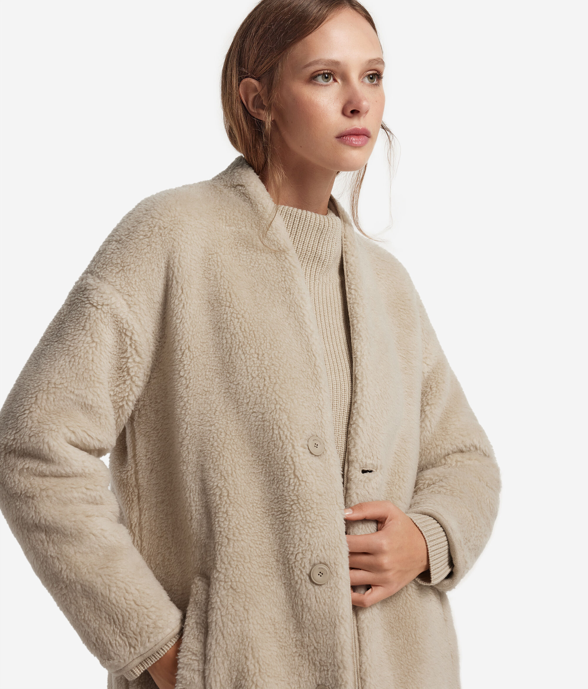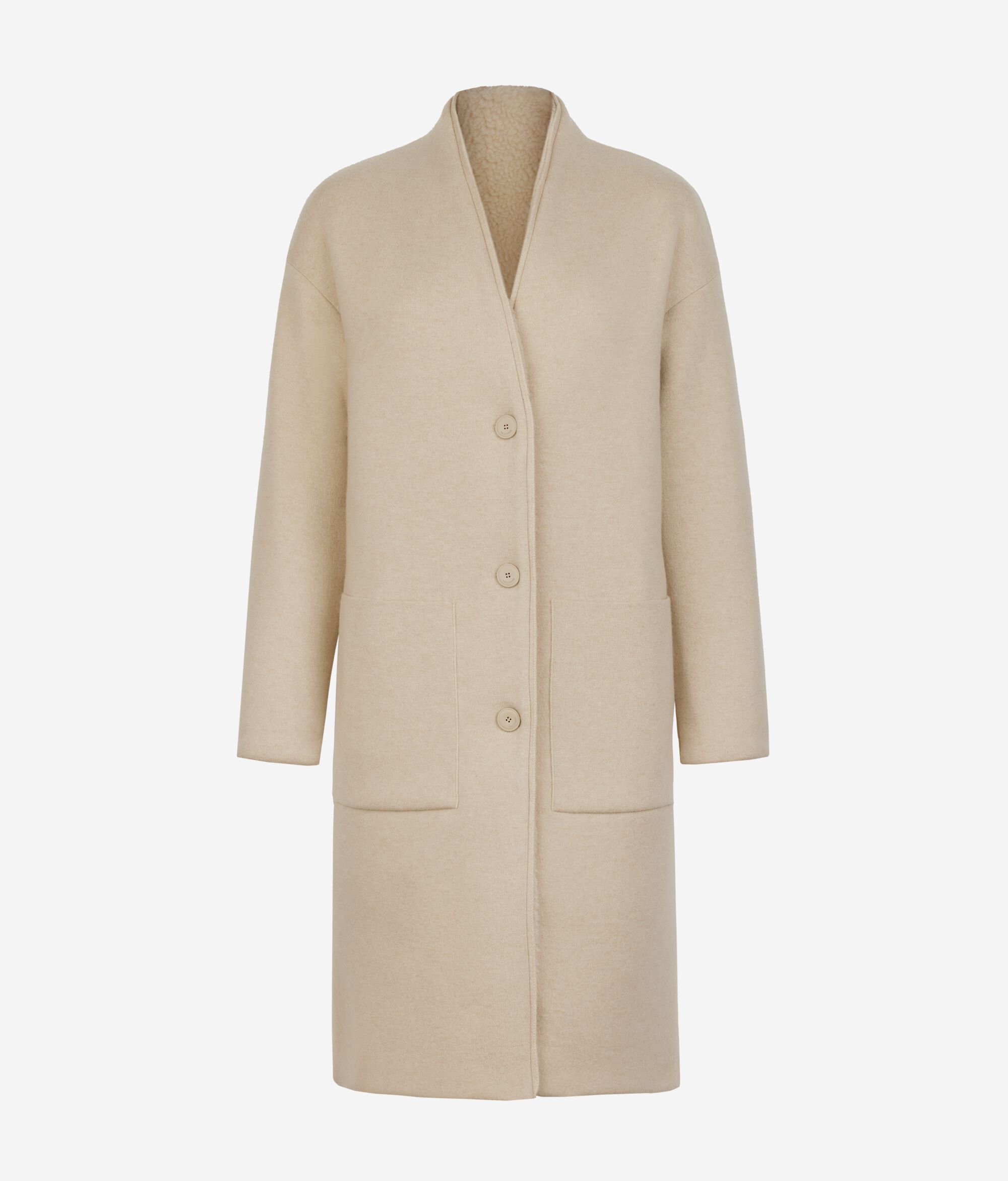 Un capo versatile e prezioso, questo cappotto reversibile unisce la morbidezza del cashmere ultrasoft alla calda pelliccia di cashmere. Il collo a scialle e la spalla scesa regalano un comfort rilassato, mentre le tasche applicate aggiungono praticità senza appesantire il design. La lunghezza al ginocchio lo rende perfetto per affrontare con stile le giornate più fresche, donando un mix di eleganza e funzionalità per un must-have senza tempo.
