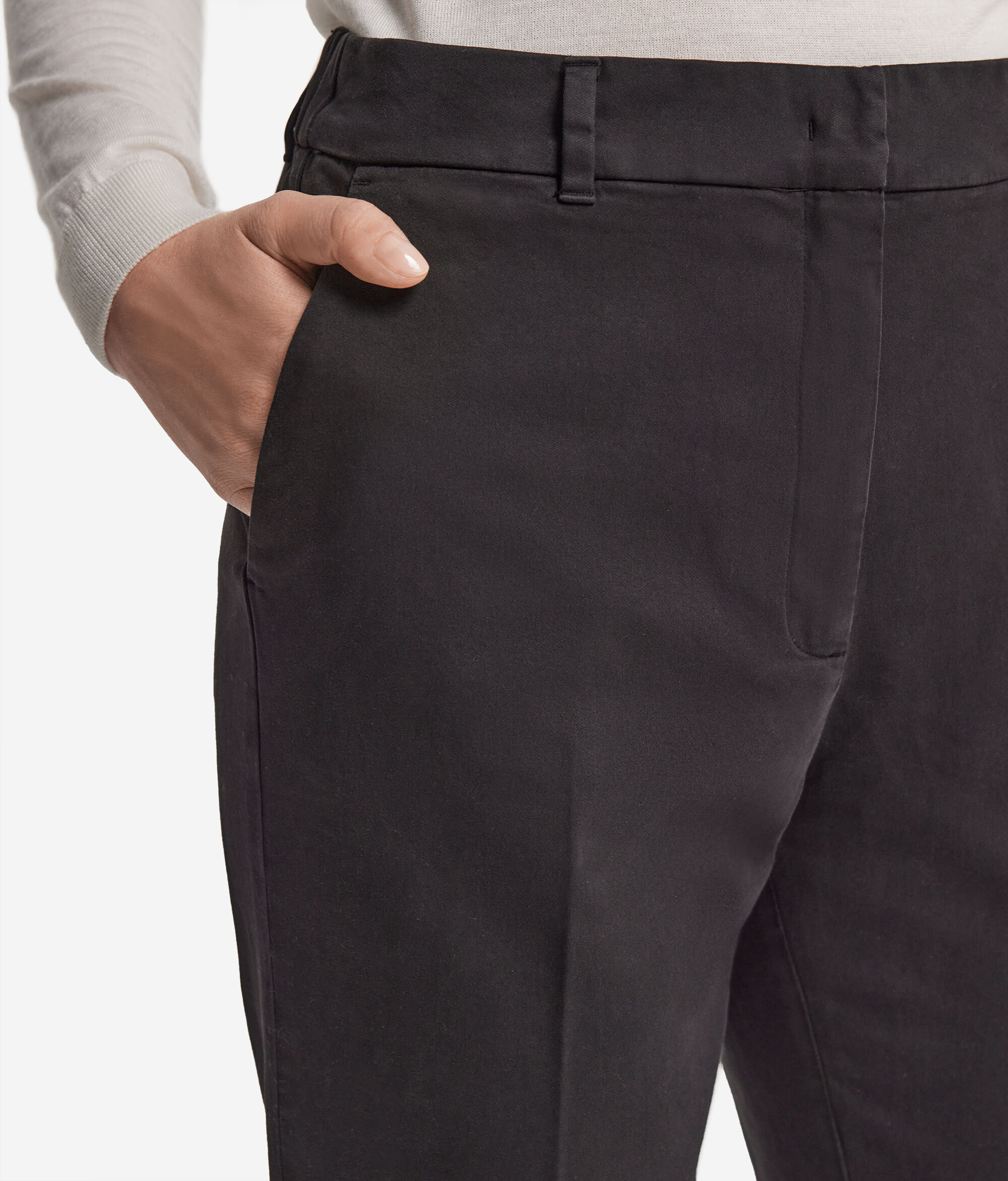 L'eleganza senza tempo incontra lo stile essenziale in questo pantalone sigaretta. A caratterizzarne il design minimal un cinturino elastico nella parte posteriore e una chiusura con zip e gancio davanti. Le tasche laterali posizionate sui fianchi aggiungono un dettaglio sofisticato e distintivo. Le linee leggermente aderenti definiscono la vestibilità regolare e il gusto femminile del capo.