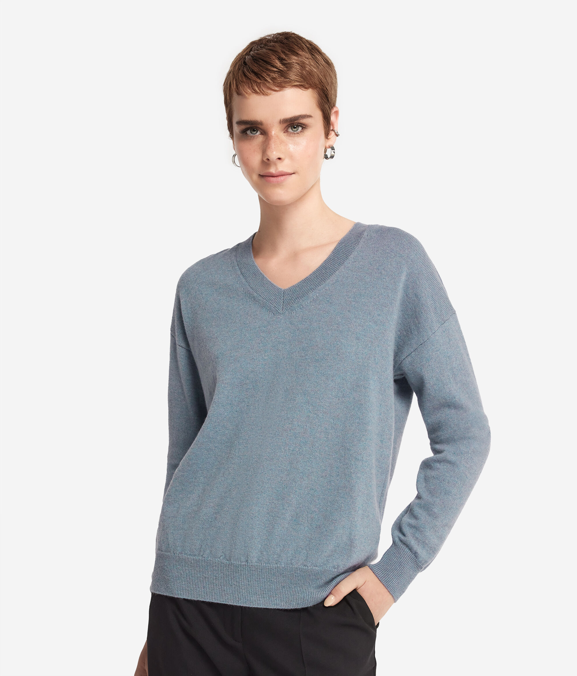 Realizzata in soffice Cashmere Ultrasoft, questa maglia dallo scollo a V diventerà il pezzo chiave del tuo guardaroba durante le giornate più fresche. Il bordo, i polsini e lo scollo sono impreziositi da una lavorazione a costine che aggiunge un tocco di raffinatezza. Le spalle scese e la sua vestibilità morbida conferiscono un fit rilassato e naturale che risponde ad uno stile attuale e contemporaneo.