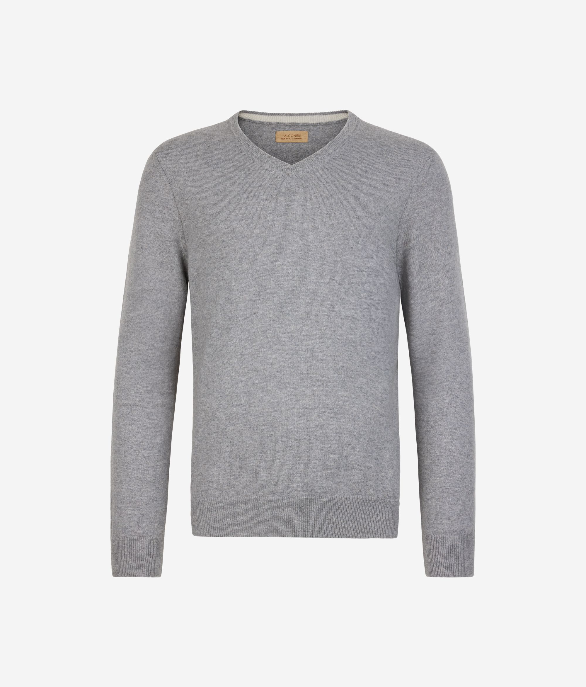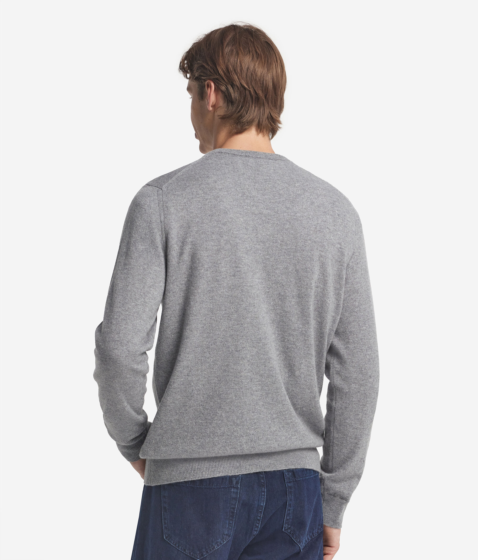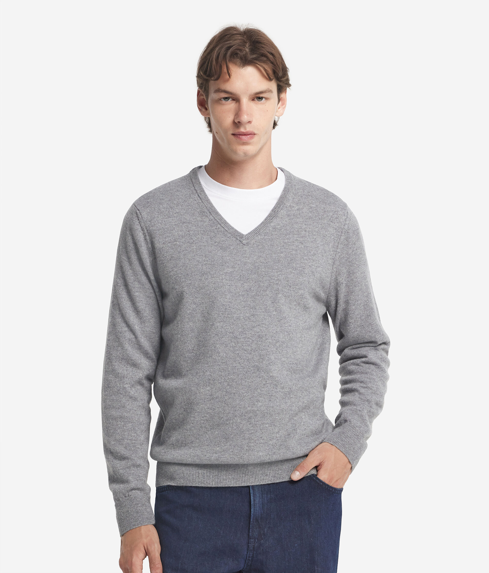 Camisola com decote em V confecionada em sofisticada caxemira ultrasoft, criada para proporcionar suavidade e estilo. O design distingue-se pelo elegante decote com vivos e o corte regular que criam uma peça versátil e ideal para uma elegância quotidiana.