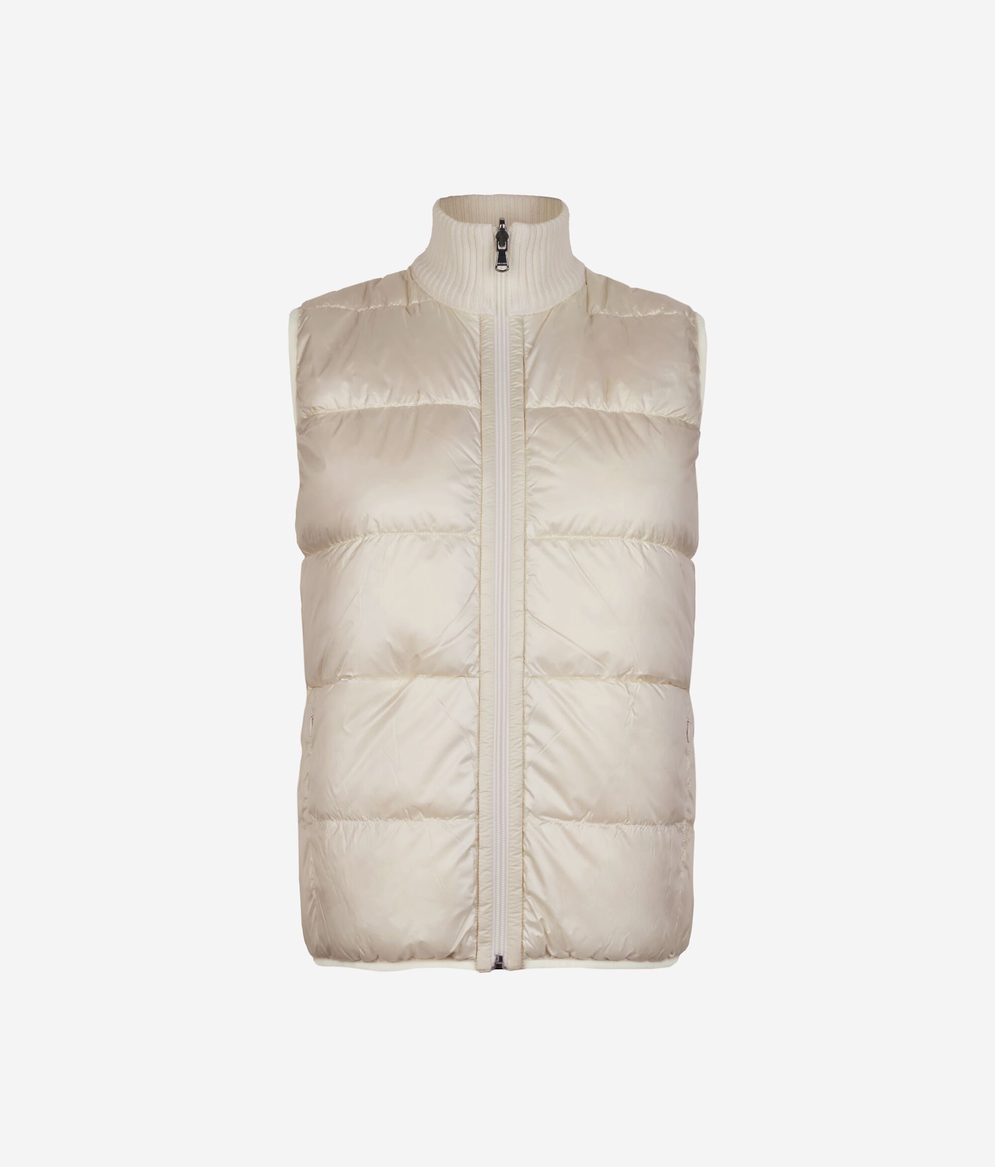 Confecionado em preciosa Caxemira Ultrasoft e nylon, este colete acolchoado reversível destaca-se pelo seu entrançado vertical, que confere profundidade e personalidade ao tecido. O fecho de correr metálico combina com uma gola alta de caxemira ultrasoft, garantindo um conforto envolvente e uma proteção extra. Com comprimento pela anca e corte regular, esta peça combina versatilidade, estilo e funcionalidade em perfeito equilíbrio.
