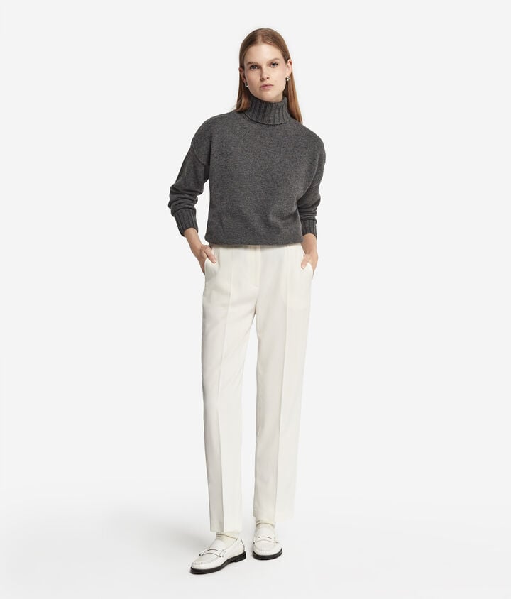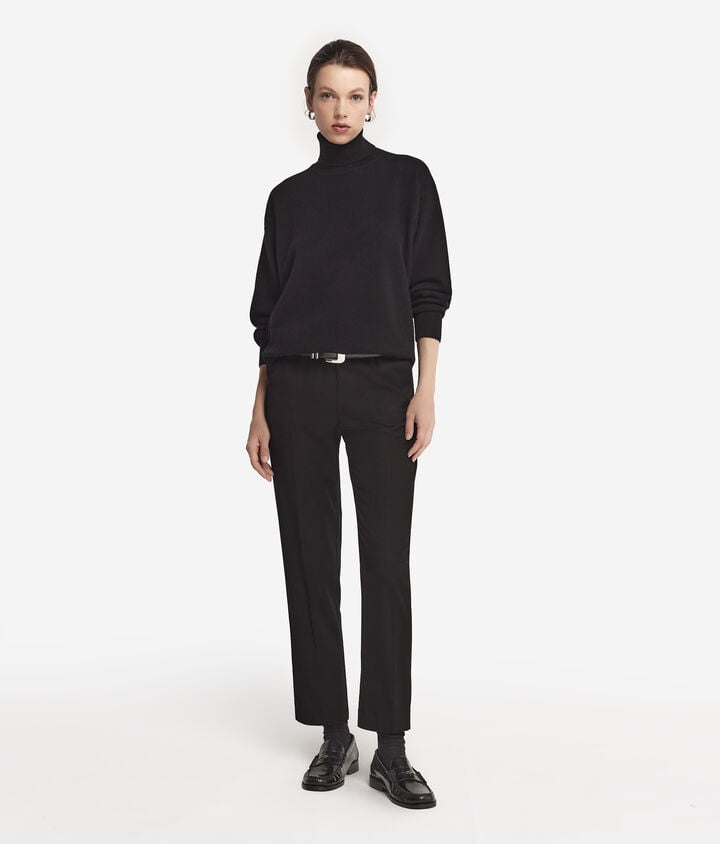 Camisola de Gola Alta em Ultrasoft Cashmere com Rachas
