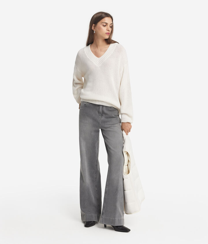 Camisola com Decote em V em Malha de Ultrasoft Cashmere