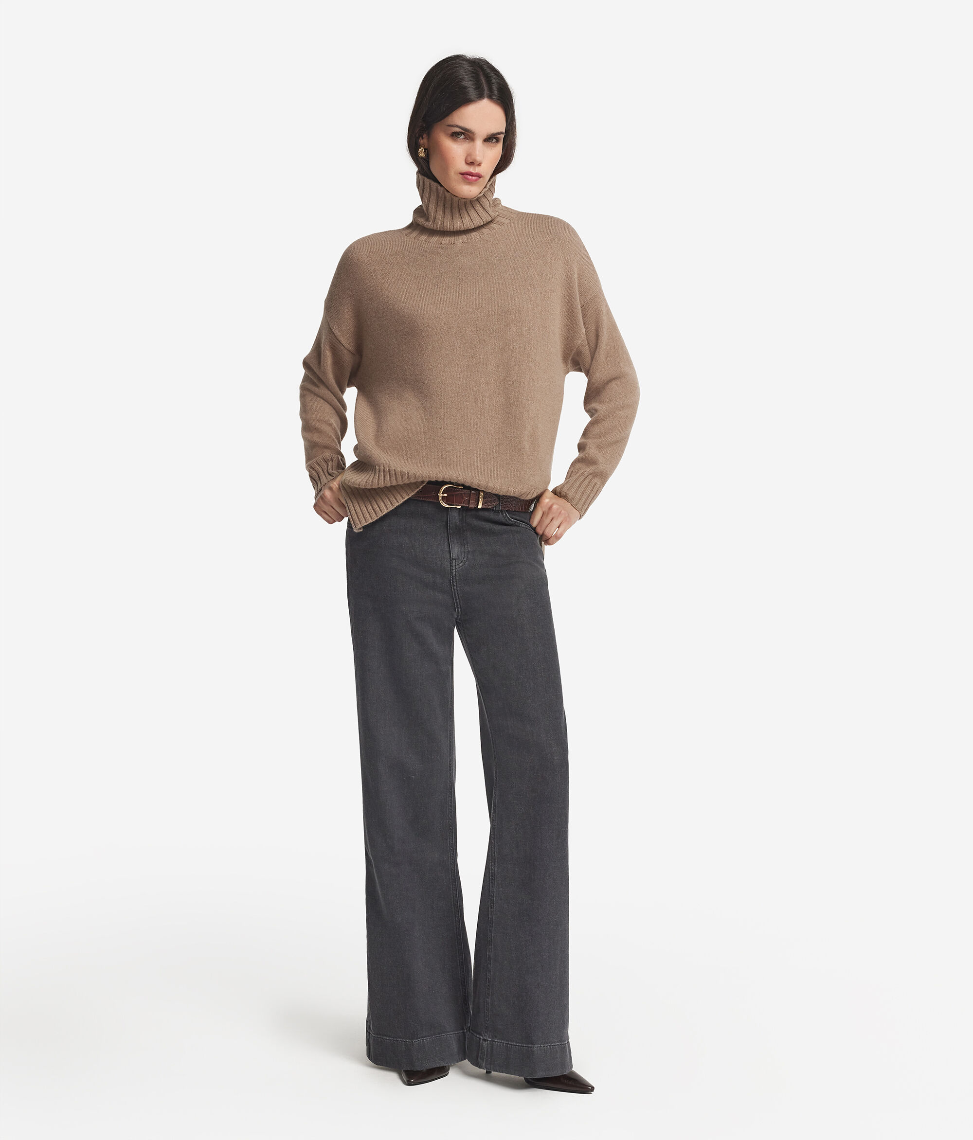 Maletă cu guler scurt din cașmir ultrasoft cu mâneci care coboară din umăr