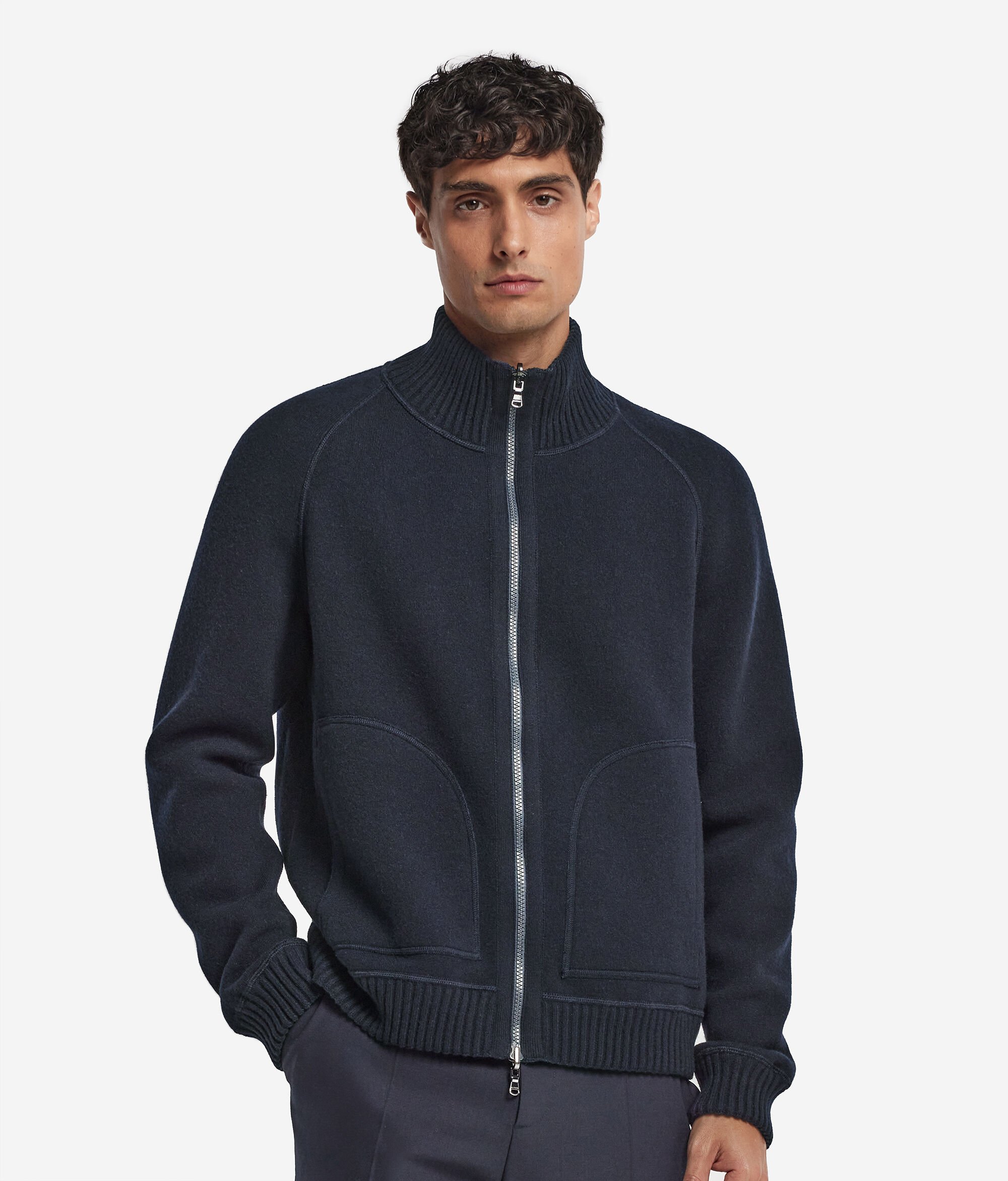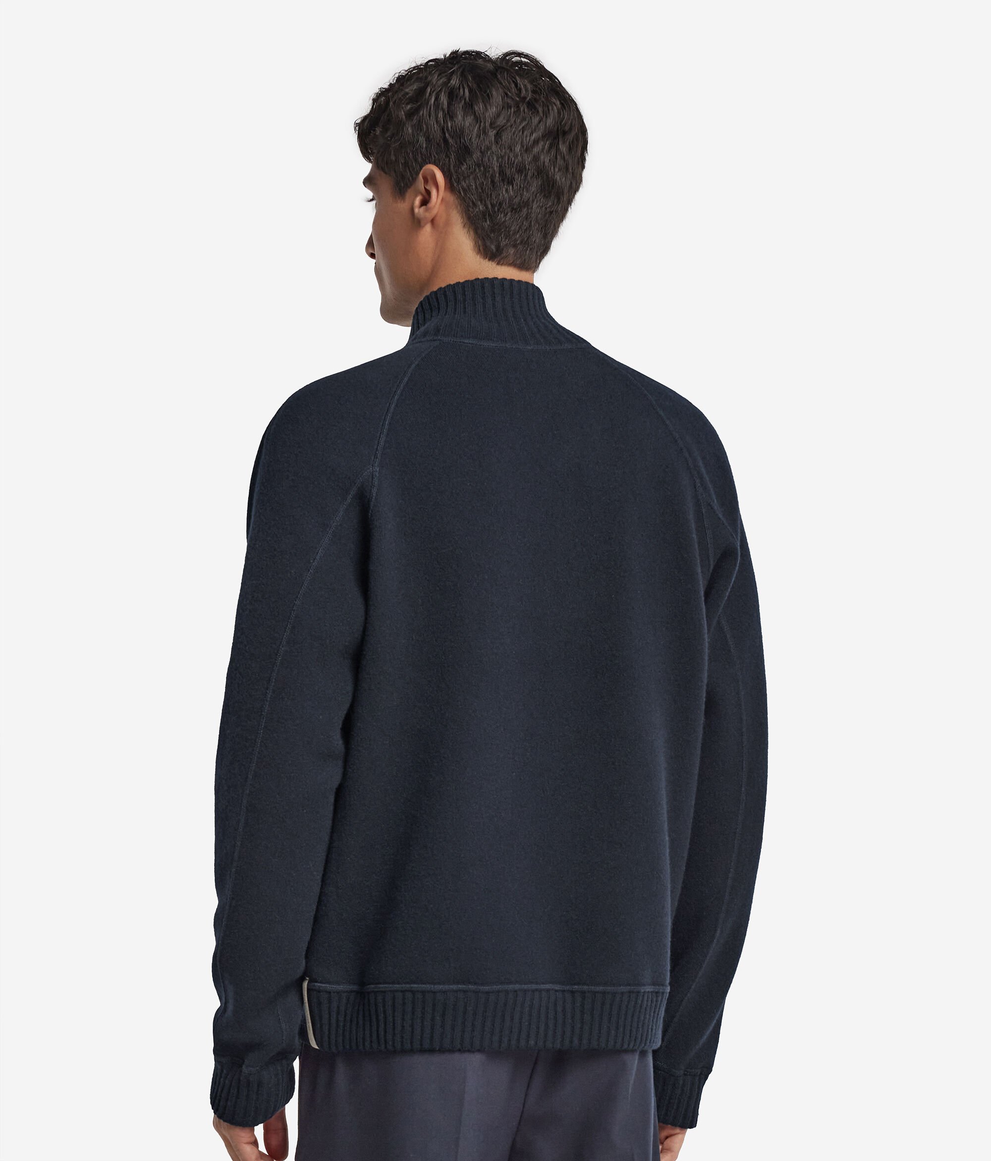 Un articol emblematic într-o interpretare contemporană: această jachetă bomber din Cașmir Ultrasoft cucerește prin moliciune și rafinamentul lucrăturii. Reversibilă și versatilă, este special concepută pentru a se adapta unor ținute și momente diferite. Gulerul înalt și închiderea cu fermoar cu glisieră dublă pun în valoare designul sobru, iar mânecile tip raglan și croiala largă asigură confort și libertate de mișcare. Aspectul este întregit de manșetele și partea de jos din tricot reiat, care contribuie la o siluetă bine definită, dar relaxată.