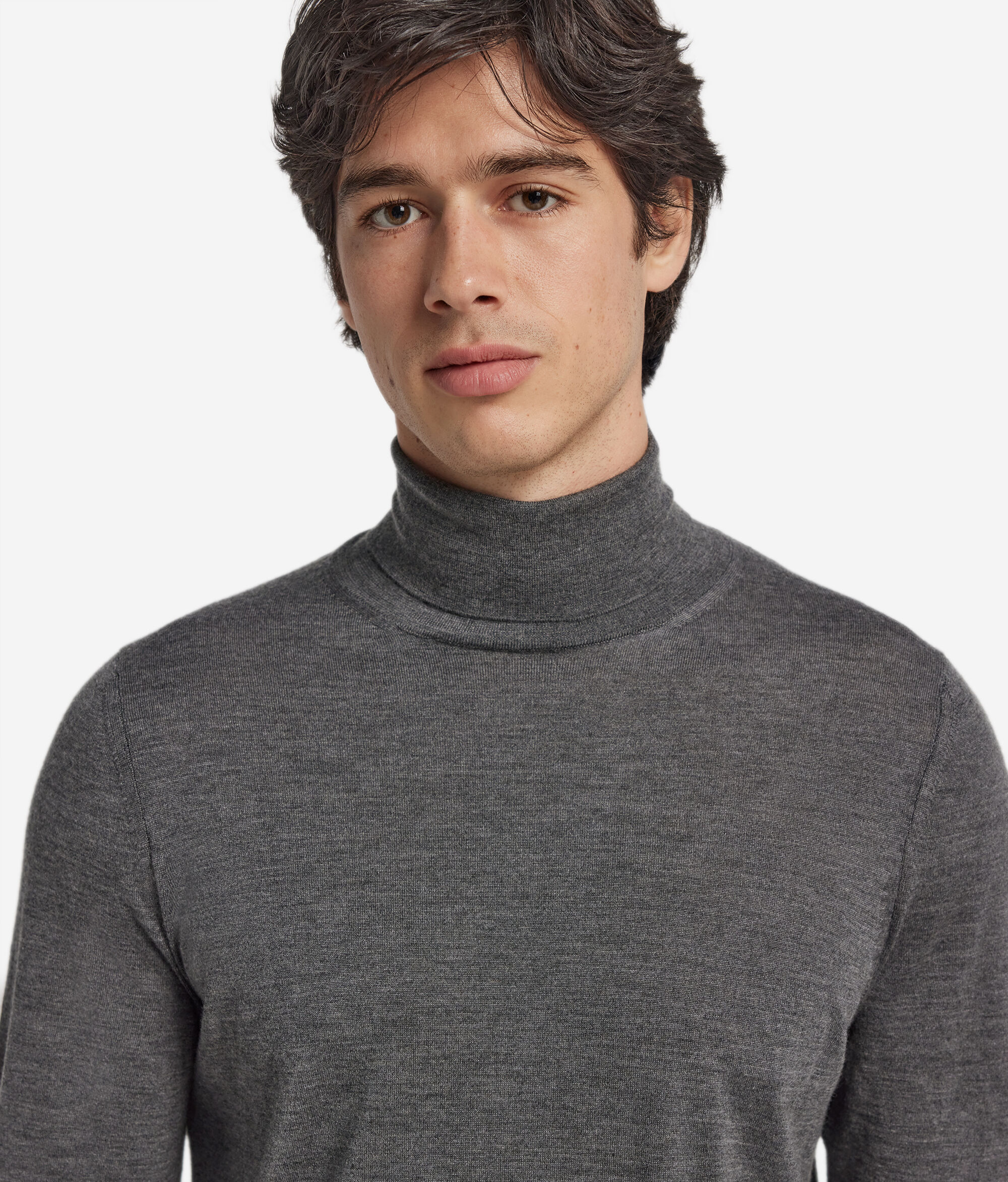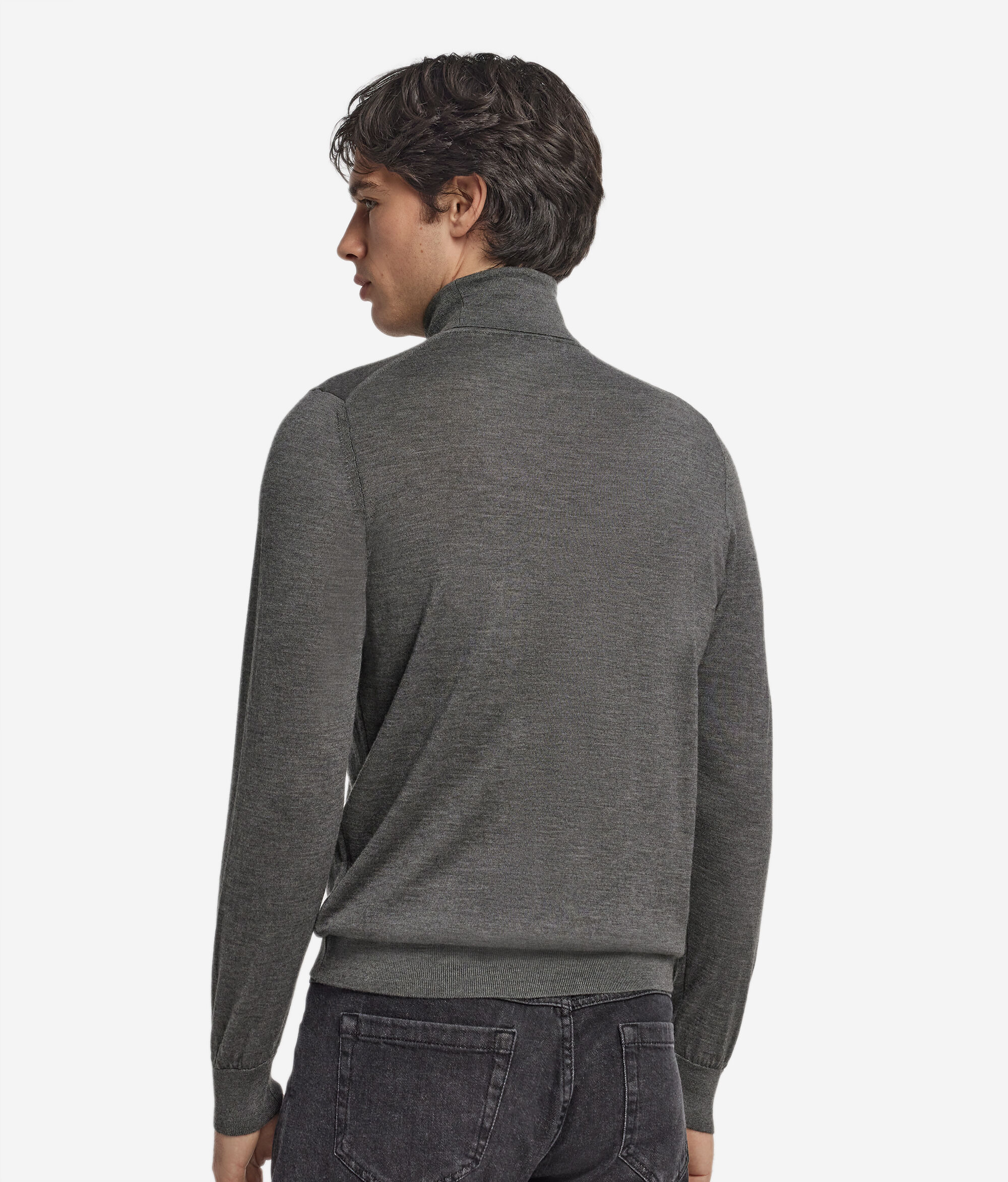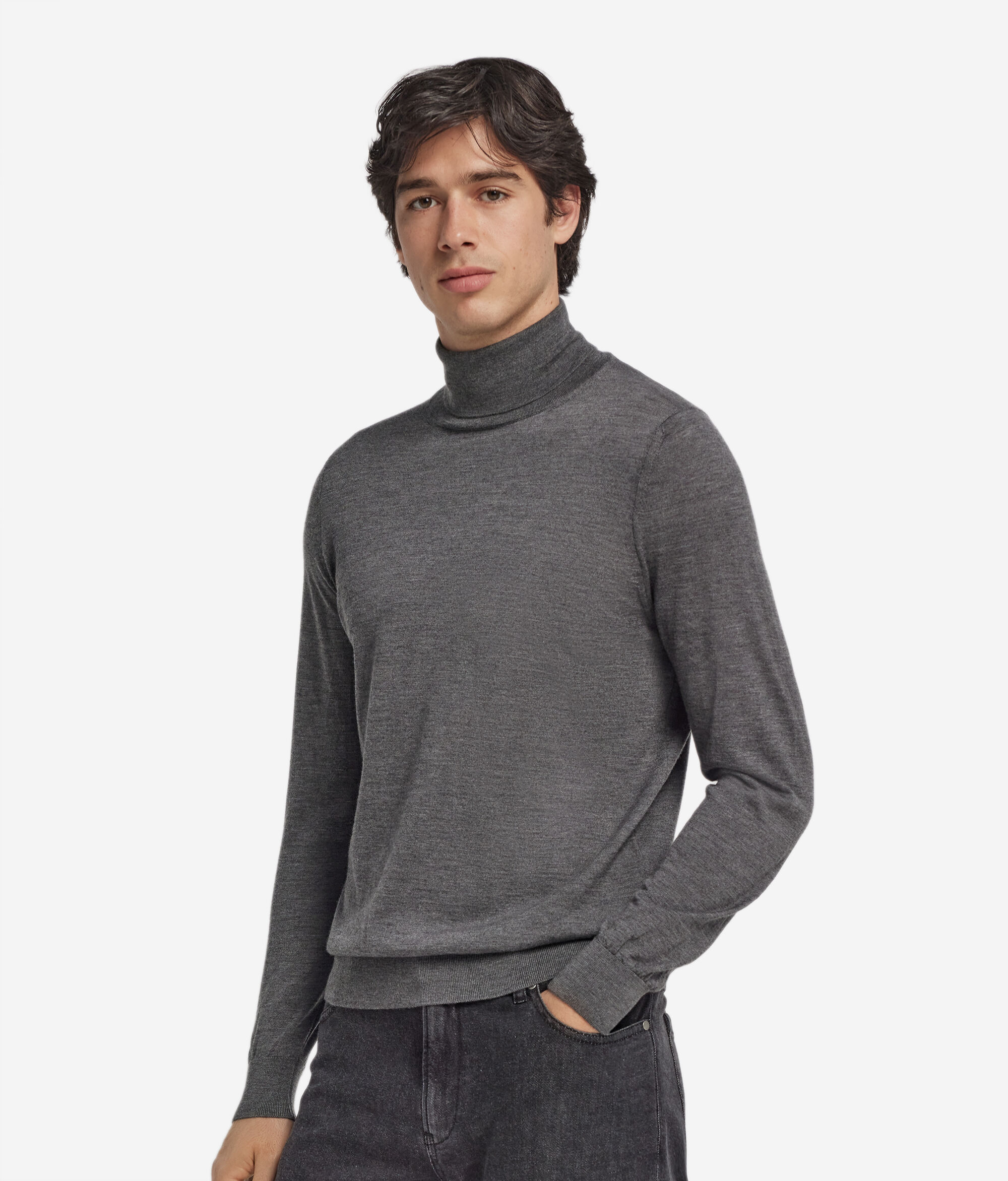 Maletă cu guler înalt din cașmir ultrafin. Fibrele prețioase, lucrate cu măiestrie, conferă acestui articol o consistență deopotrivă delicată și plină. Este ideală pentru a fi purtată cu diverse ocazii.
