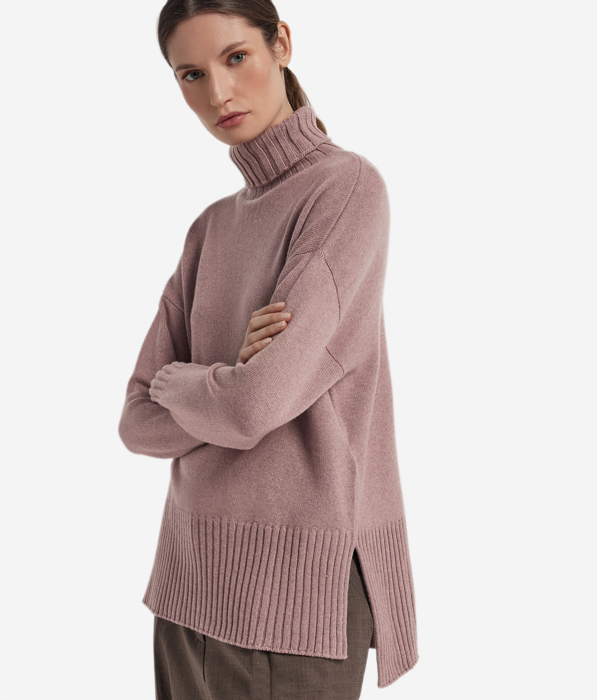 Moale, rafinată și călduroasă, maleta oversize din cașmir ultrasoft este un articol vestimentar perfect pentru sezoanele mai reci. Fiecare caracteristică a modelului este extrem de detaliată, cum ar fi modelul reiat de pe mâneci, guler și în partea de jos. Articolul are o potrivire largă, lungime oversize și croială asimetrică.