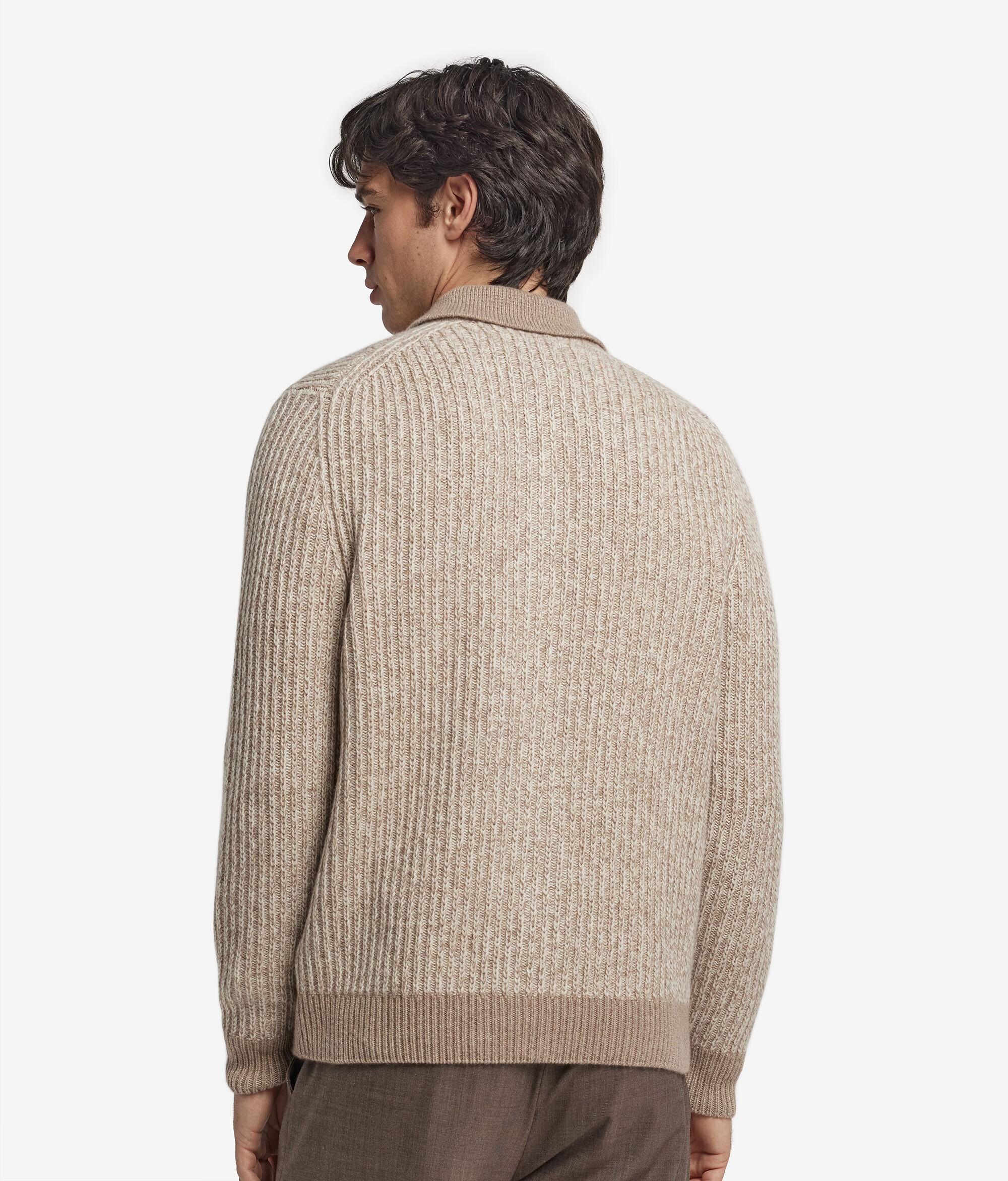 Realizat din Cașmir Ultrasoft nevopsit, acest cardigan mângâie ușor pielea, iar tricotajul englezesc cu nervuri mouliné conferă textură și caracter. Gulerul tip cămașă din stofă tricotată și finisajele contrastante definesc detaliile cu stil, transformând o piesă vestimentară clasică într-un element de design. Mânecile lungi și croiala lejeră completează silueta, fiind o piesă perfectă pentru cei care iubesc un look contemporan, elegant și atemporal.