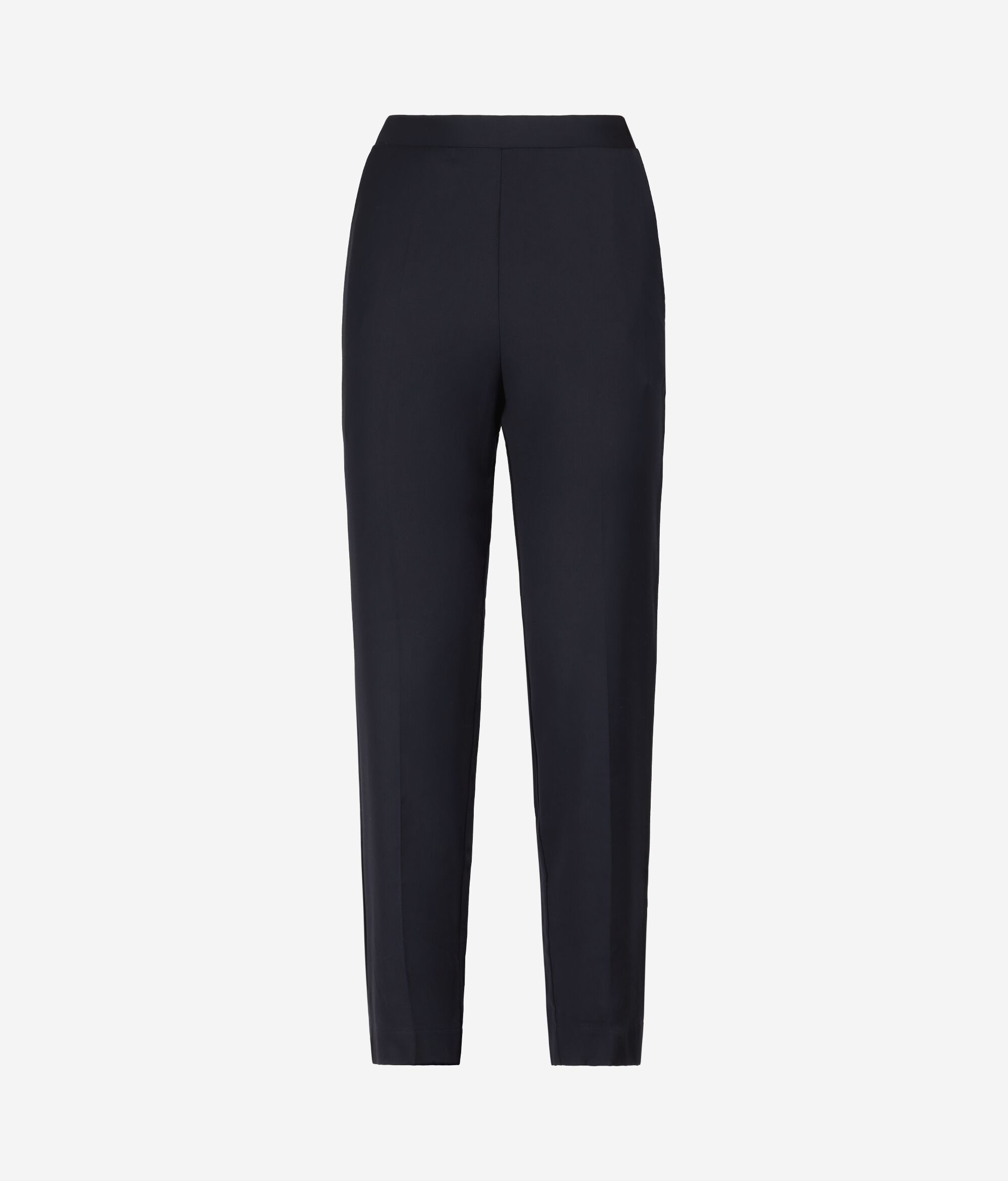 • Model țigaretă • Cu dungă • Crăpături la bază • Bandă netedă în partea din față a taliei și încrețită cu elastic la spate • Buzunare laterale • Buzunare false în spate • Lungime până la gleznă • Croială clasică