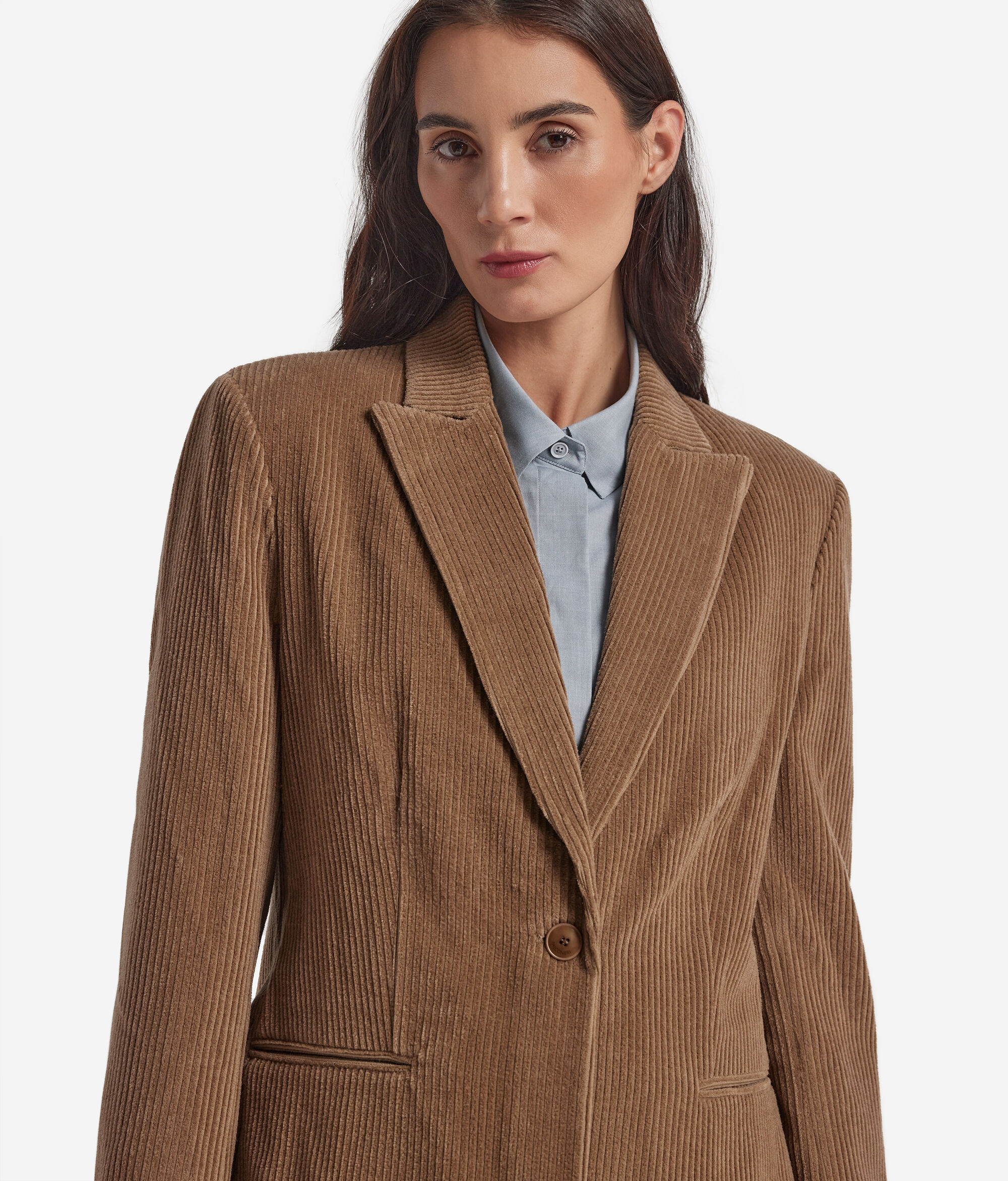 O piesă vestimentară care interpretează tradiția vestimentară în cheia eleganței contemporane. Confecționat din lână și cașmir, acest sacou se remarcă prin textura sa moale și luminoasă, o combinație perfectă de căldura și rafinament. Reverul clasic și închiderea cu un singur nasture creionează o siluetă curată și contemporană, în timp ce buzunarele cu refilet adaugă un detaliu elegant și sofisticat.