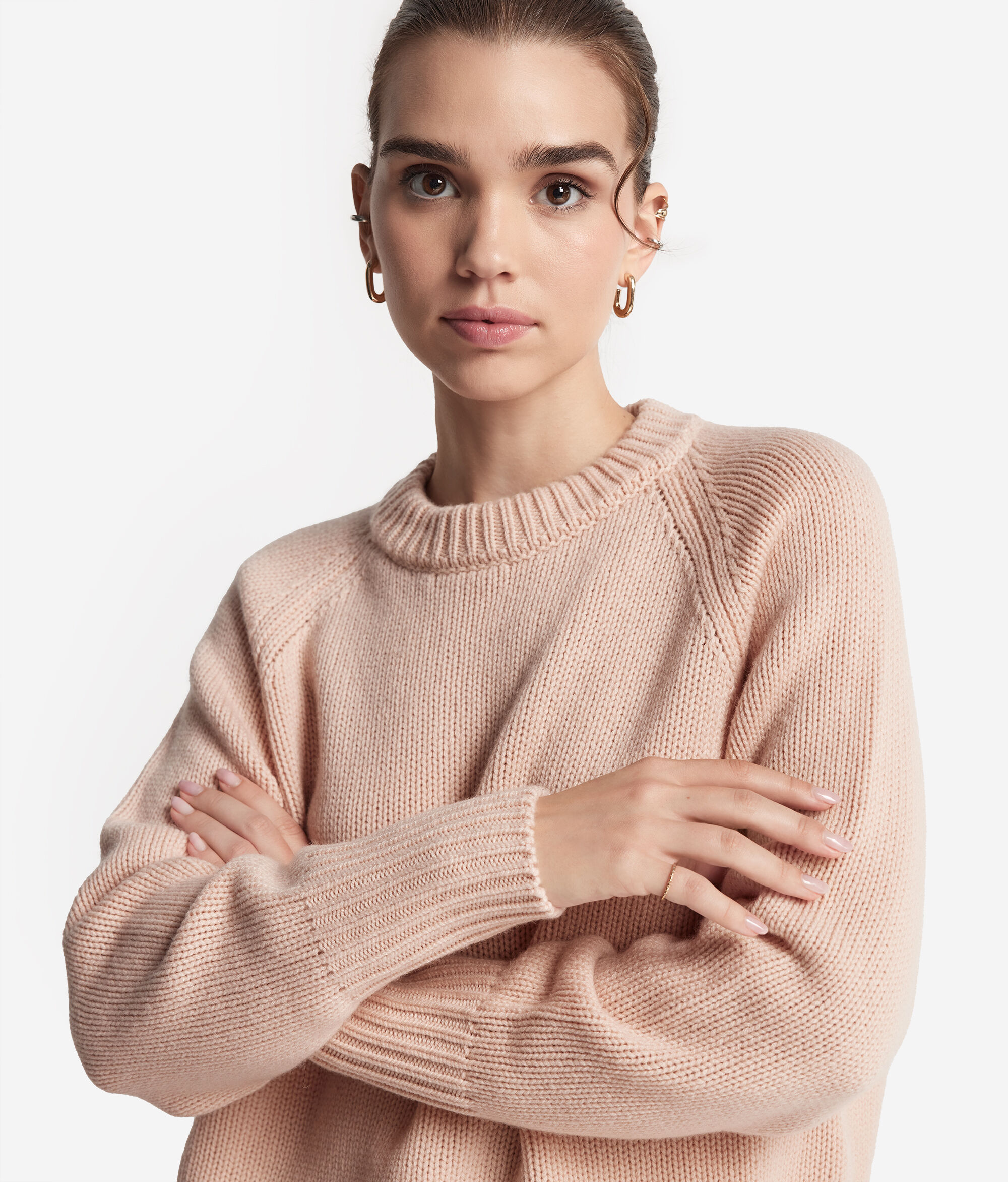 Add luxury and comfort to your wardrobe with this exclusive round-neck jumper in Ultrasoft Cashmere tricot. With its multi-ply yarn, it is embellished with a ribbed finish on the neckline and long cuffs, adding a touch of class to the understated design of the piece. The rolled hem and raglan sleeves make for modern, distinctive details to complete the look. Its loose wearability provides a relaxed and natural fit, in perfect contemporary style.